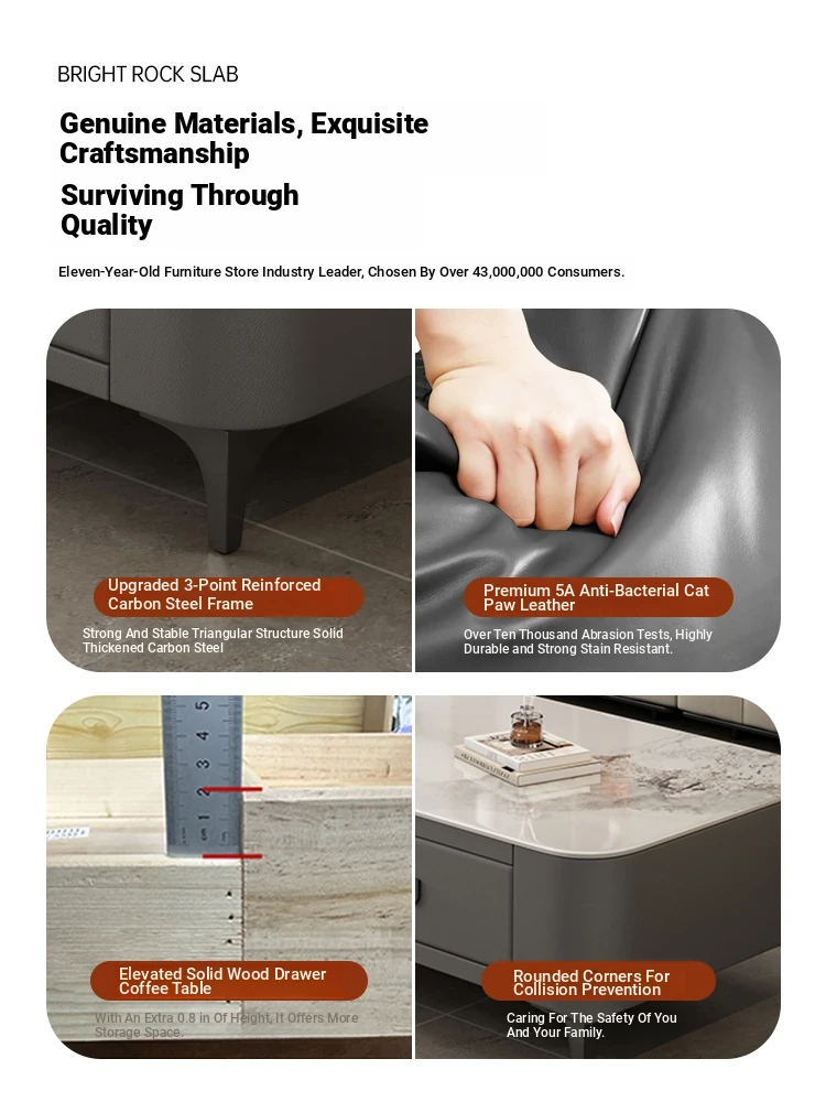 2023 New Luxury Modern Minimalist Italian Coffee Table Set – Stylish Rock Slab Coffee Table for Living Room, Perfect for Small Spaces and Home Use, Includes TV Cabinet Combination