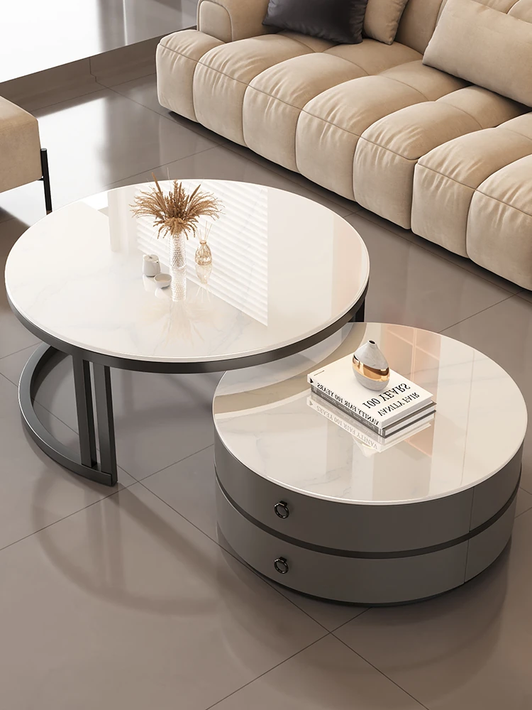 "2024 New Stylish Round Glass Coffee Table for Small Spaces - Elegant Modern Combination with Rock Plate Design for Living Room"