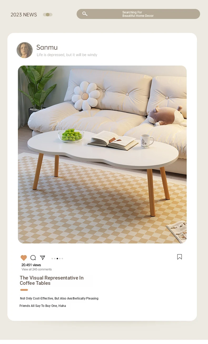 2024 New Minimalist Cream Cloud Coffee Table for Small Spaces - Stylish and Creative Living Room Tea Table for Home and Balcony Relaxation