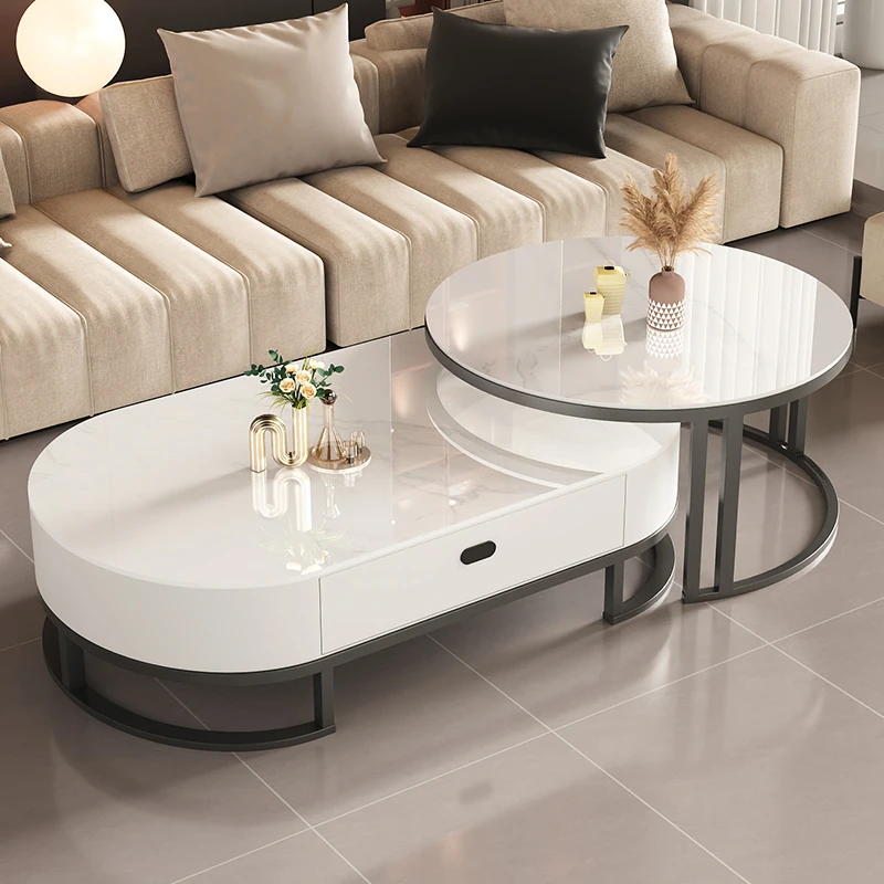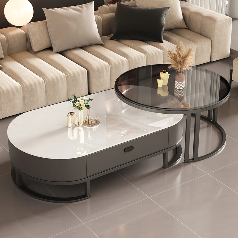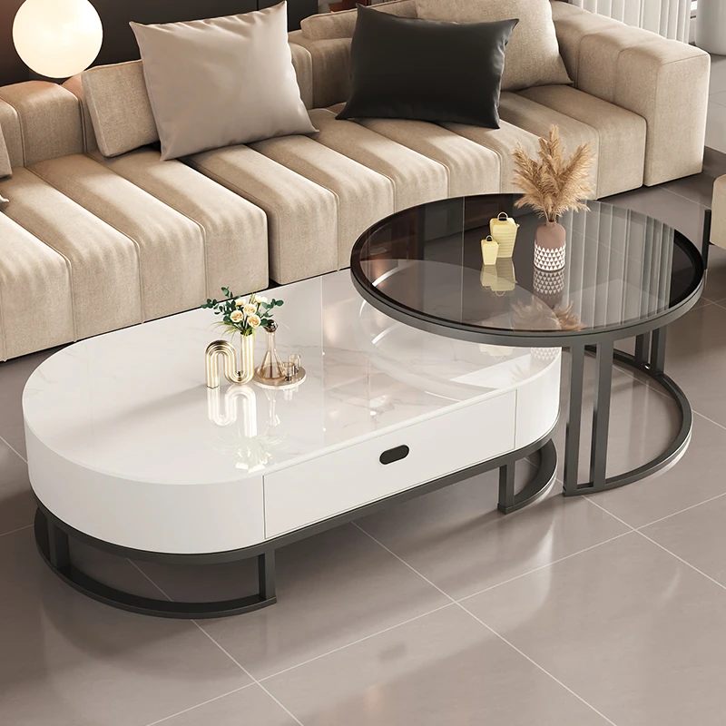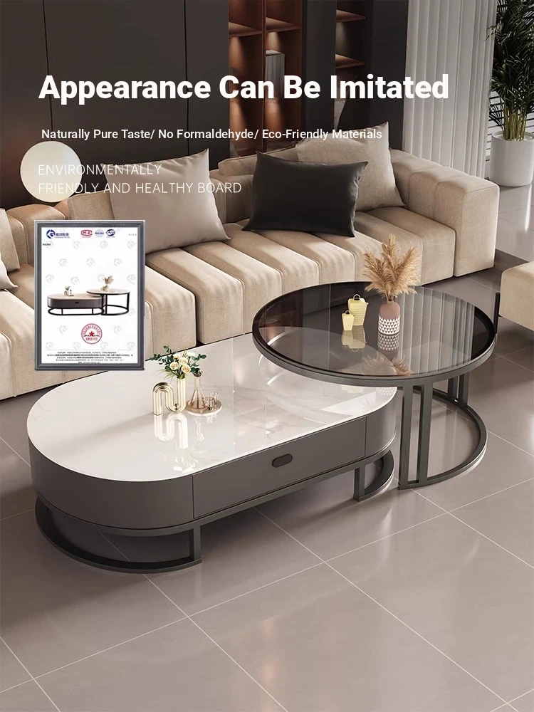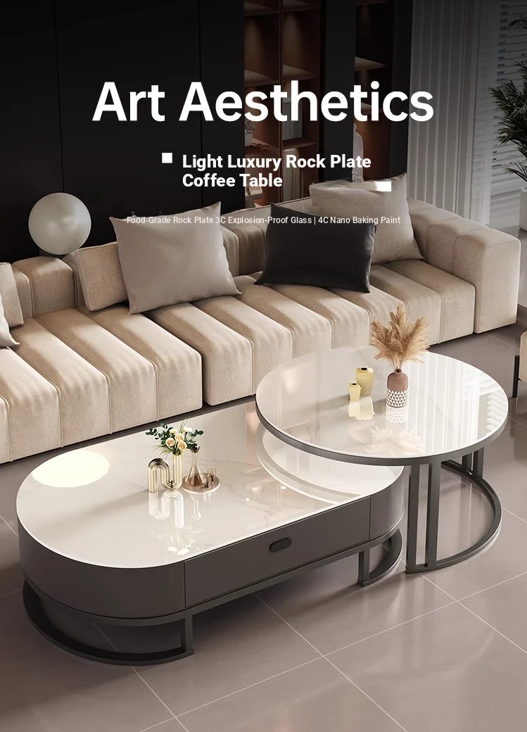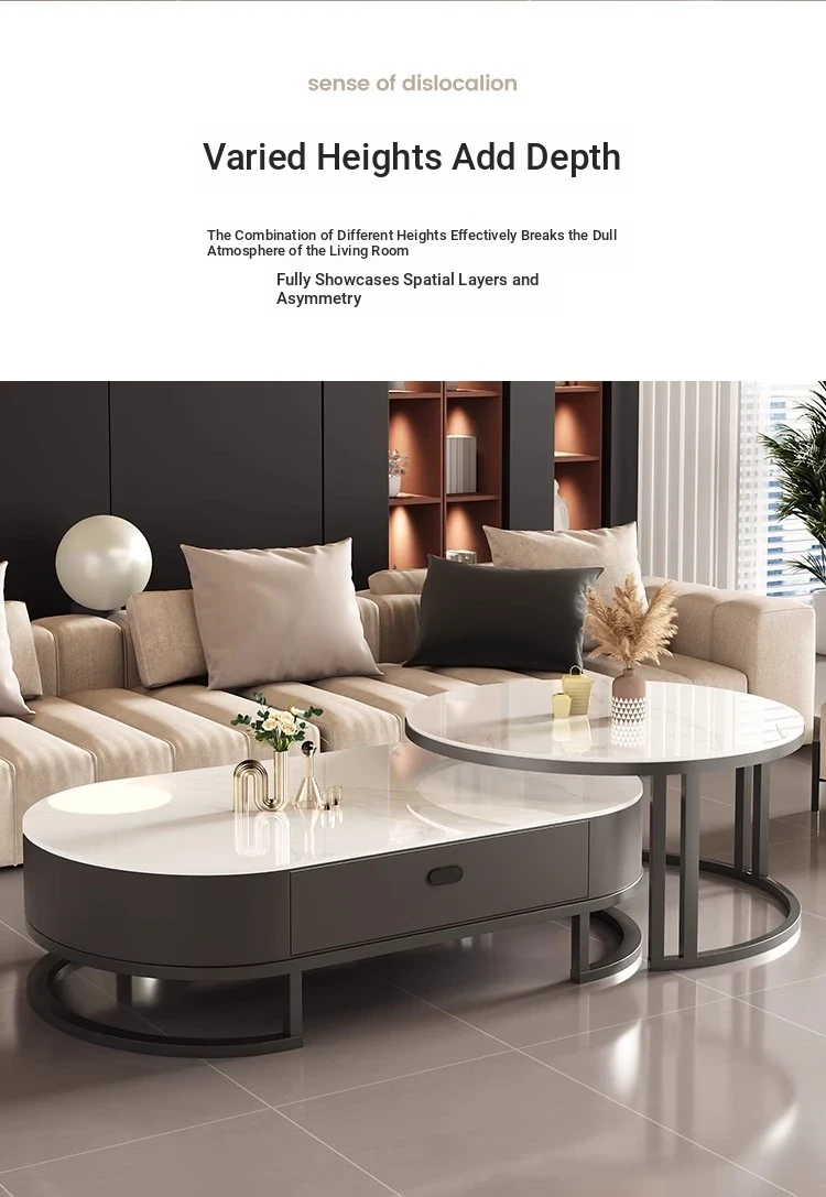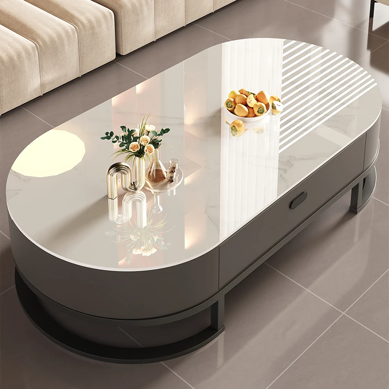 2024 New Modern Minimalist Oval Coffee Table for Living Room - Stylish and Luxurious Lightweight Design, Perfect for Small Spaces, Ideal for Home Use