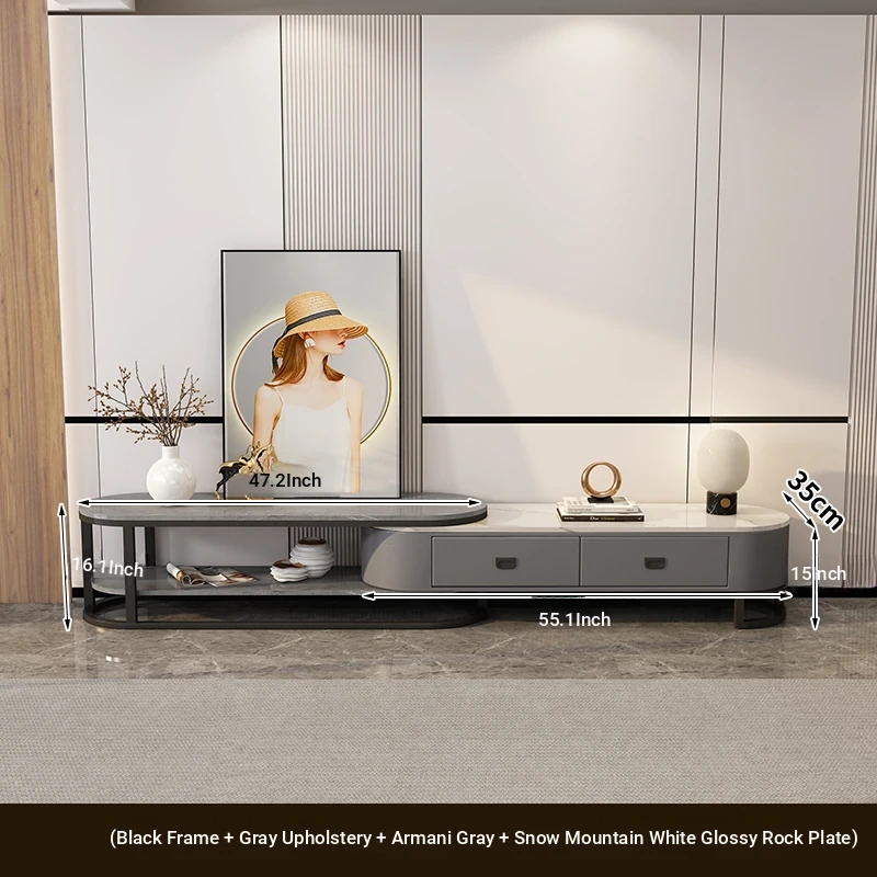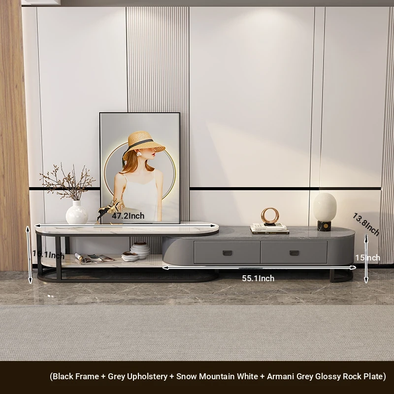 [TV cabinet black shelf gray cabinet] Snow Mountain White 120+Vic gray 55.12in
