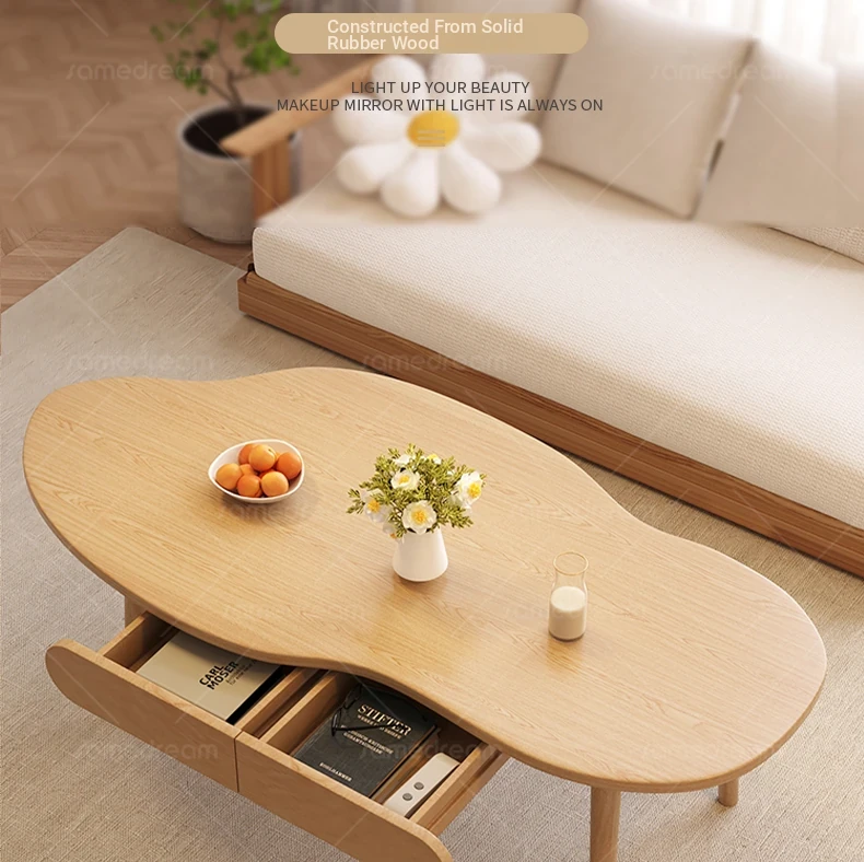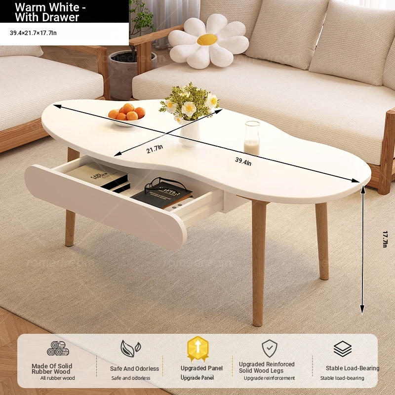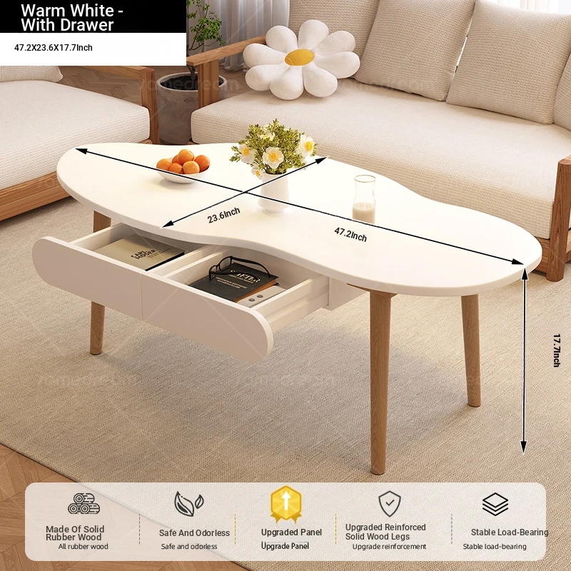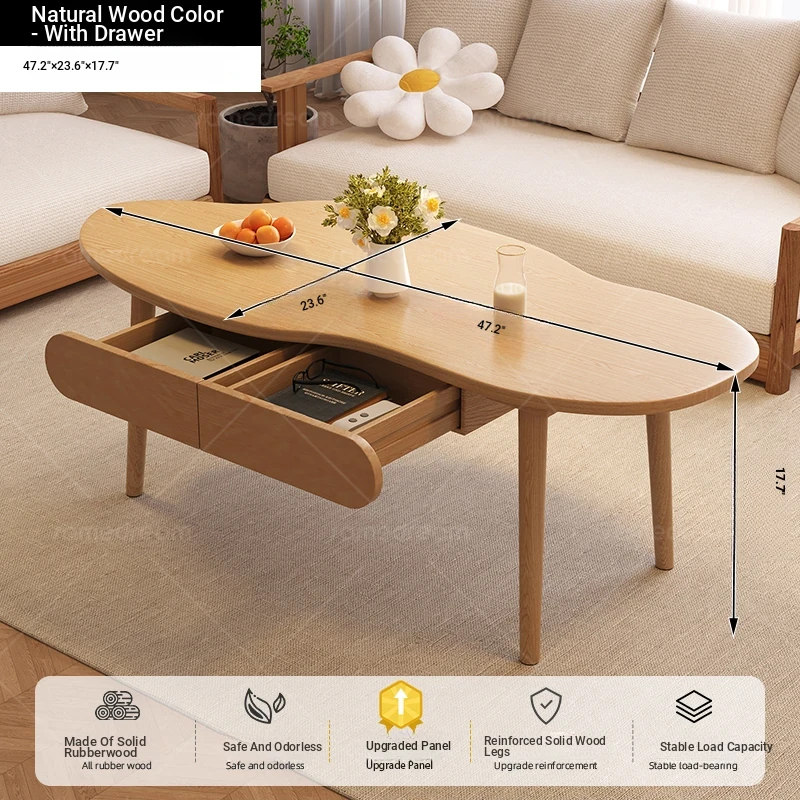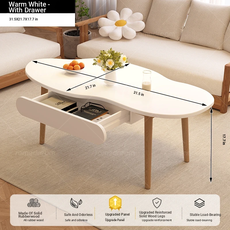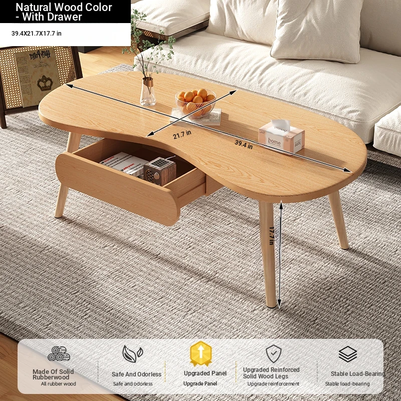 2025 New Luxury Minimalist Solid Wood Coffee Table for Living Room, Small Apartment, and Balcony - Stylish and Elegant Design for Cozy Spaces