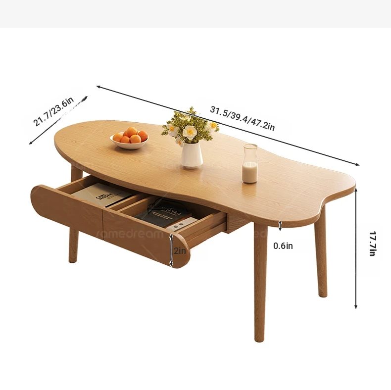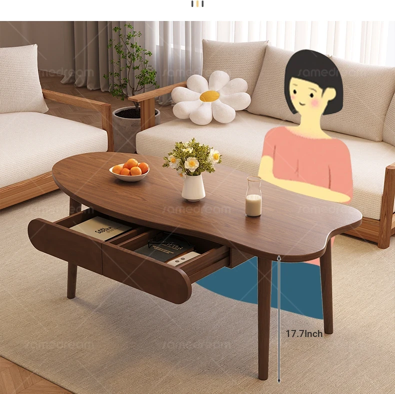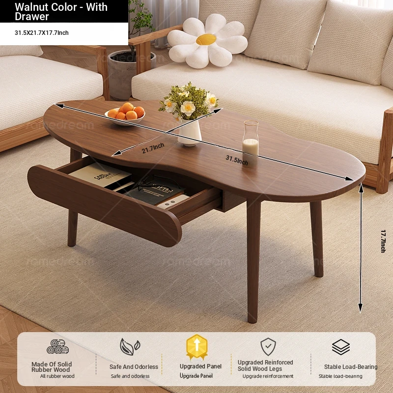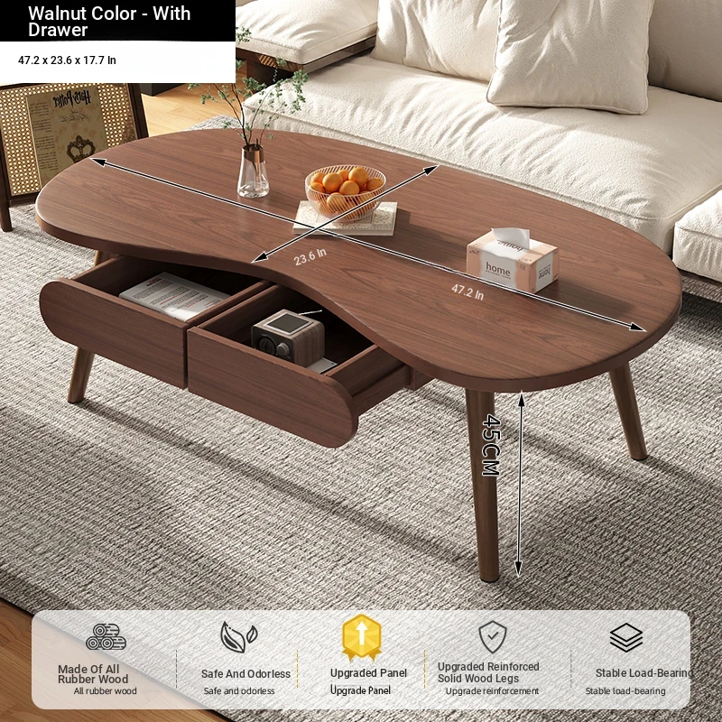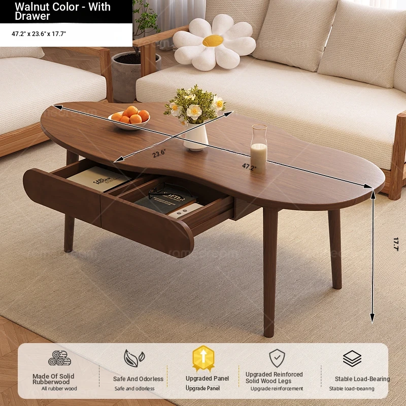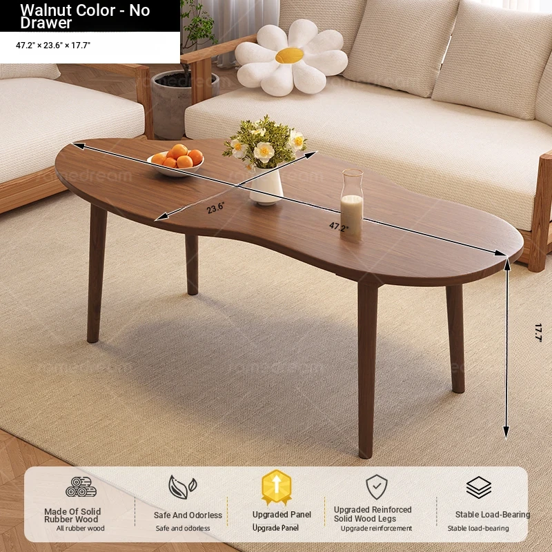 [Upgrade solid wood panel] cashew nut-shaped belt 120*60*45 walnut color