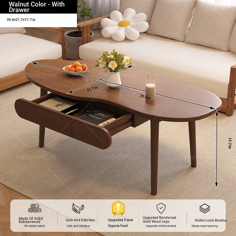 [Upgraded solid wood panel] cashew nut-shaped belt 100*55*45 walnut color