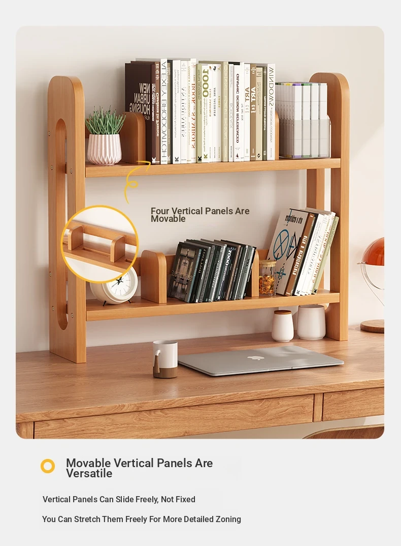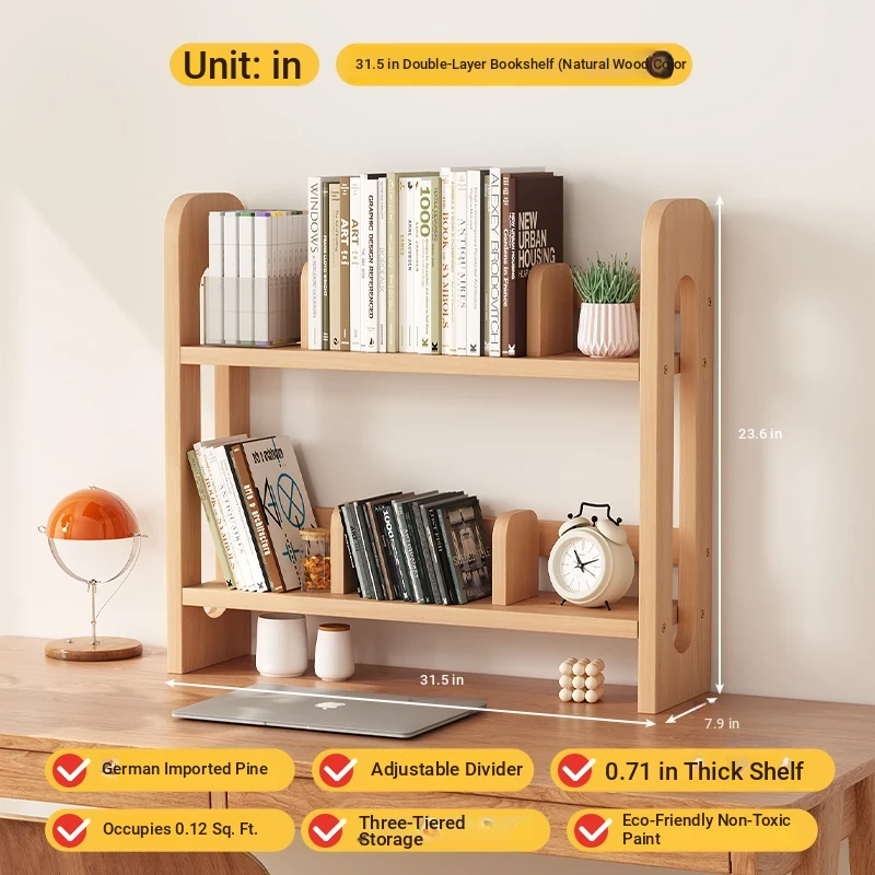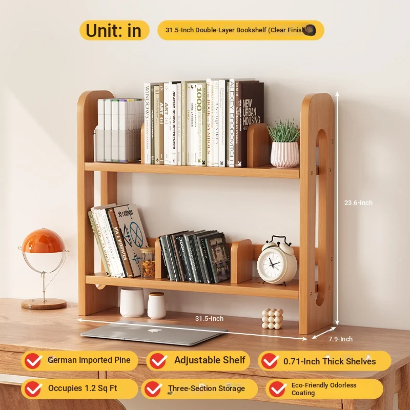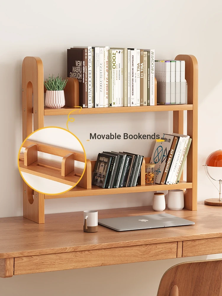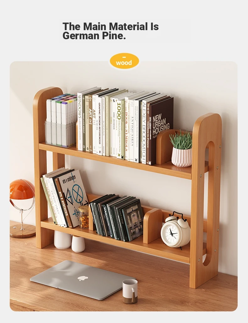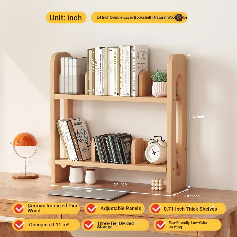 Adjustable Solid Wood Desk Bookshelf - Nordic Pine Desktop Storage Rack for Students, Simple & Portable Organizer for Home & Office Use