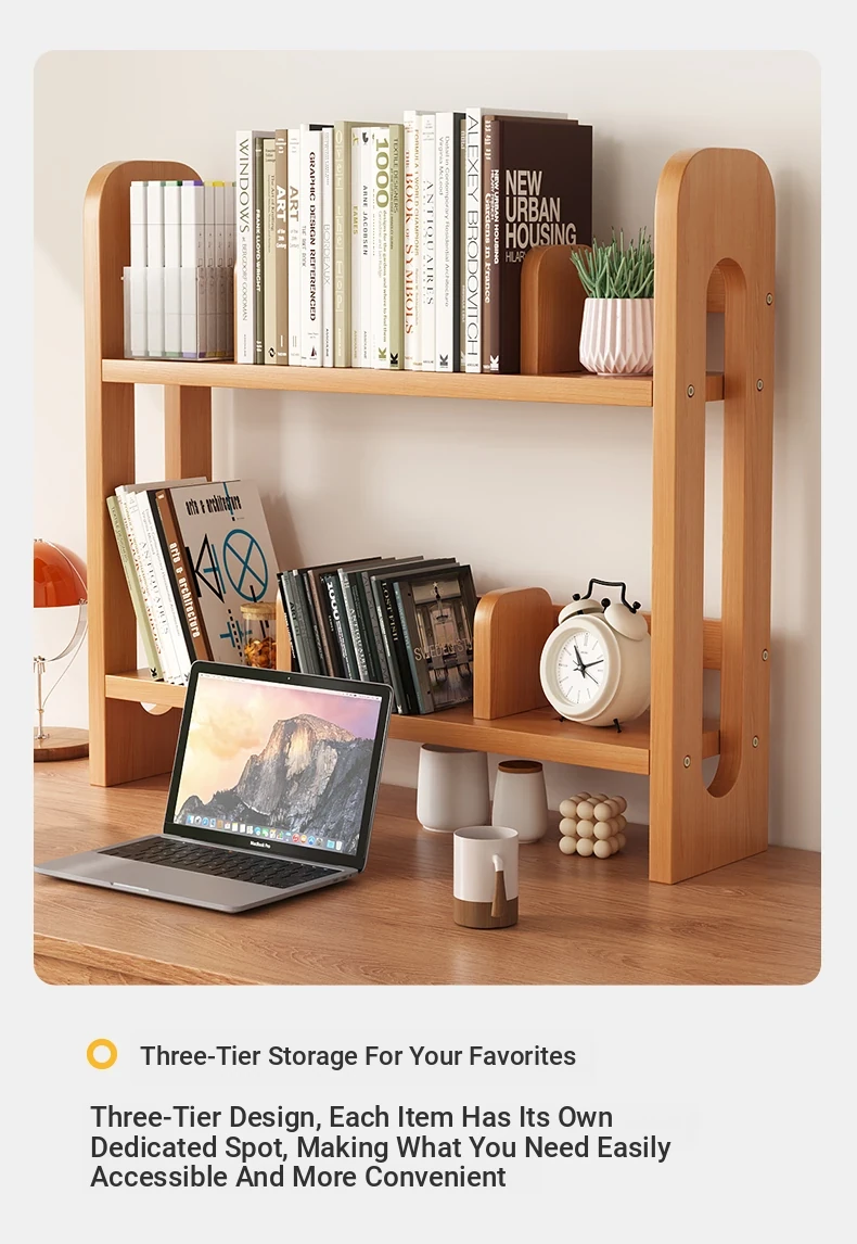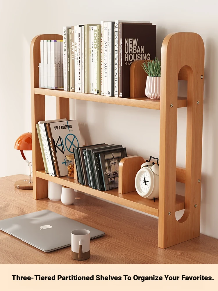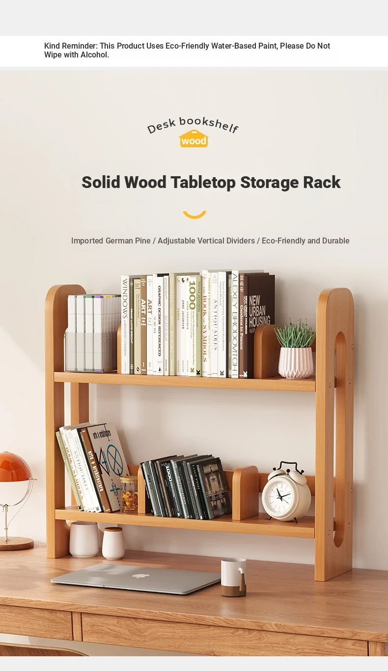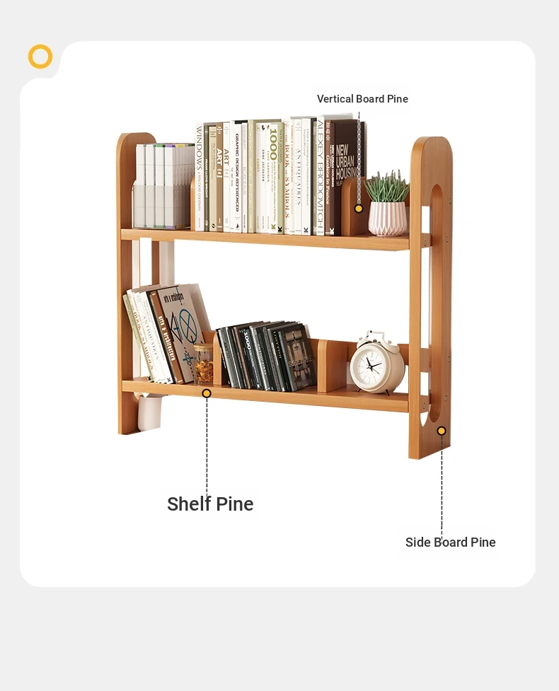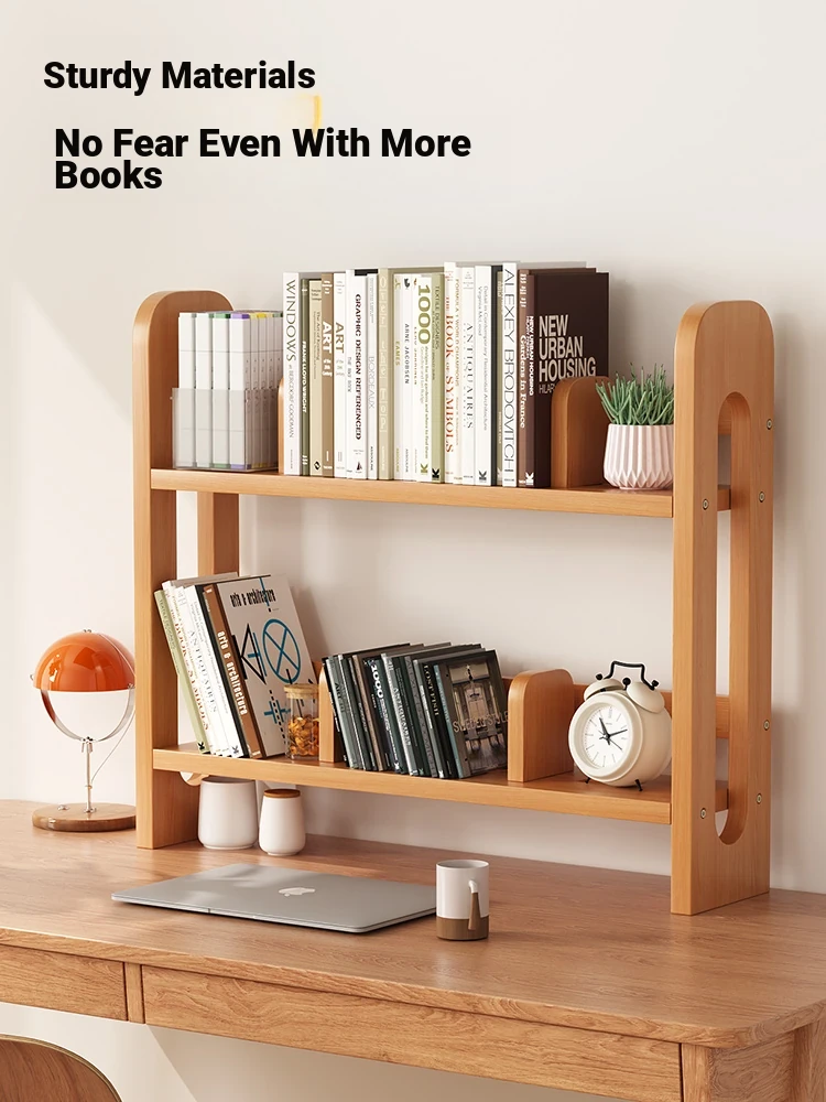 Adjustable Solid Wood Desk Bookshelf - Nordic Pine Desktop Storage Rack for Students, Simple & Portable Organizer for Home & Office Use
