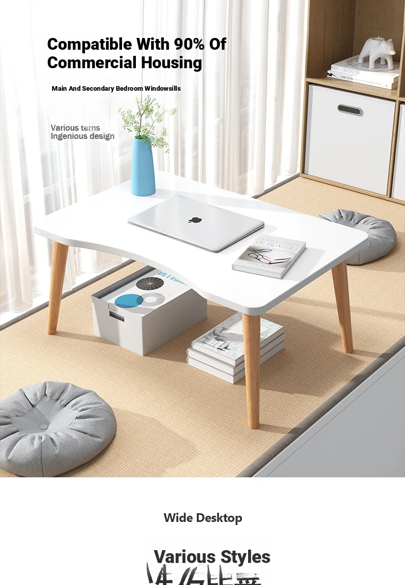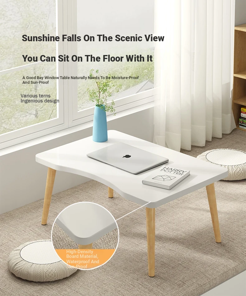 Cozy Tatami Window Bench Table - Japanese Style Solid Wood Low Coffee Table for Bedroom, Perfect for Small Spaces and Relaxation