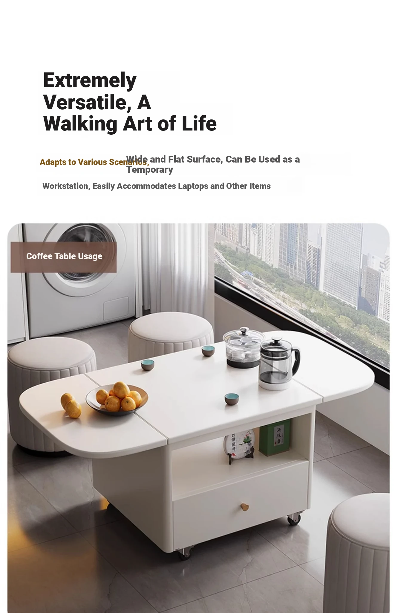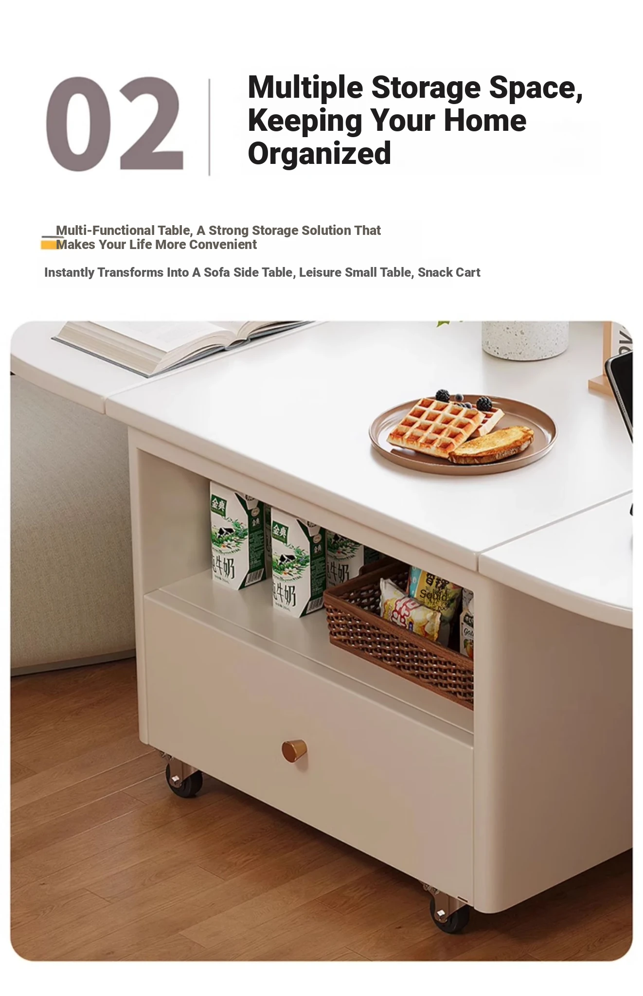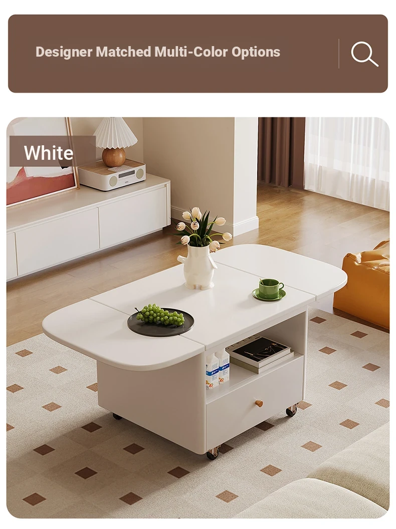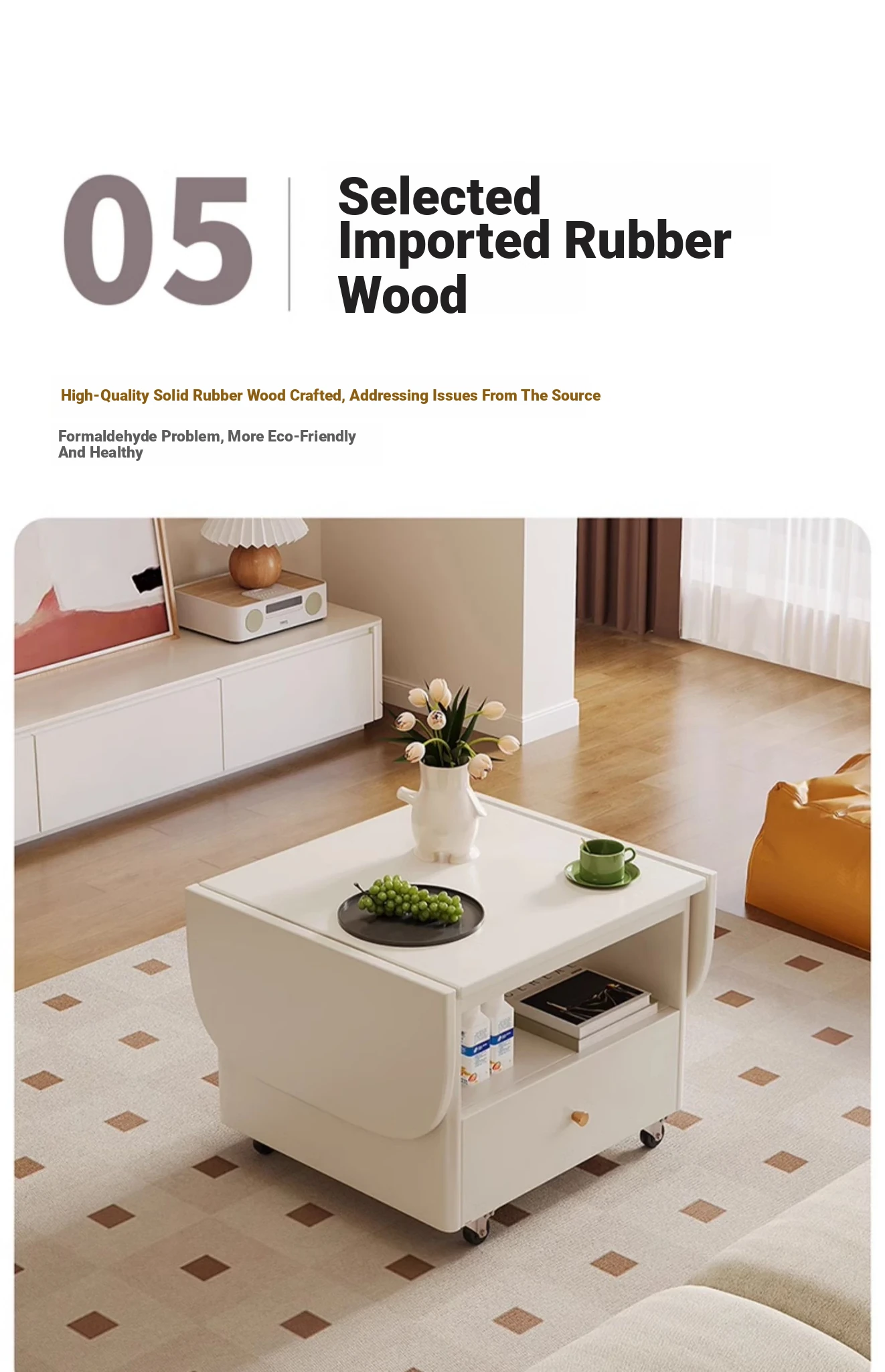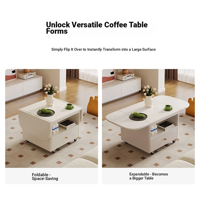 Creamy Wood Coffee Table - 2025 New Style, Movable & Foldable, Ideal for Living Room, Elegant and Luxurious Small Side Table for Home Use