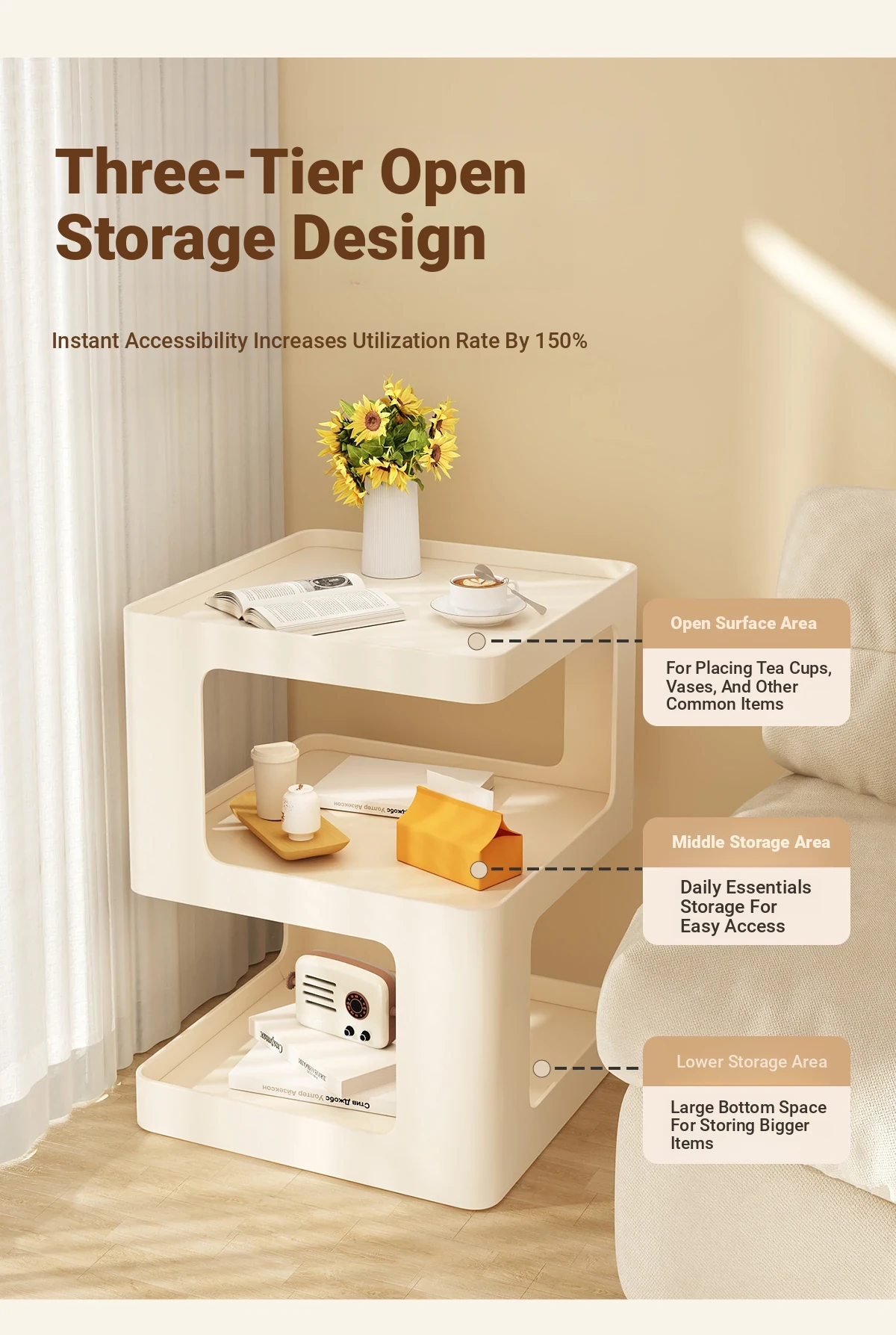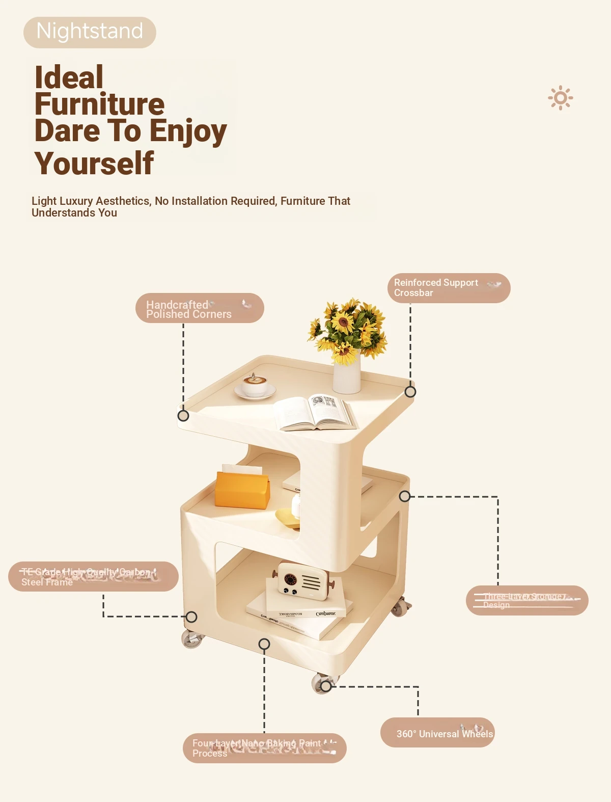 Creative Side Table & Nightstand - Stylish Minimalist Coffee Table for Living Room, Bedroom, or Balcony - Portable Storage Solution for Modern Homes