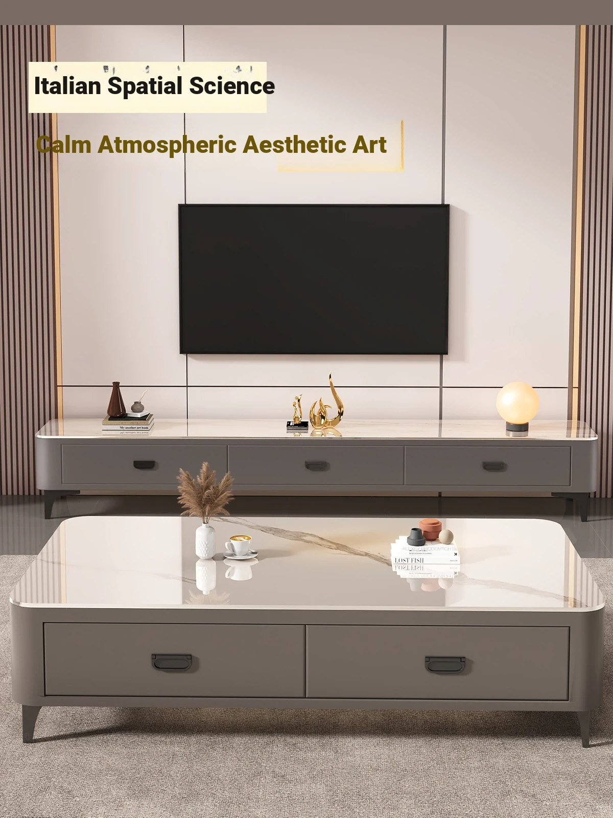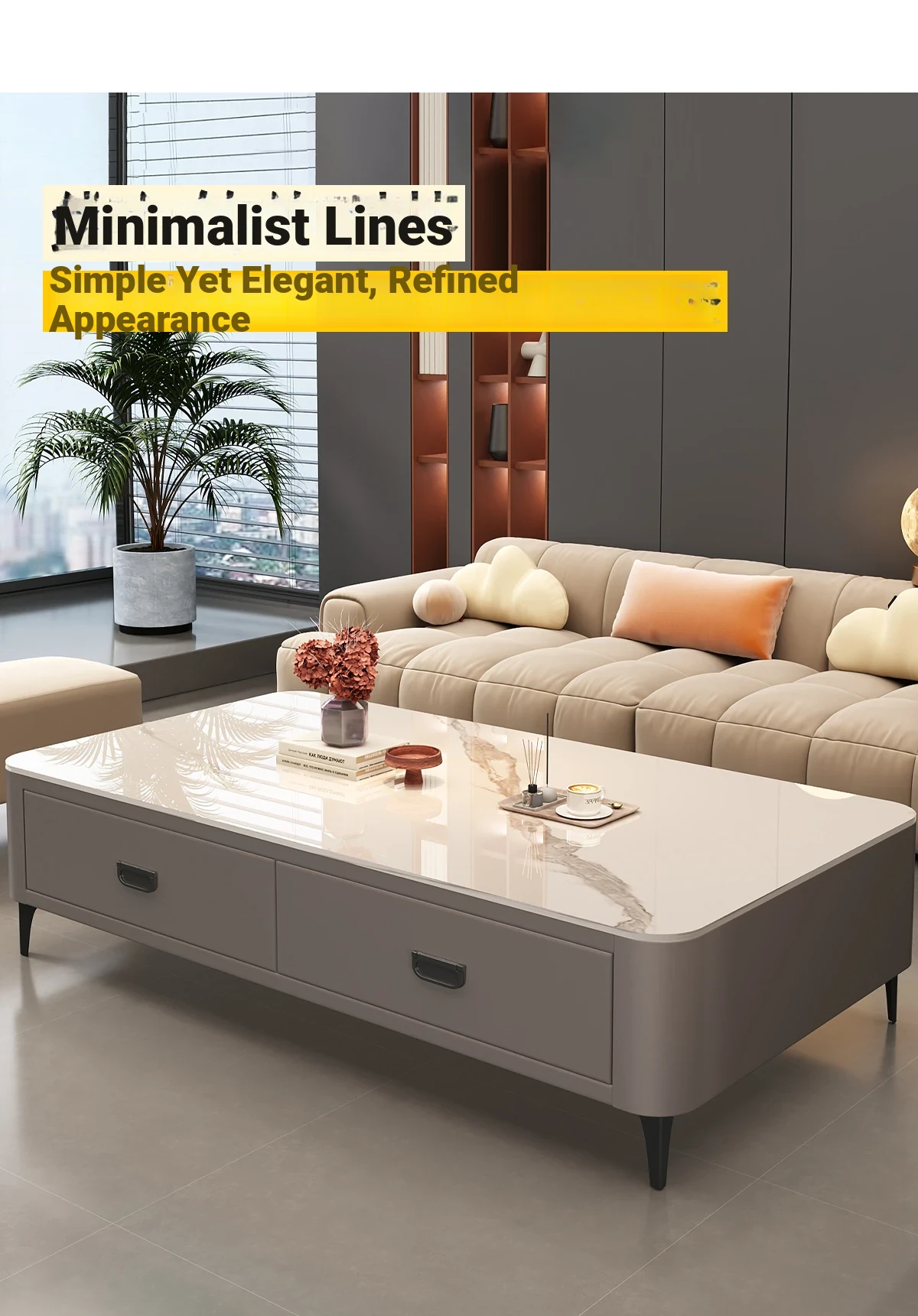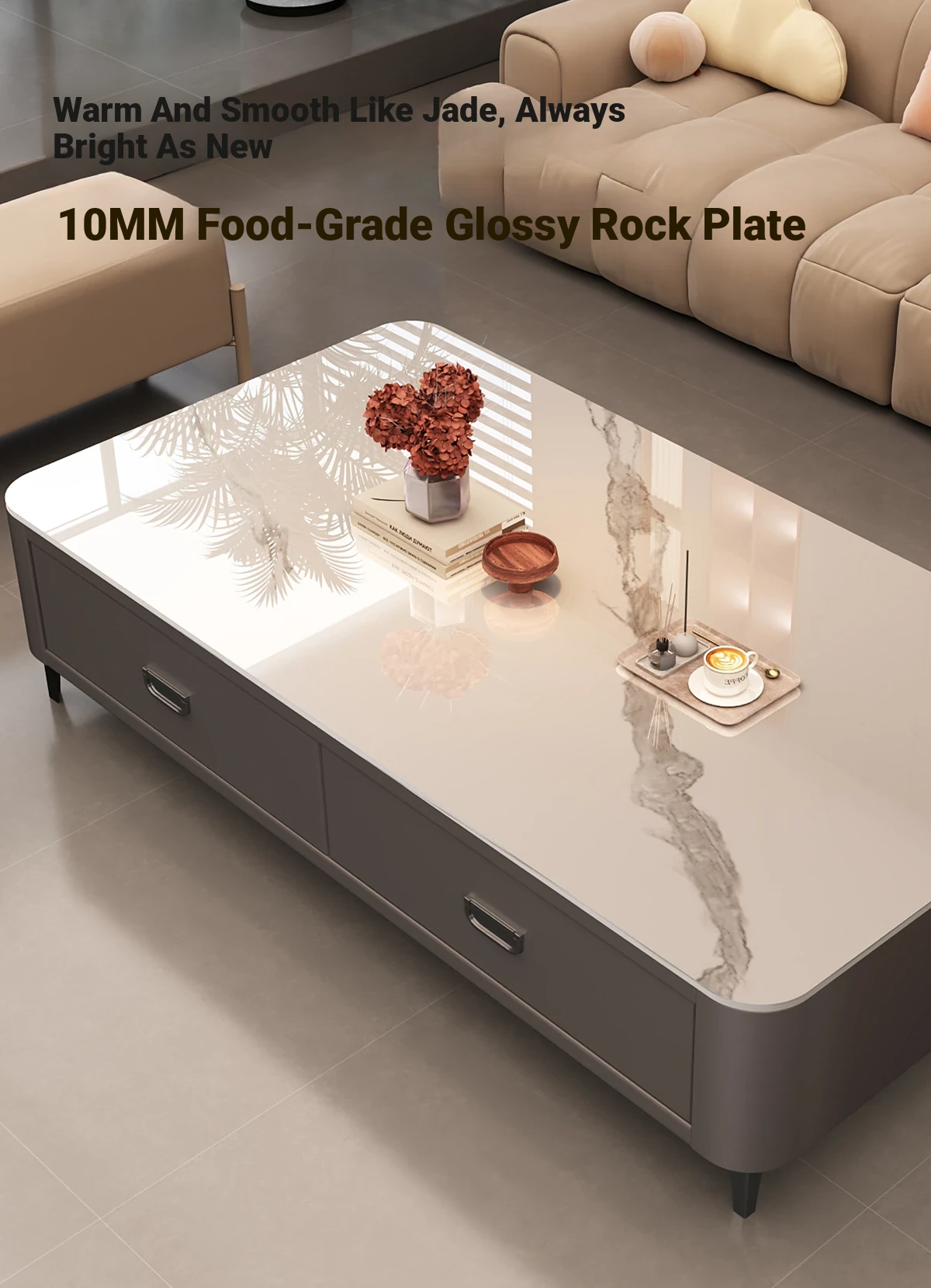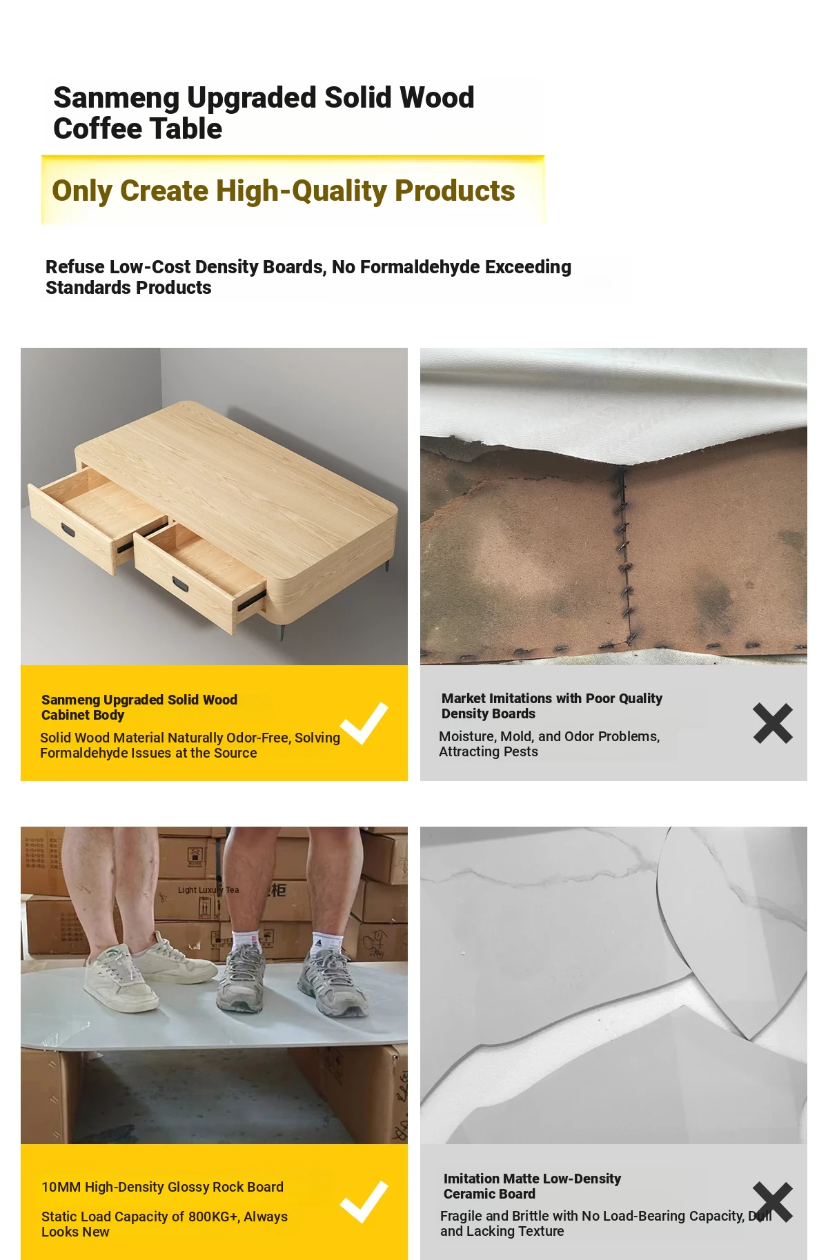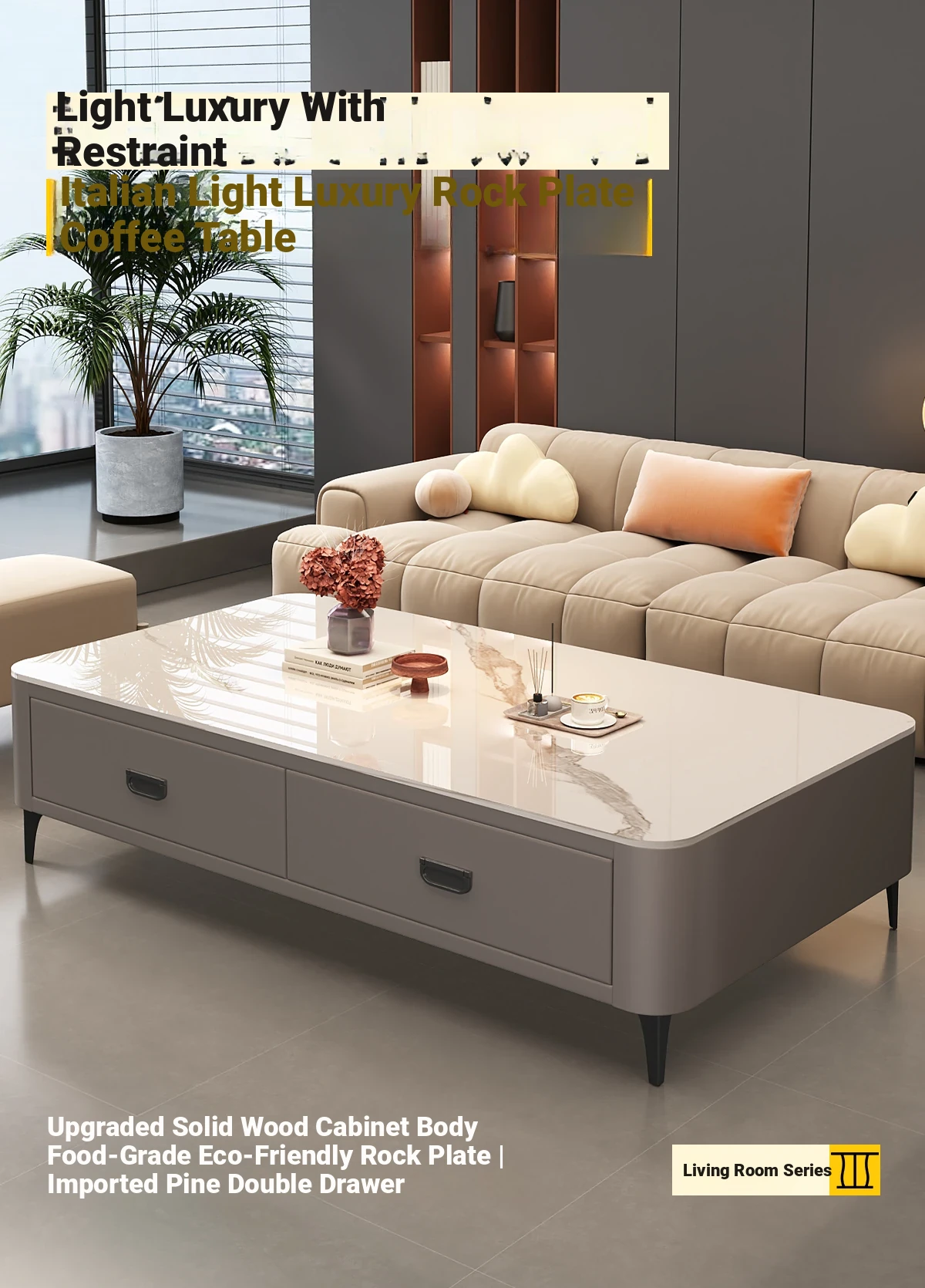 Dreamy Solid Wood Coffee Table with Rock Panel – 2025 New Stylish Design for Small Spaces, Bringing a Touch of Luxury to Your Living Room and Perfectly Complementing Your Modern TV Cabinet.