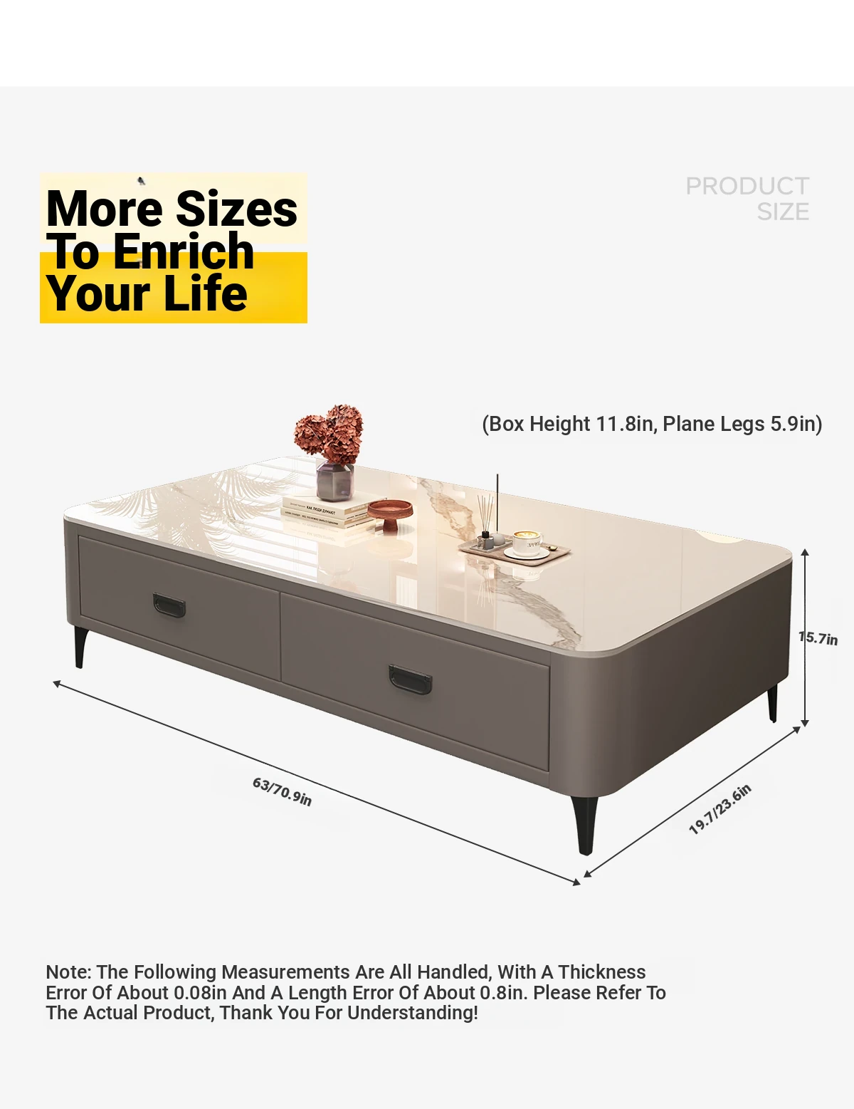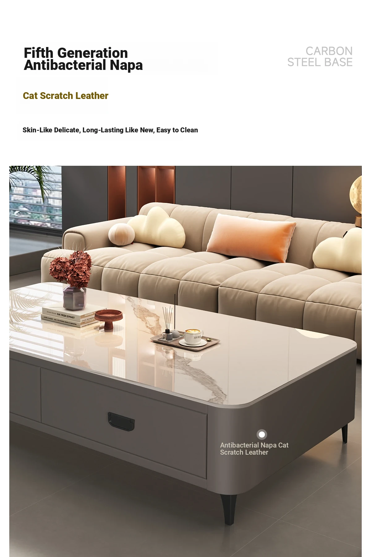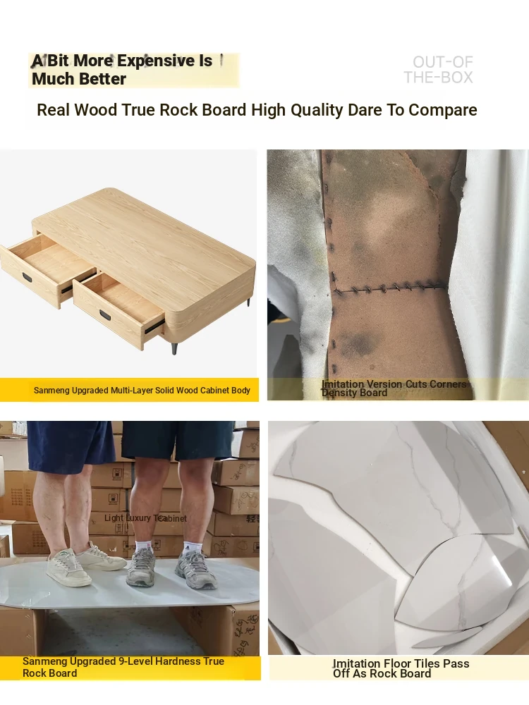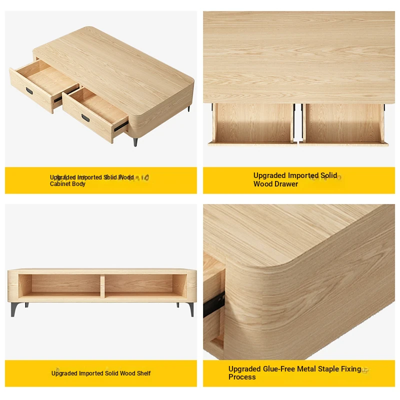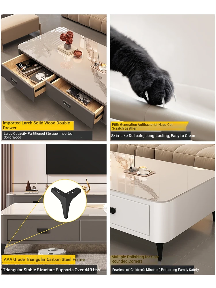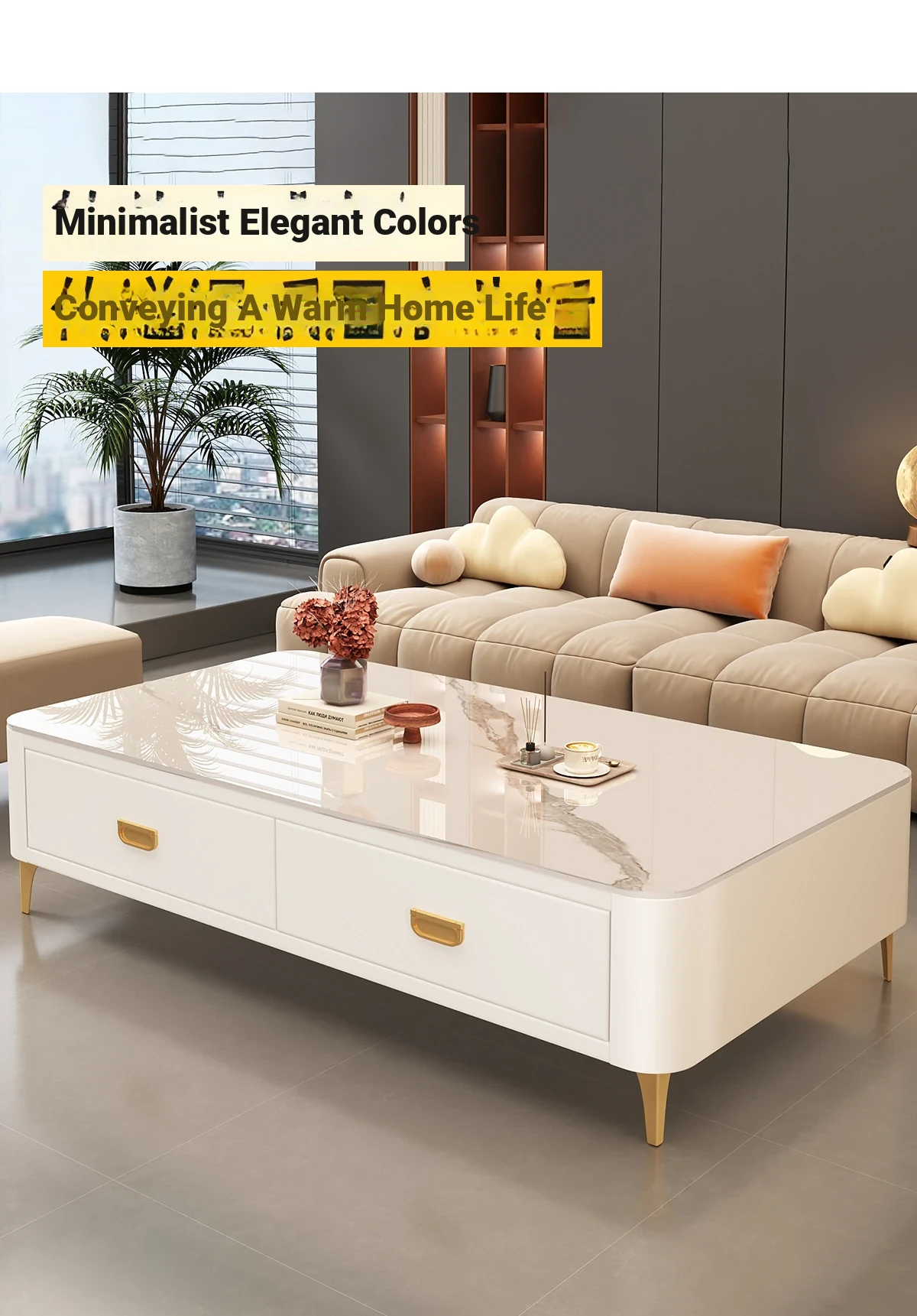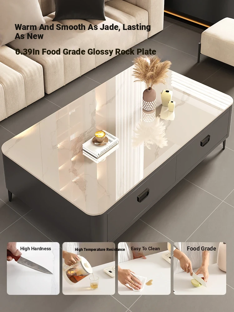 Dreamy Solid Wood Coffee Table with Rock Panel – 2025 New Stylish Design for Small Spaces, Bringing a Touch of Luxury to Your Living Room and Perfectly Complementing Your Modern TV Cabinet.