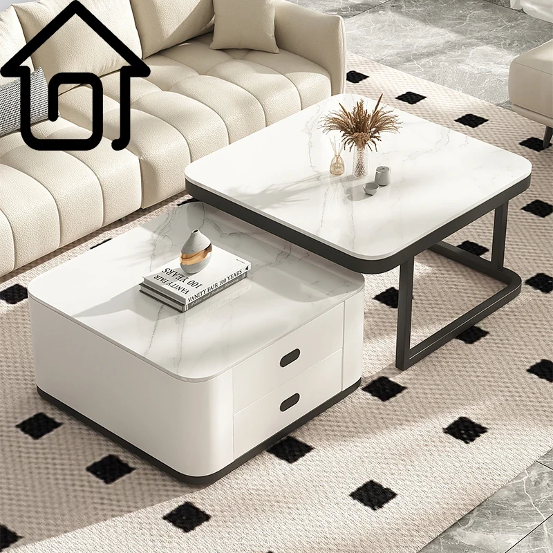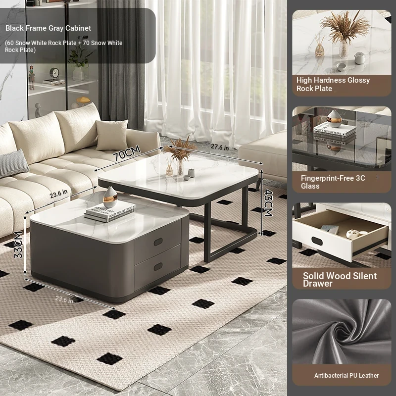 SAMEDREAM Solid Wood Coffee Table - Modern Square Glass Coffee Table for Living Room, Stylish and Minimalist Design, Perfect for Home Décor