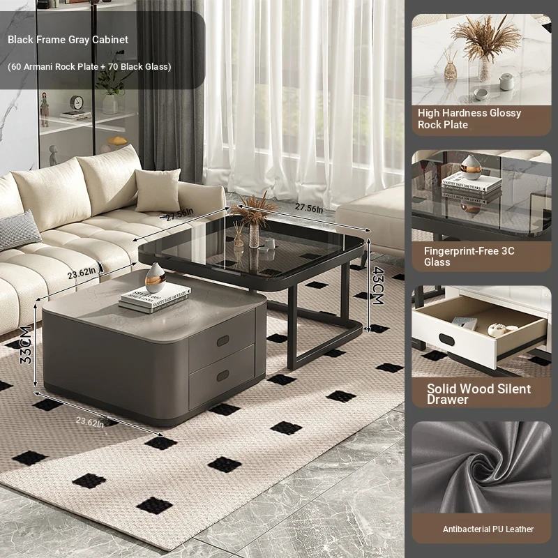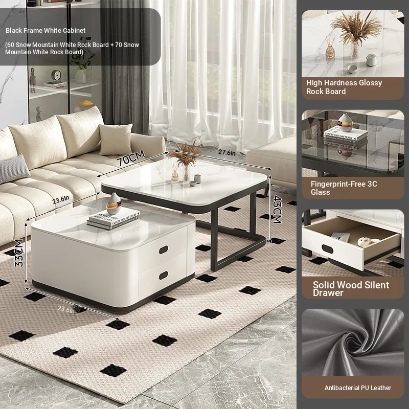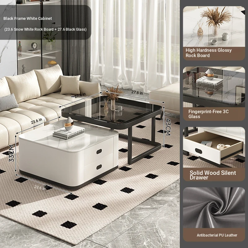 [White Black Rack] Snow Green White Rock Board Black Tempered Glass