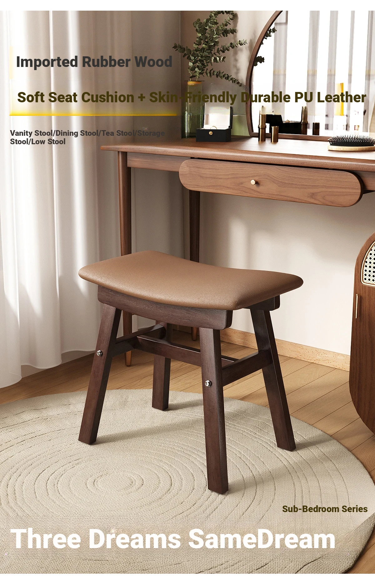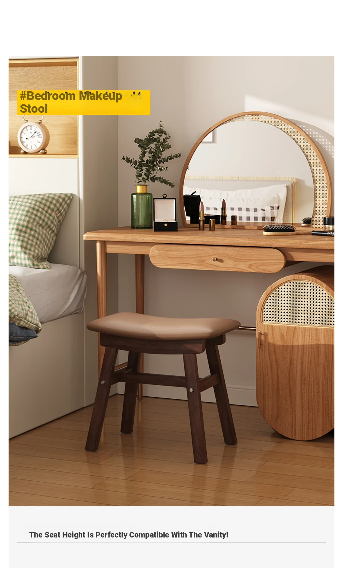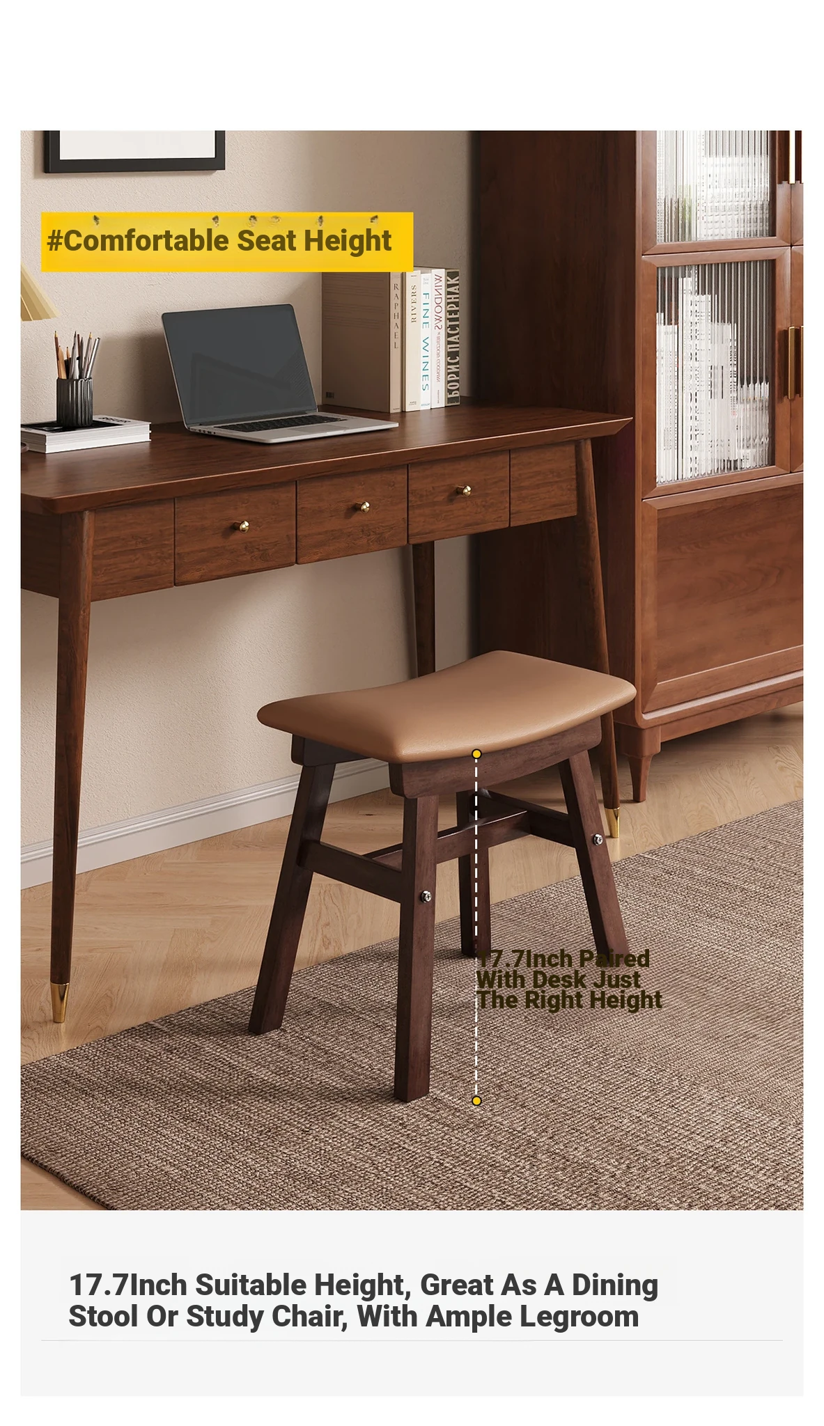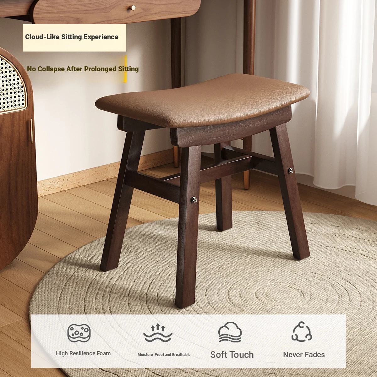 Sangmeng Solid Wood Vanity Stool - Stylish Saddle Design for Home Use, Perfect Makeup Chair for Girls' Bedrooms and Dressing Tables.