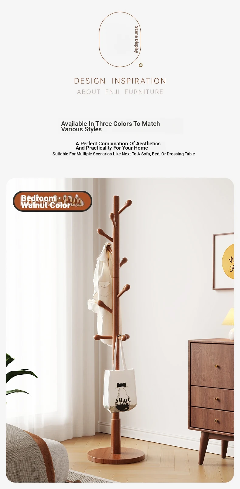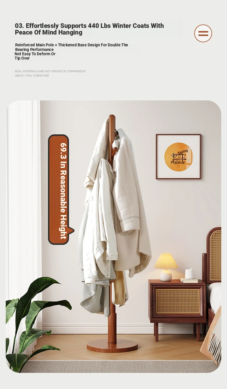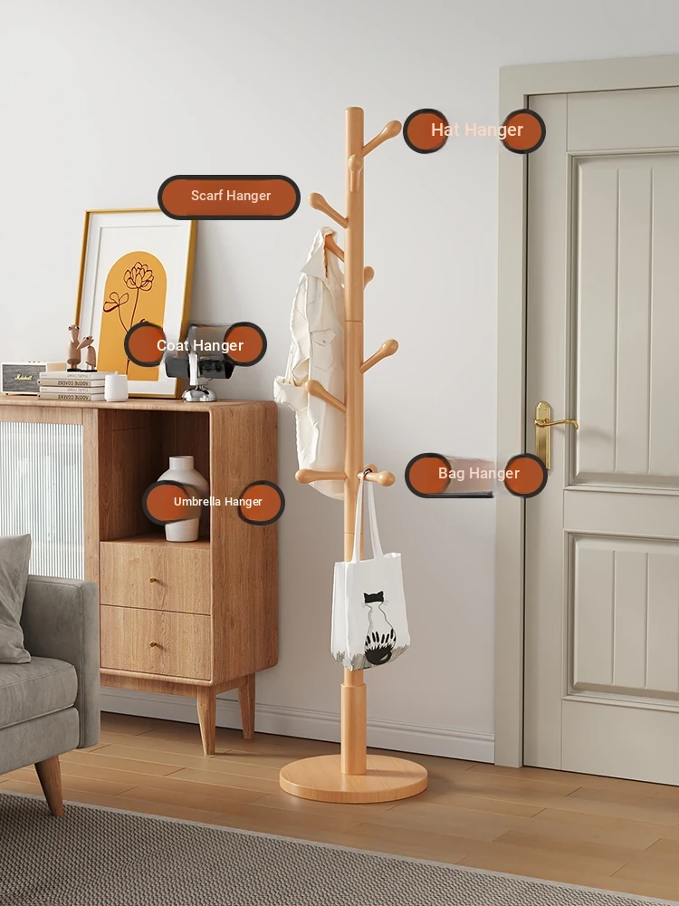 Solid Wood Freestanding Hanger - Elegant Minimalist Clothes Rack for Bedroom and Living Room - Versatile Coat and Bag Stand, Perfect for Home Use