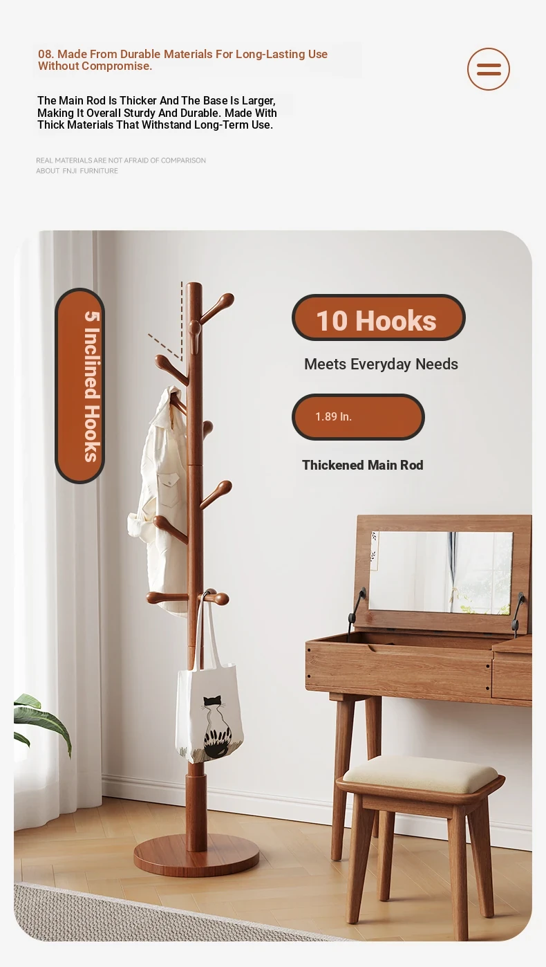 [Import Beech] walnut color three legs (upgrade round head 8 hook)