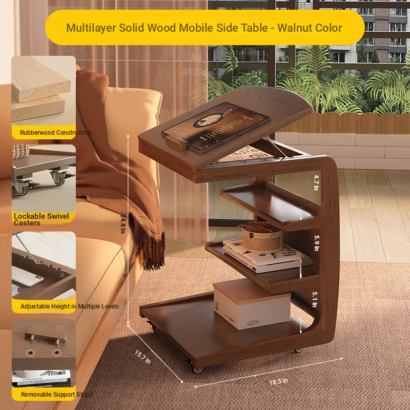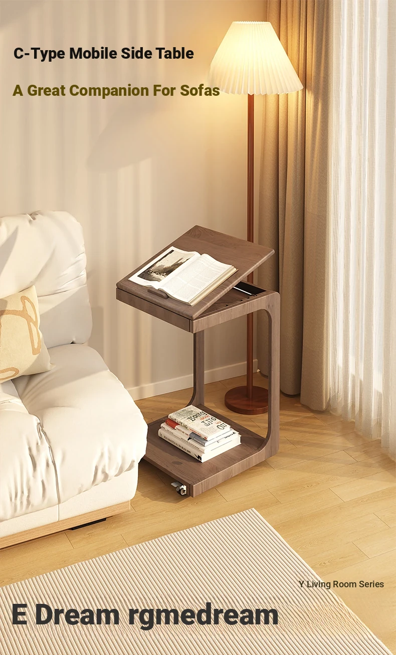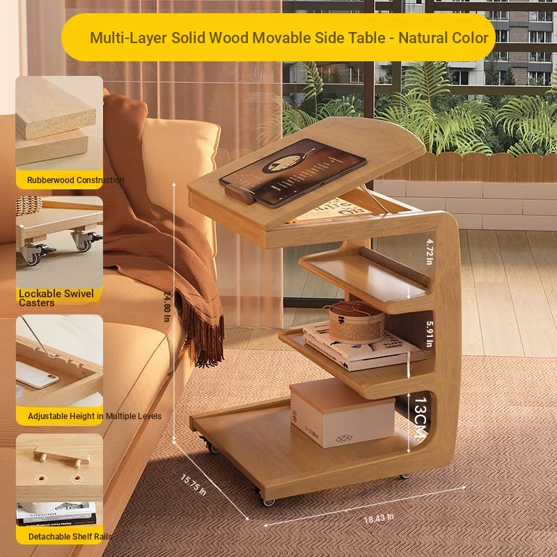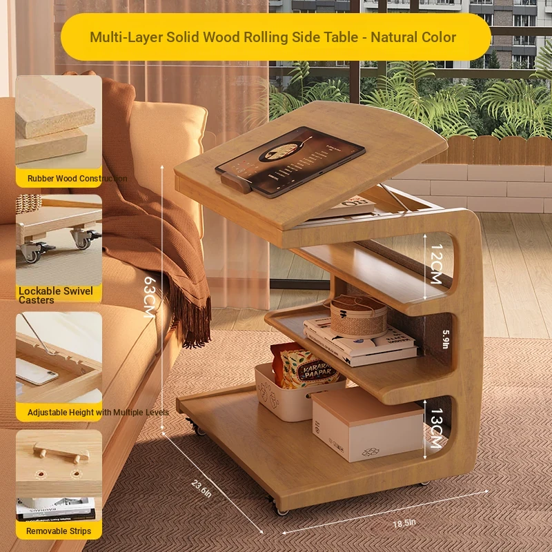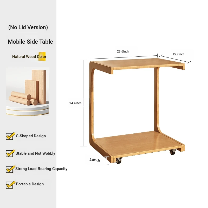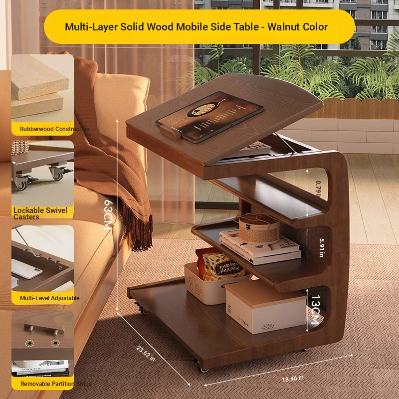 Solid Wood Side Table - Versatile Living Room Coffee Table, Movable Sofa Side Cabinet, Creative Bedroom Nightstand for Stylish Storage and Decor