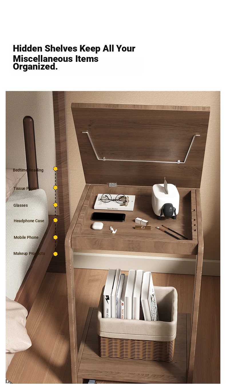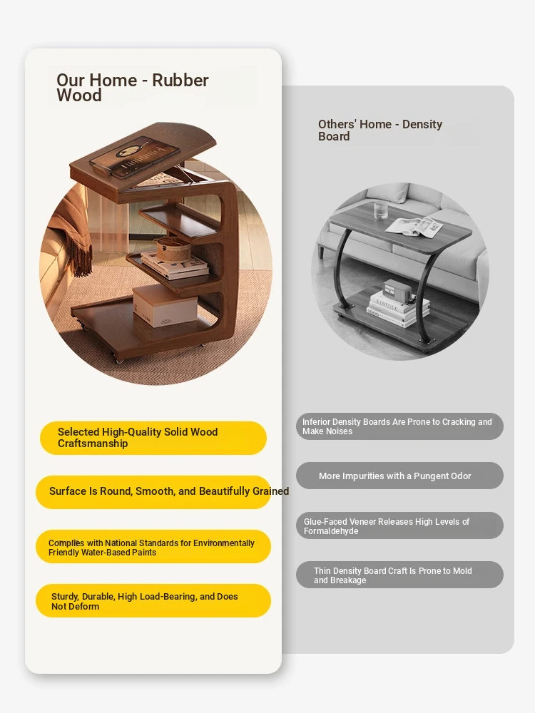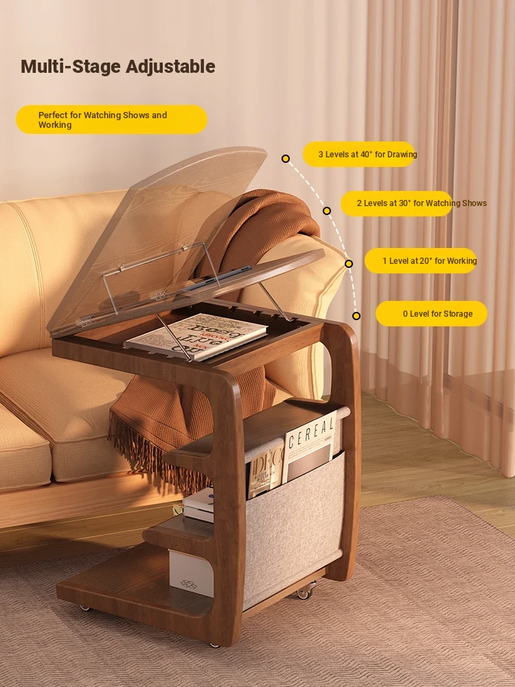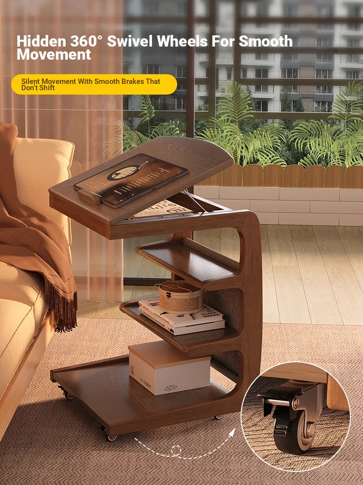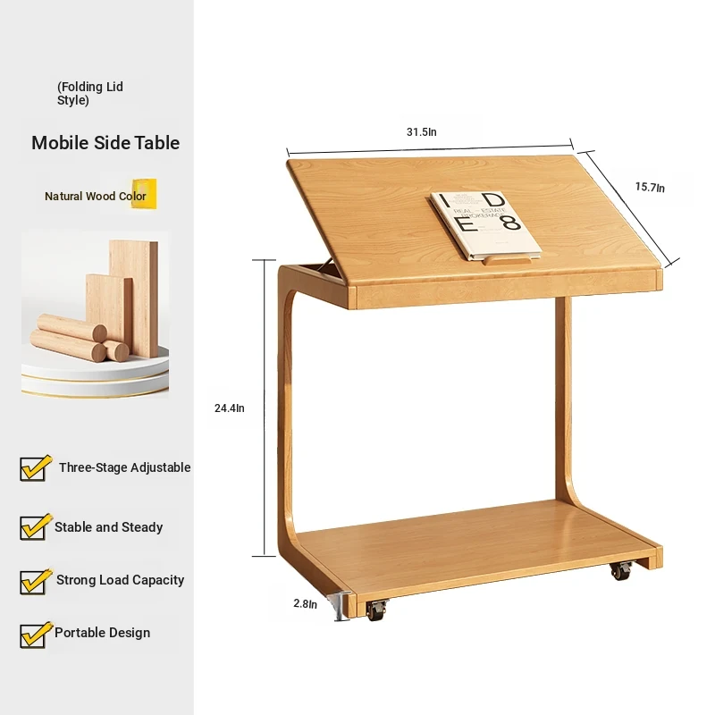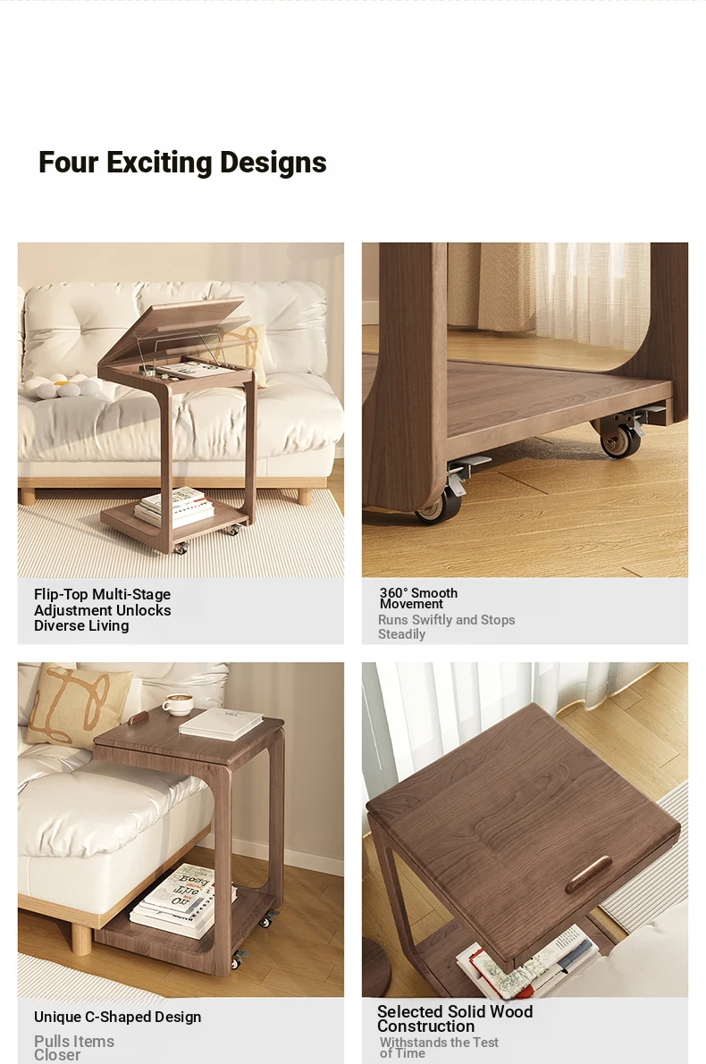 Solid Wood Side Table - Versatile Living Room Coffee Table, Movable Sofa Side Cabinet, Creative Bedroom Nightstand for Stylish Storage and Decor