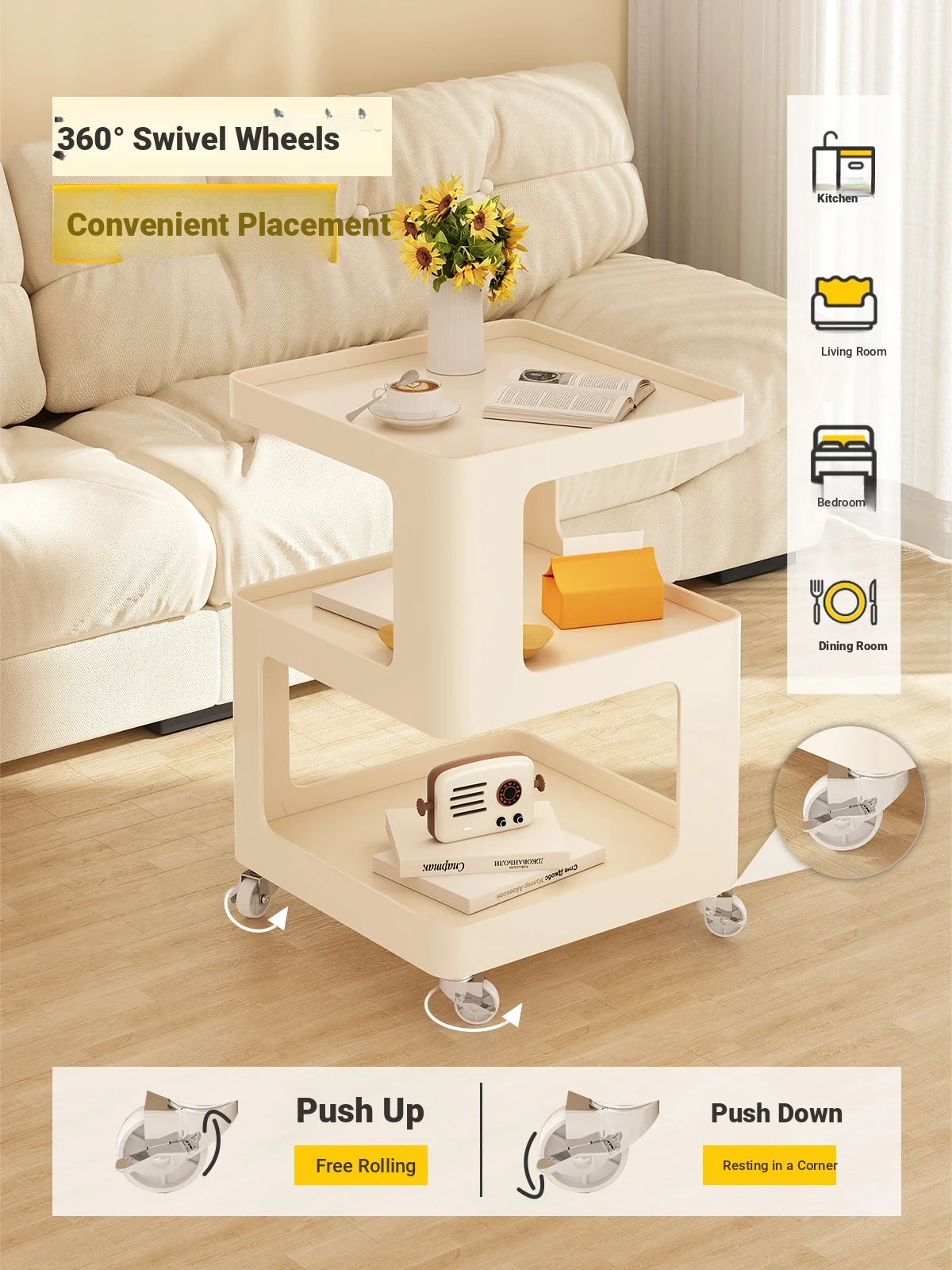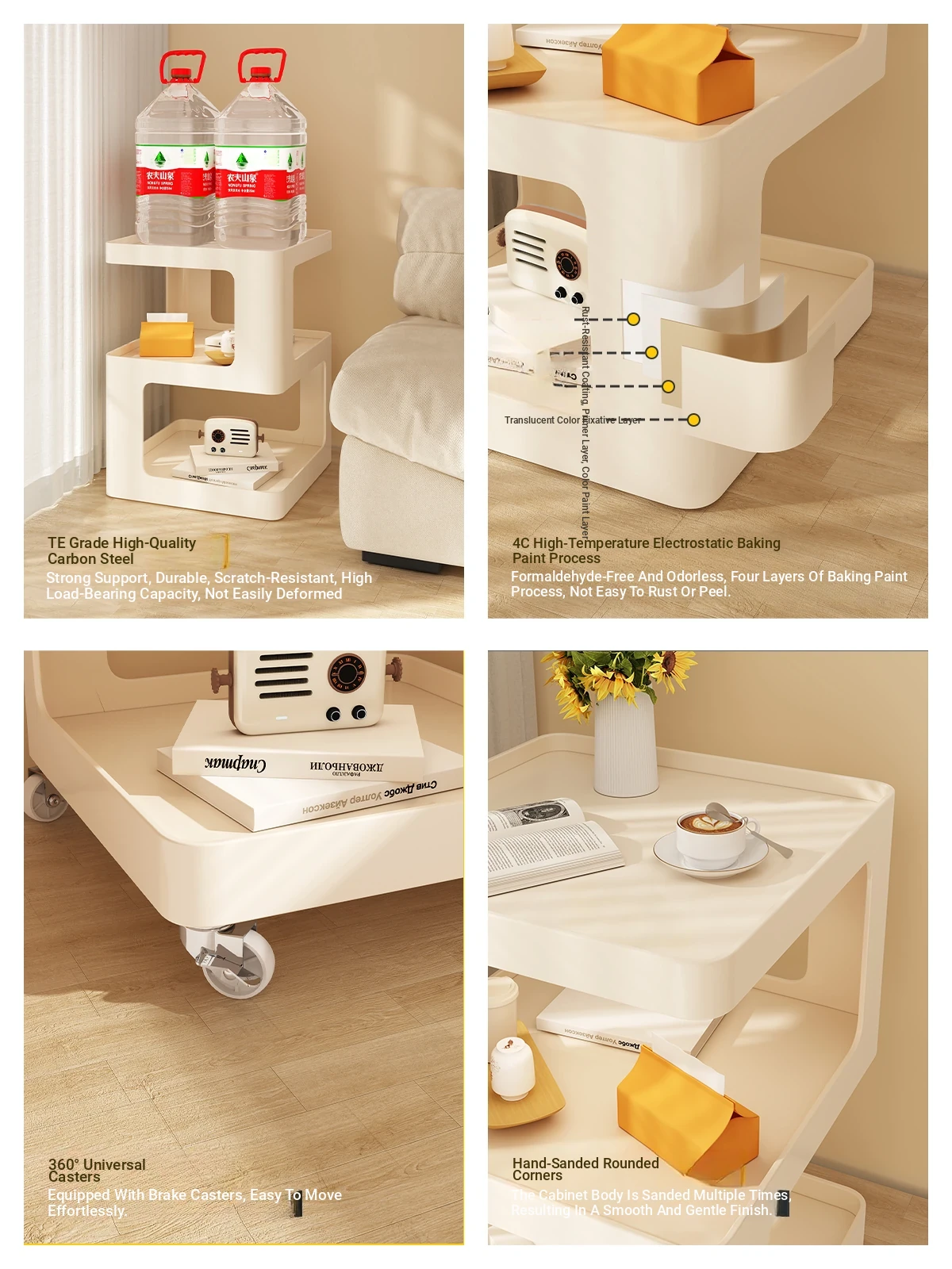 [Universal wheel + custom table mat] 30*52 cream white [carbon steel bold thickened]]