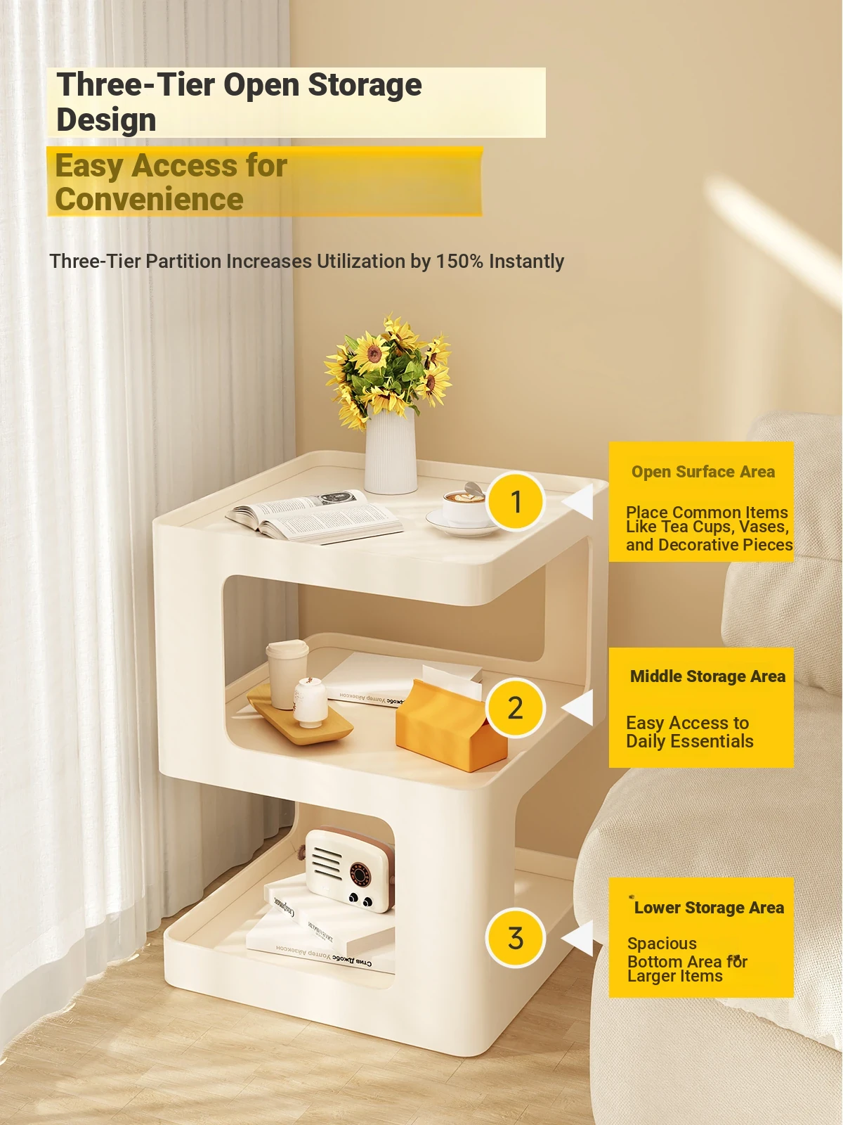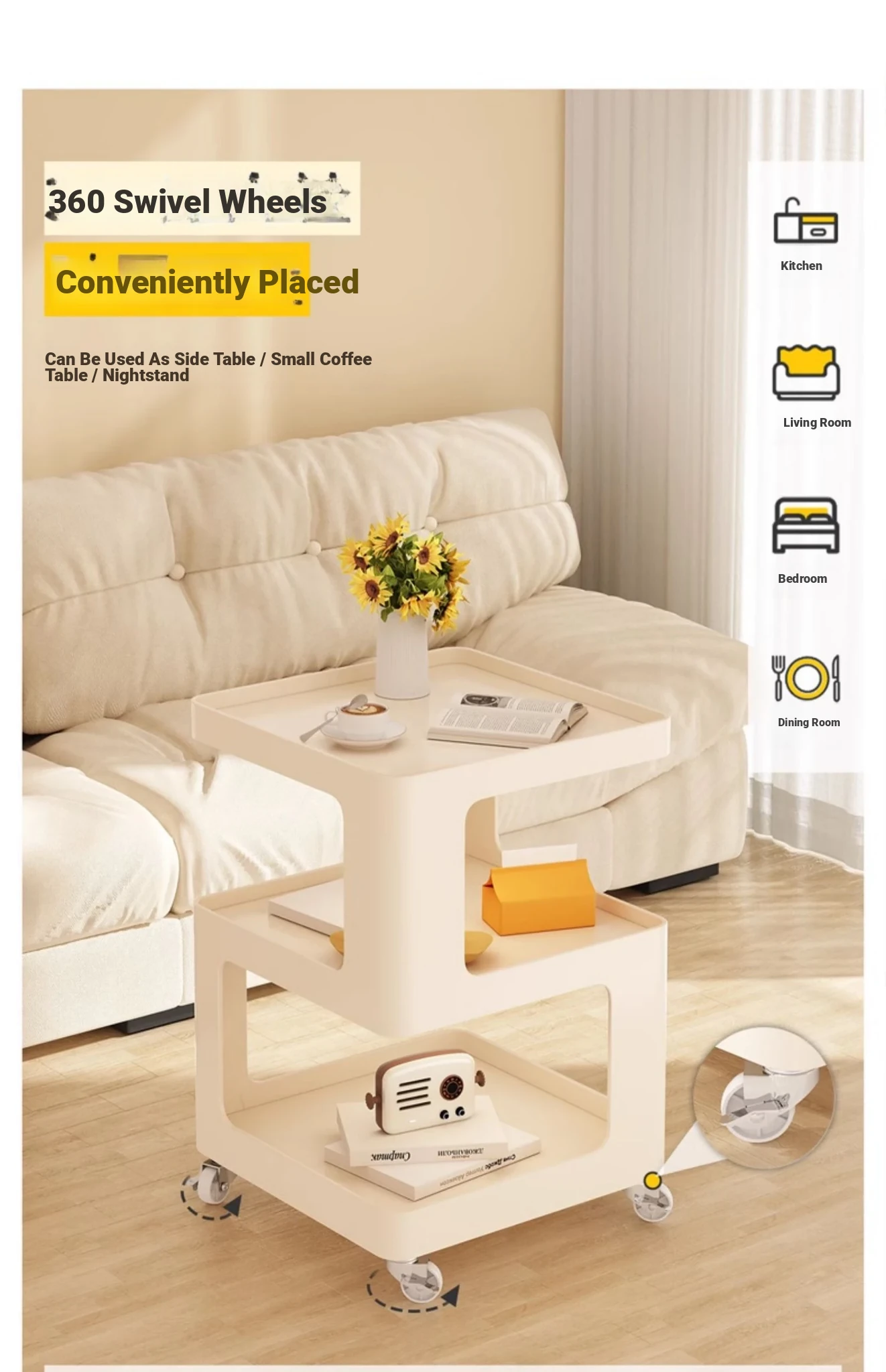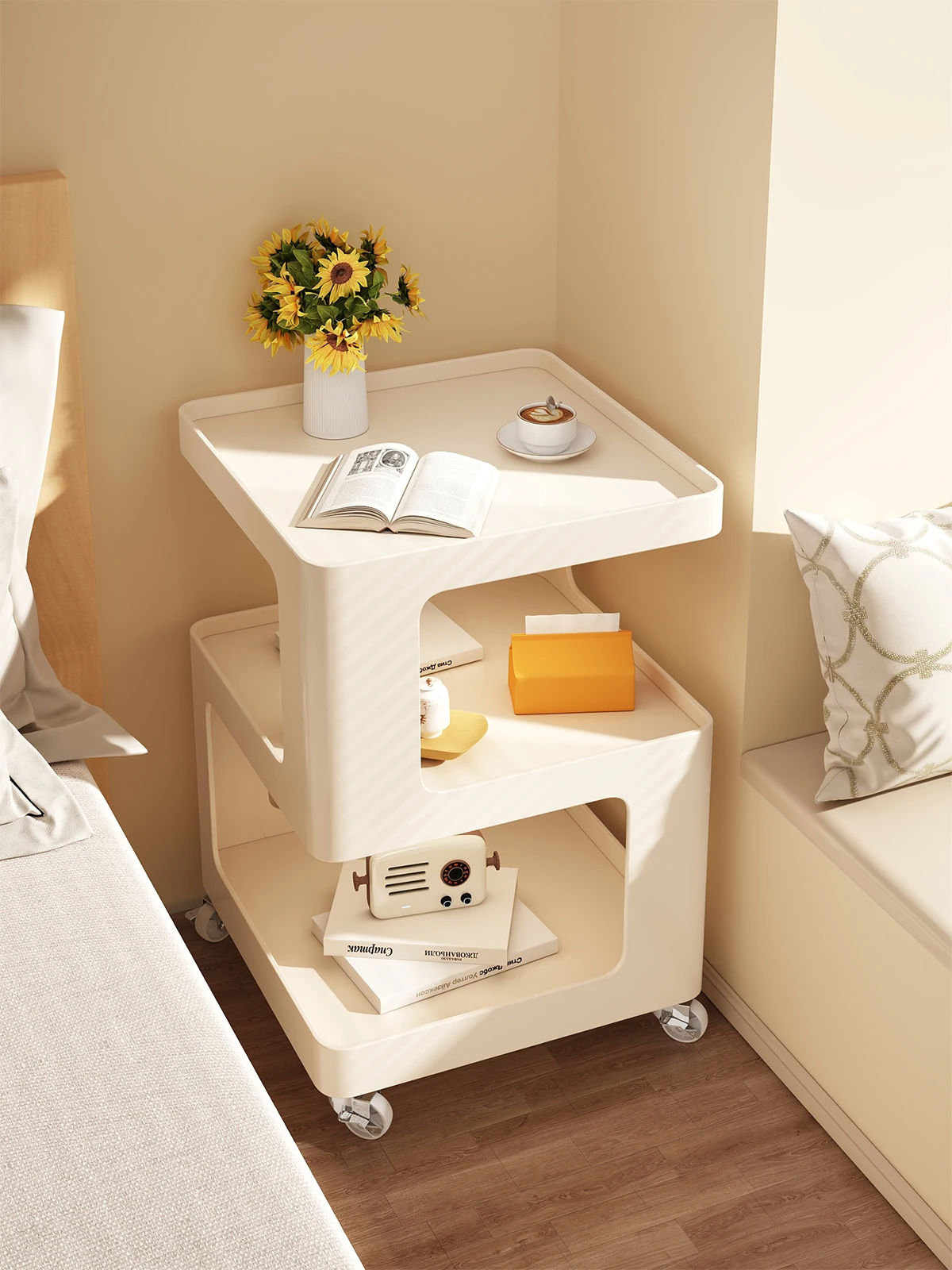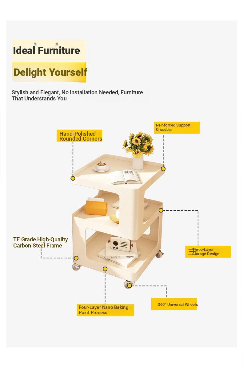 Stylish Movable Side Table for Sofa - Versatile Iron Bedside Cabinet, Perfect for Living Room & Bedroom, Ideal Small Coffee Table and Storage Rack
