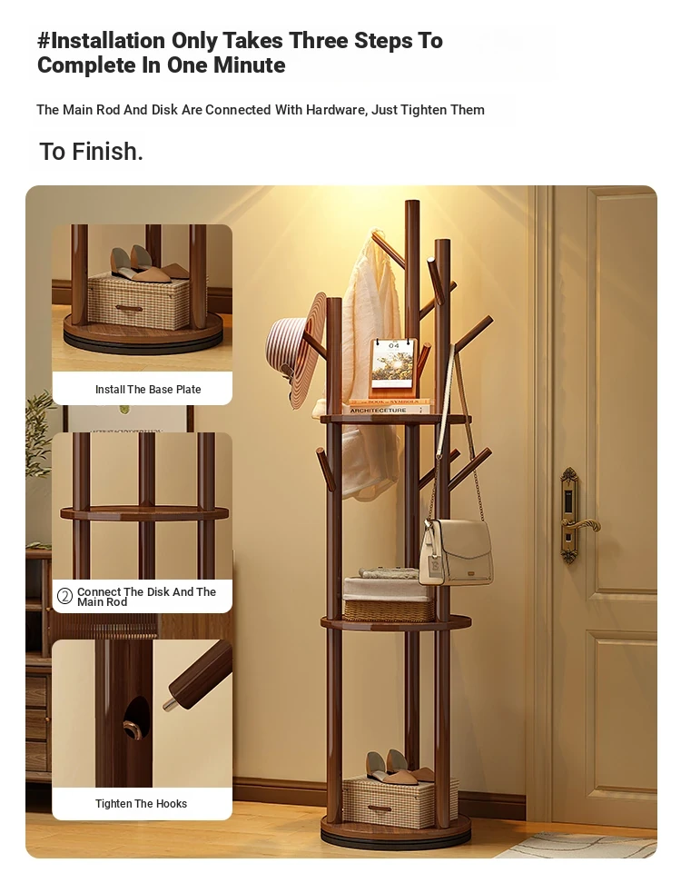 "Three Dreams Solid Wood Corner Garment Rack - Stylish & Functional Floor Clothes Hanger for Bedroom, Living Room, and Home Use; Portable and Easy to Organize Your Space"