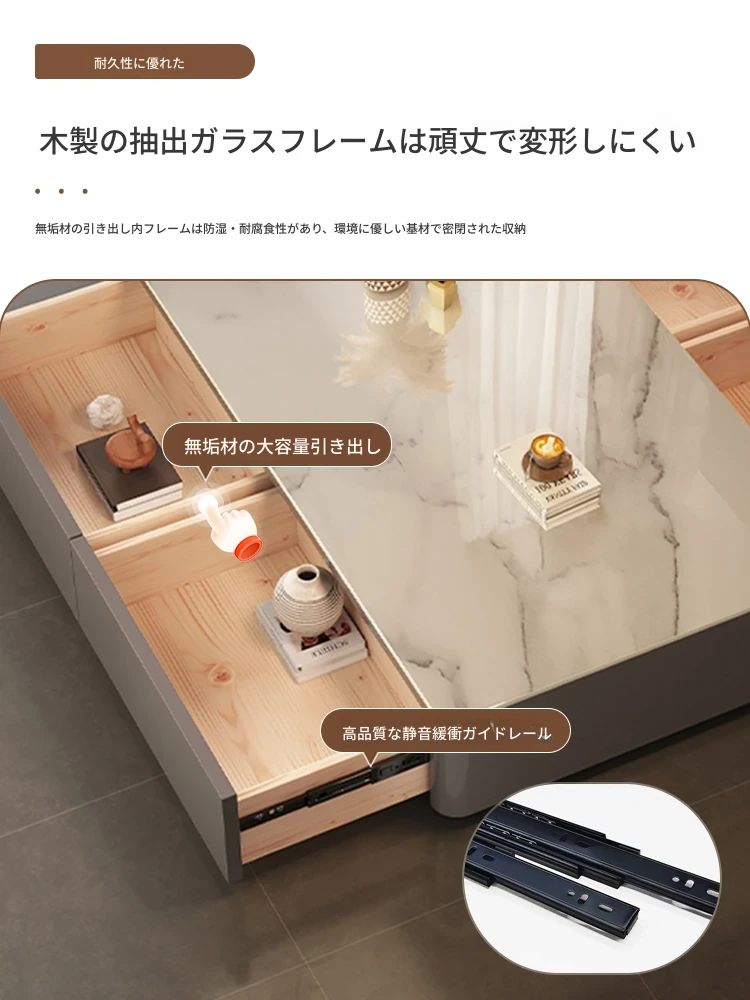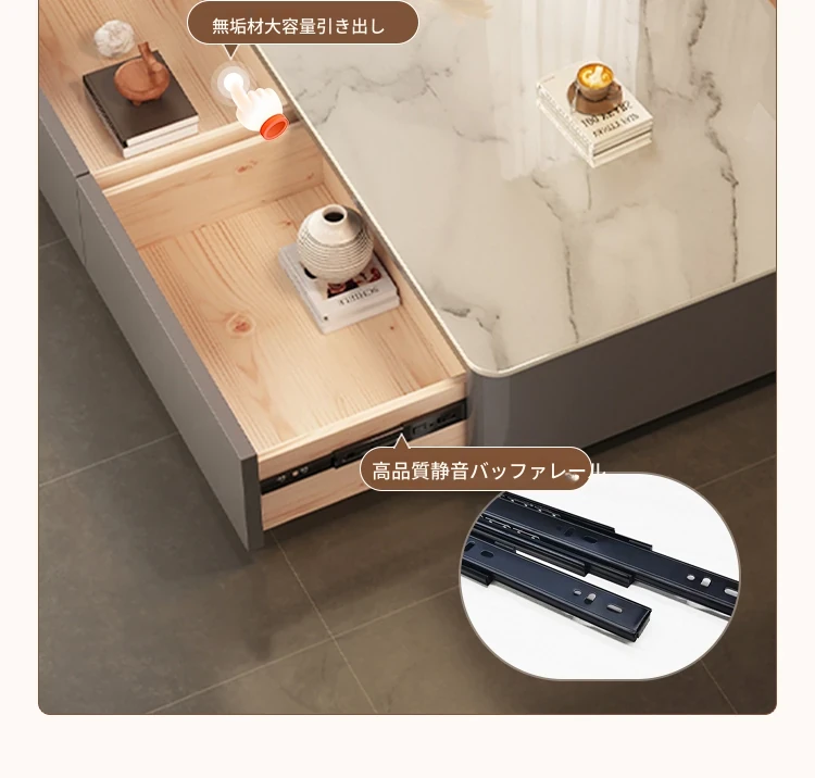 【整装上楼】灰色キャビネット二段引き出し 雪山白岩板100*50*36cm食品グレード岩板