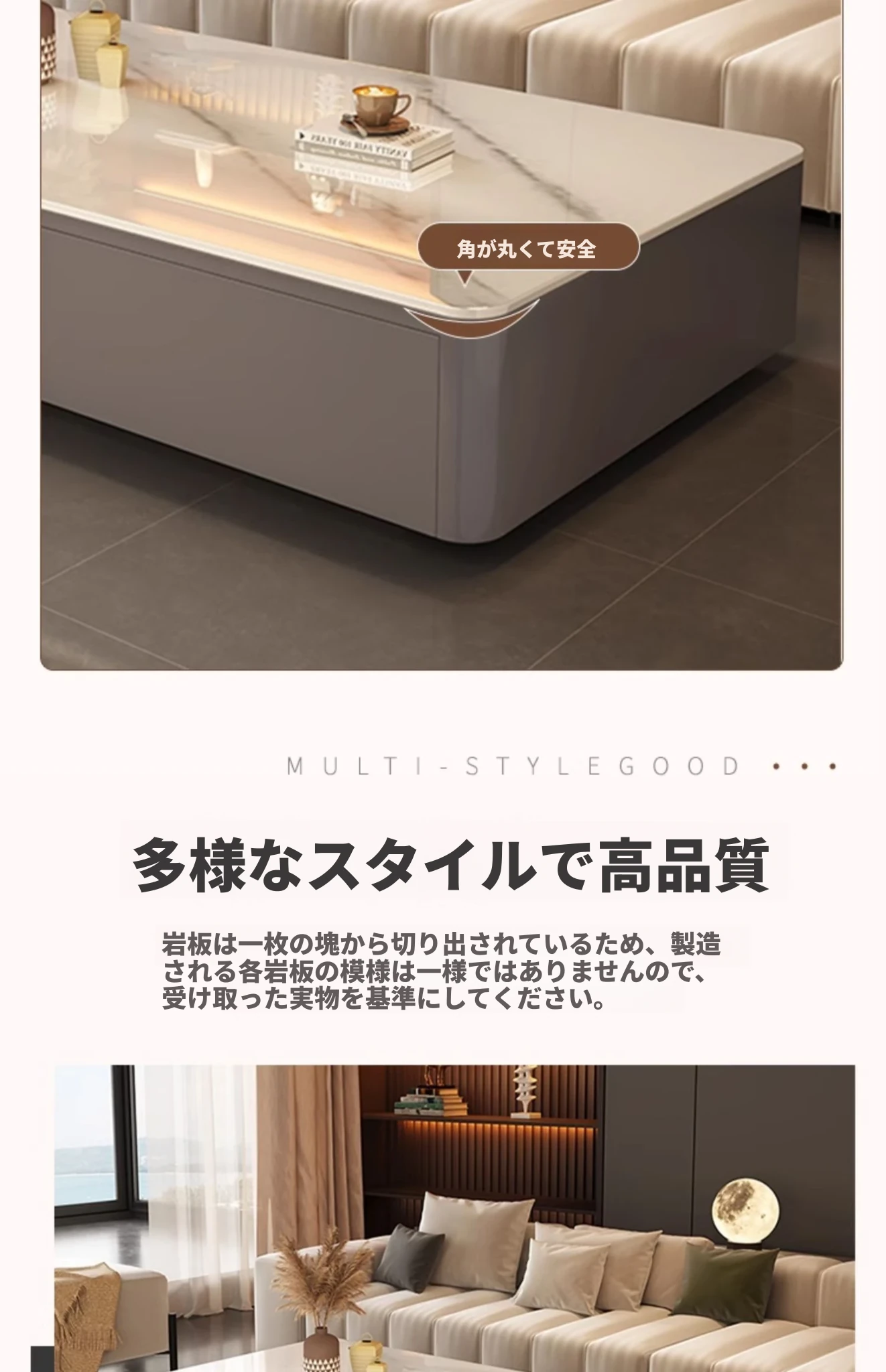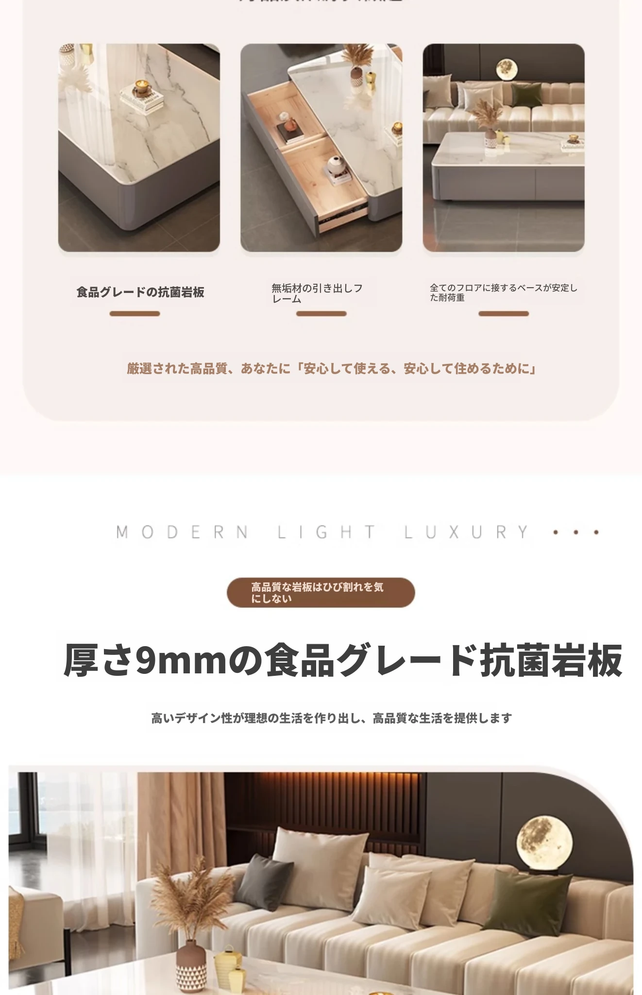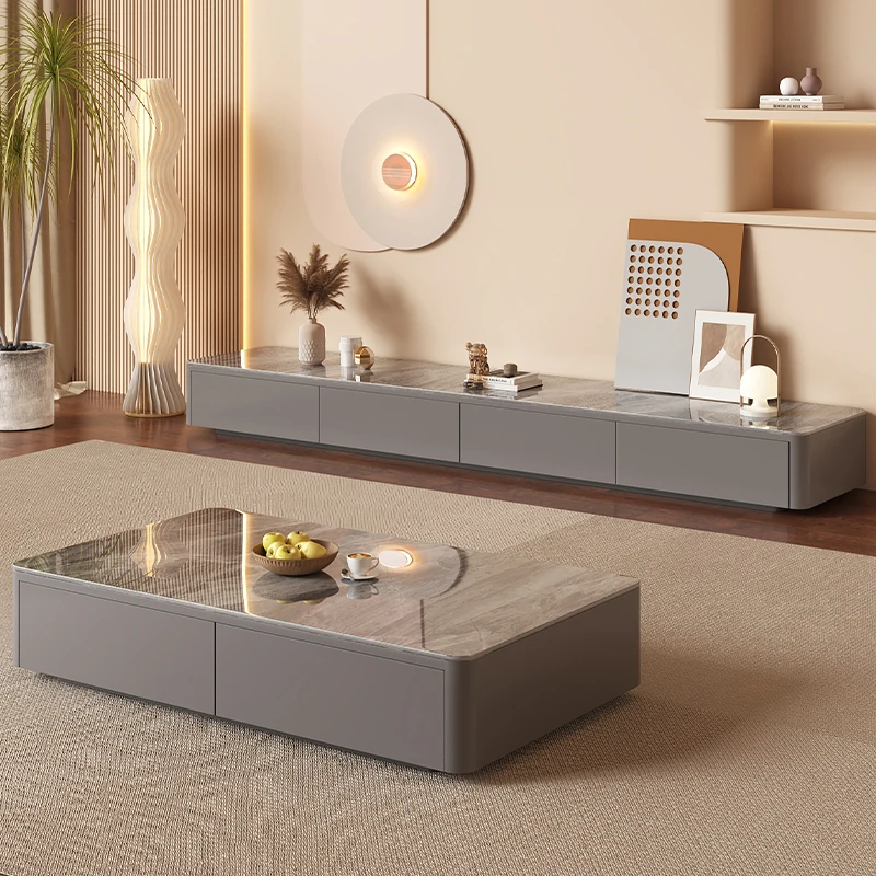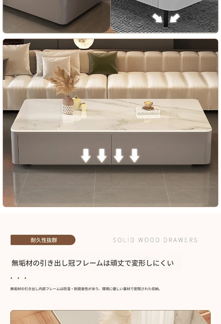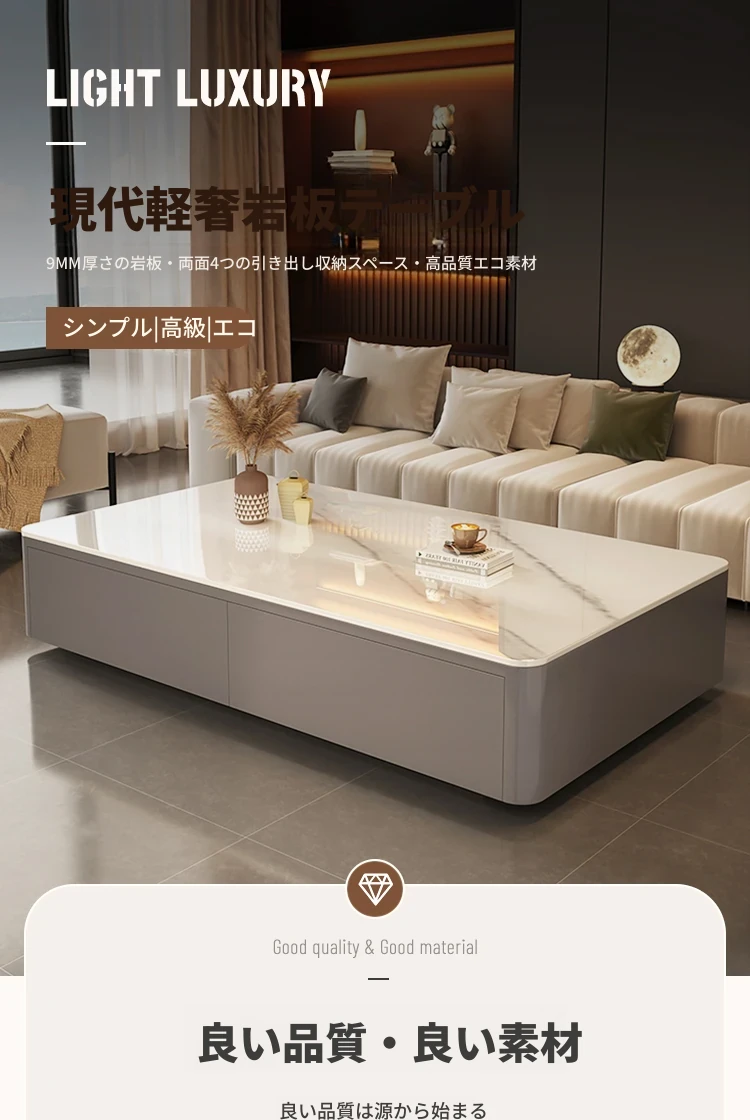 2024年新作!高級感あふれる岩板製リビングテーブル - 小型住宅に最適な現代的でシンプルなデザインの軽奢華茶卓。おしゃれな空間を演出し、くつろぎのひとときを提供します!