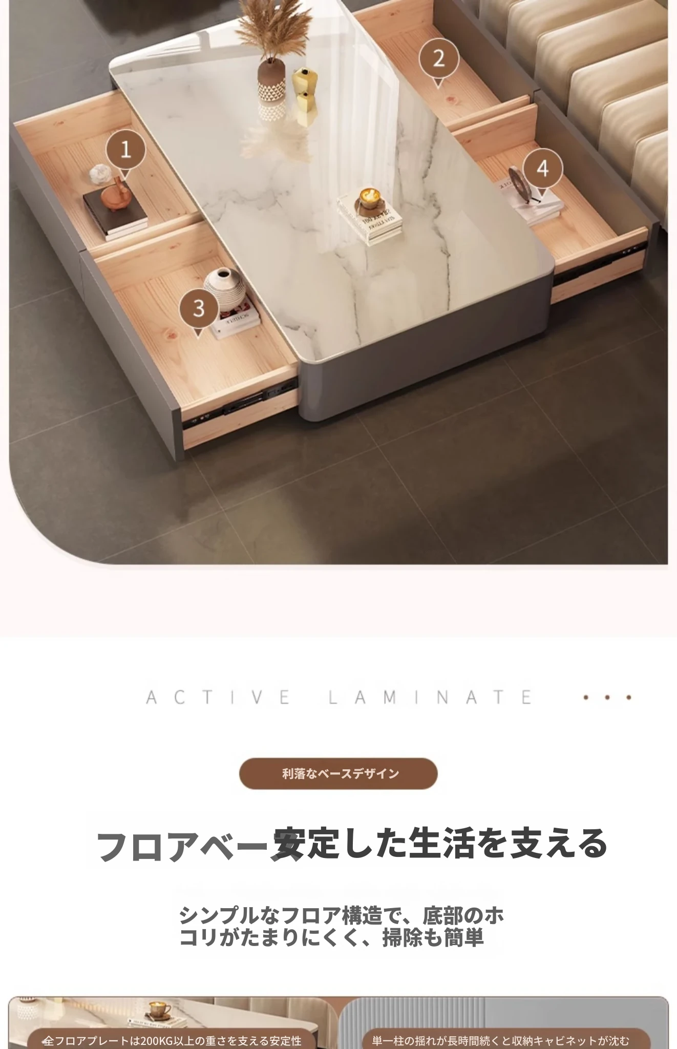 【テレビキャビネット】灰色キャビネット四段引き出し 维克灰岩板200*30*36cm