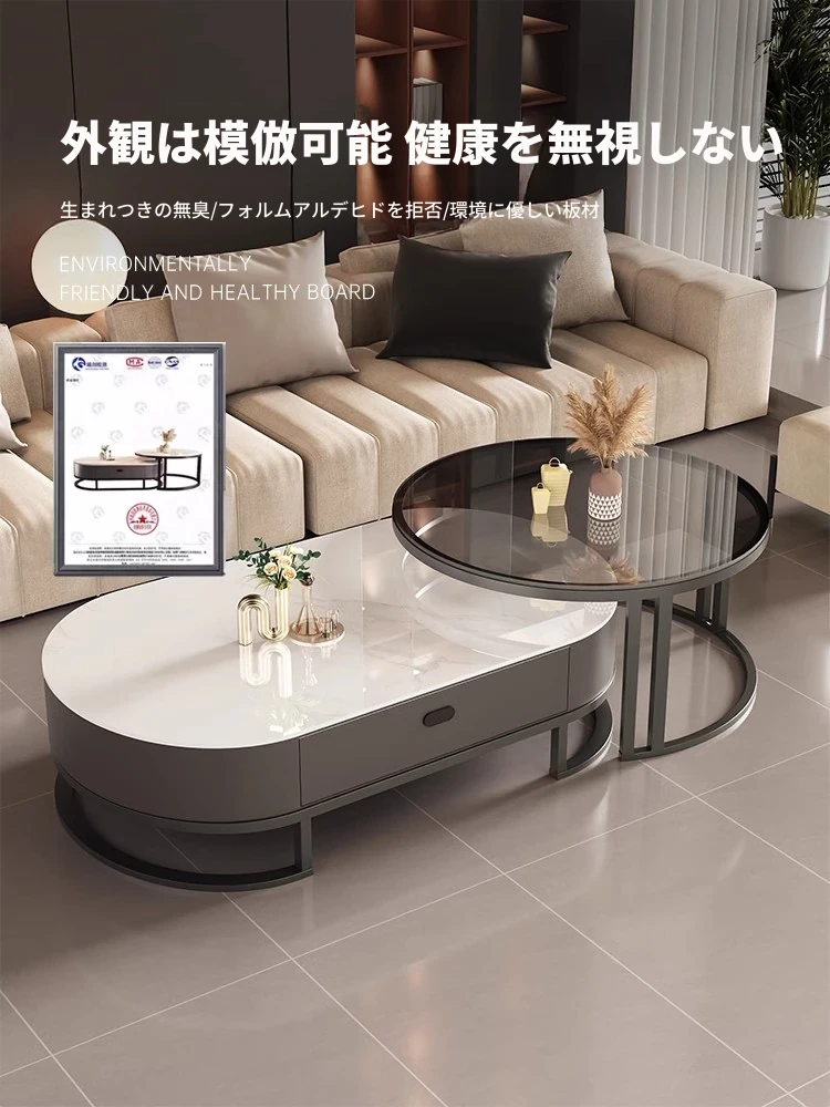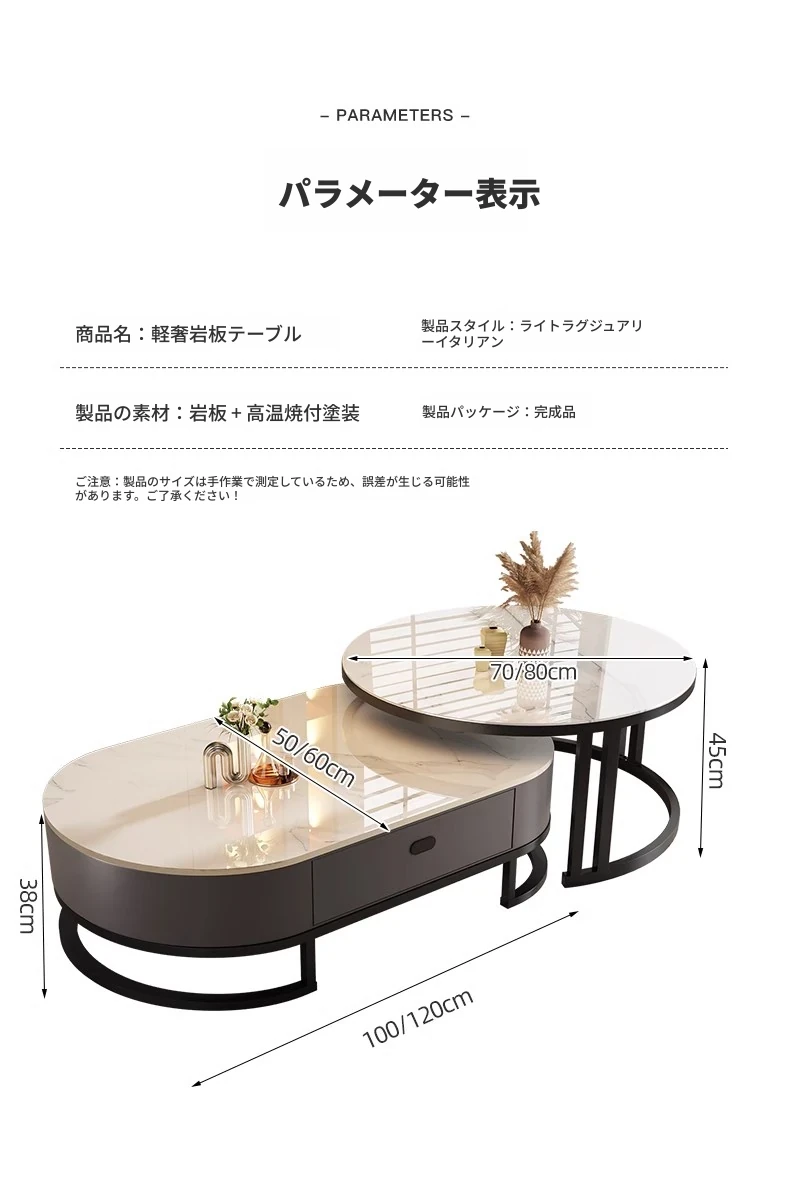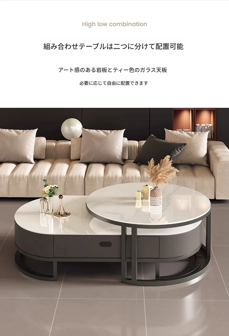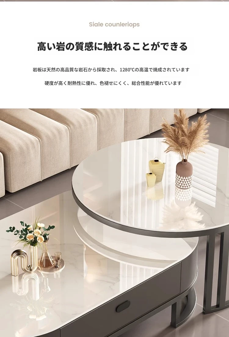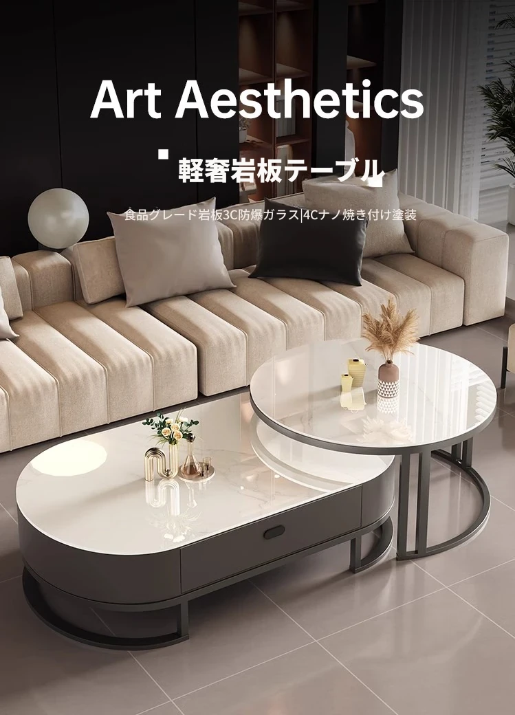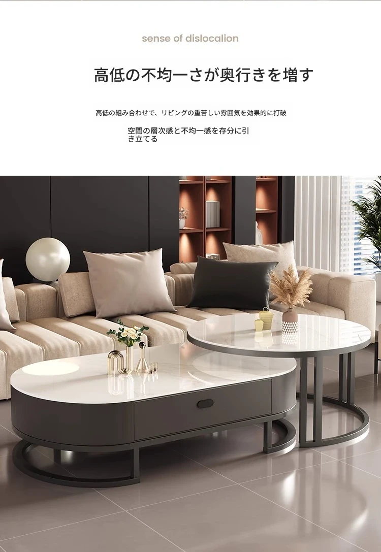 2024年最新モデル!岩板製オーバル型茶卓 - モダンでシンプル、軽やかなラグジュアリー感溢れるリビング用。小スペースにも最適なインスタ映えするデザインで、あなたの家をグレードアップ!