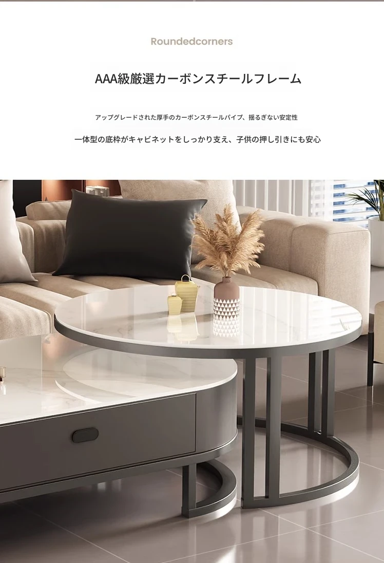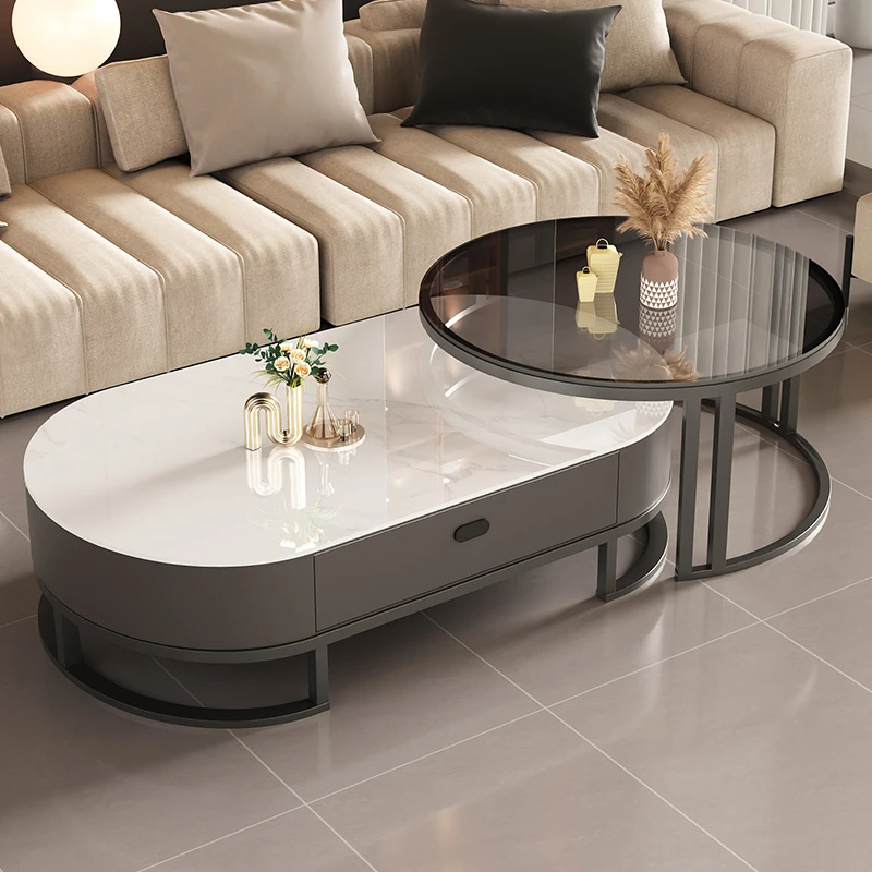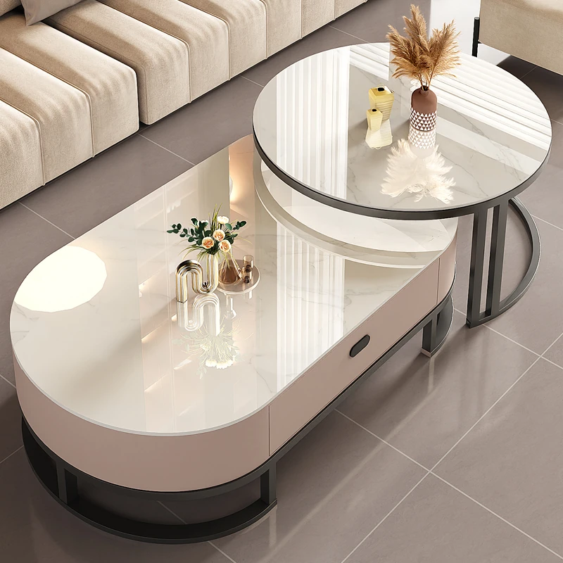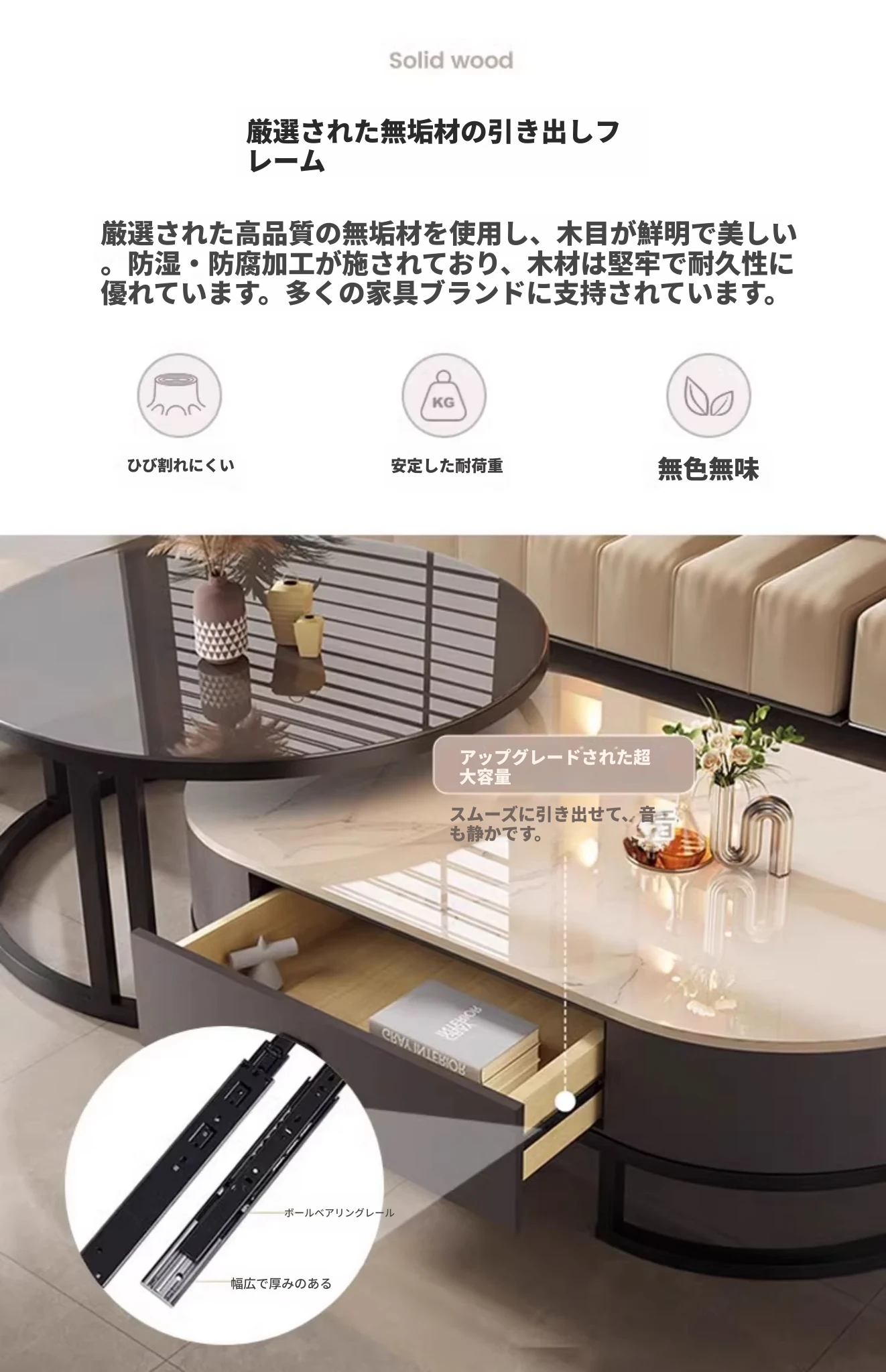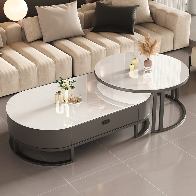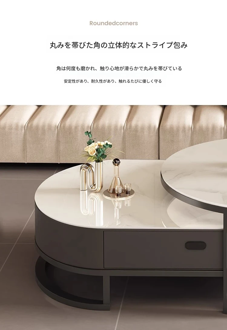 2024年最新モデル!岩板製オーバル型茶卓 - モダンでシンプル、軽やかなラグジュアリー感溢れるリビング用。小スペースにも最適なインスタ映えするデザインで、あなたの家をグレードアップ!