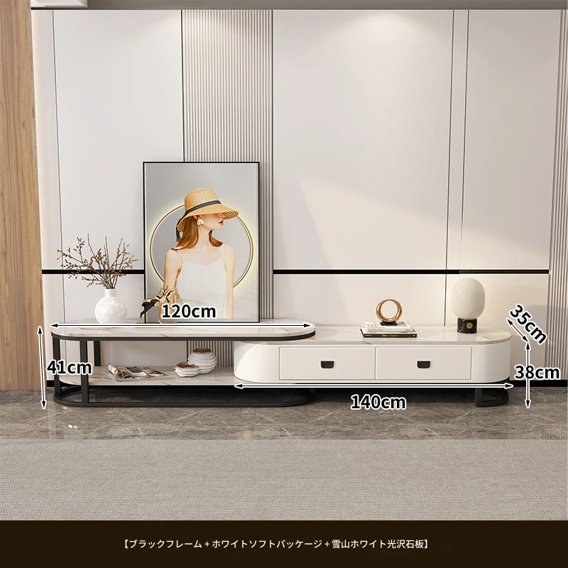 【テレビキャビネット黒フレームホワイトキャビネット】雪山ホワイト120+雪山ホワイト140cm