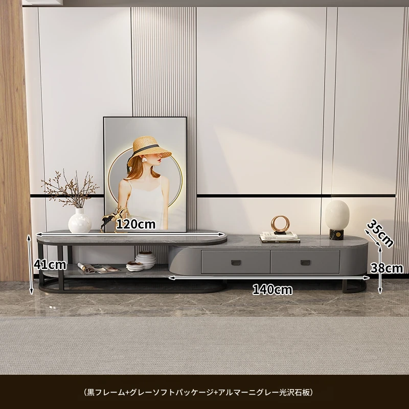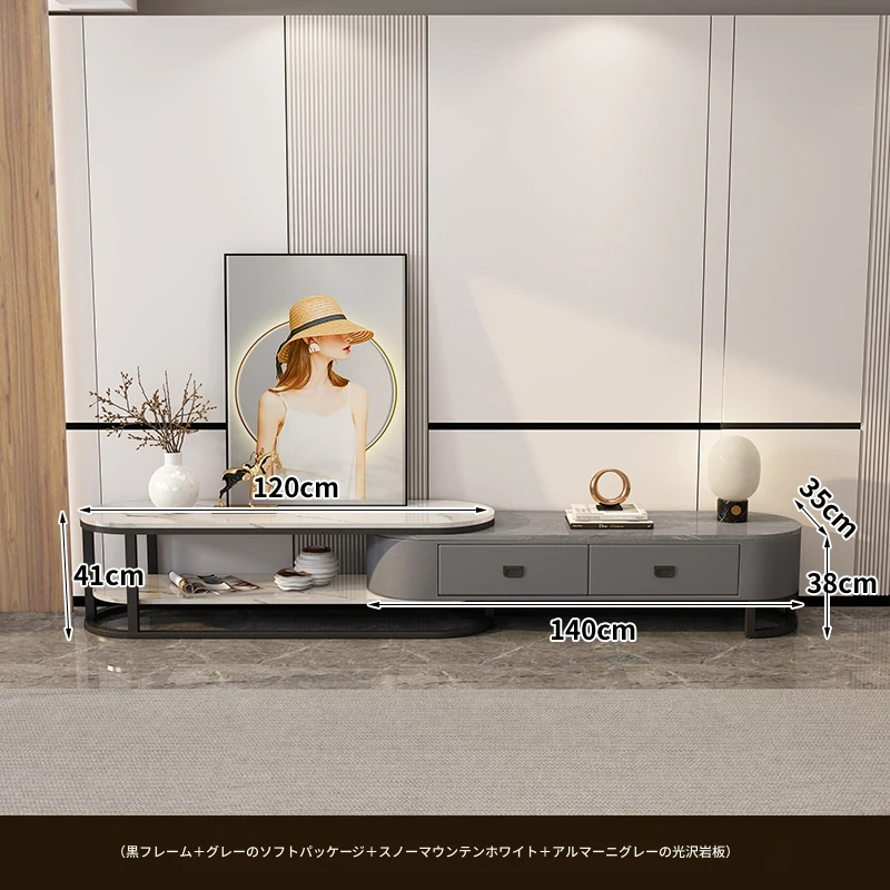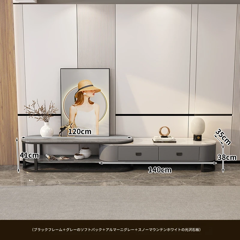 【テレビキャビネット黒フレームグレーキャビネット】雪山ホワイト120+ウィックグレー140cm