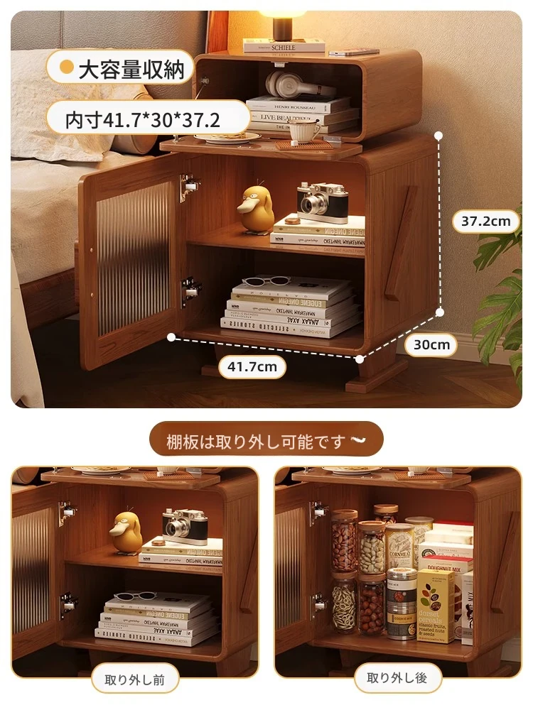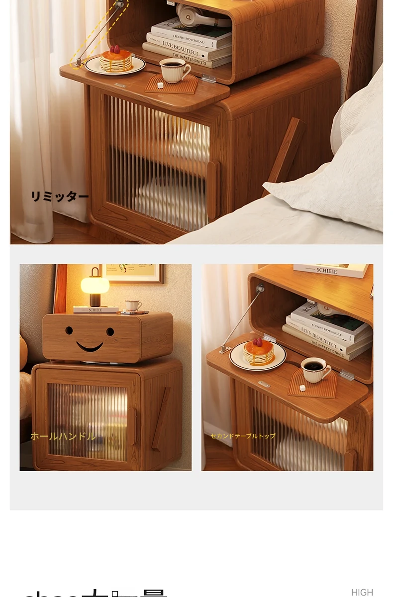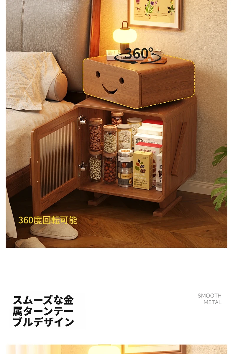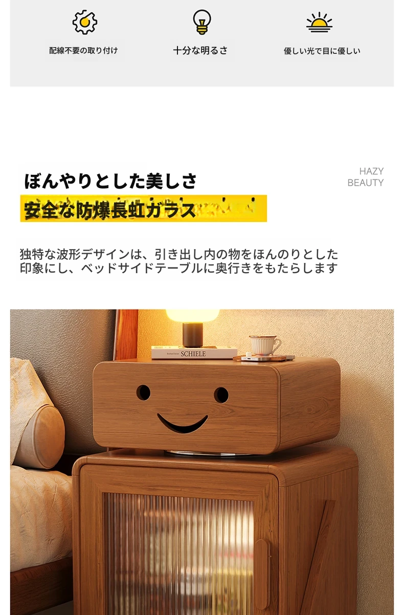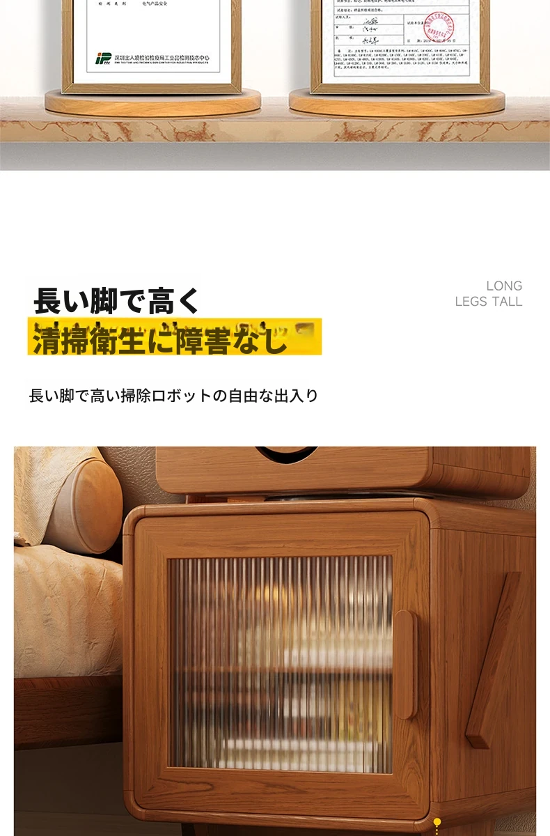2024年新作!全実木製ロボットデザインの子供用ナイトテーブル - シンプルでモダンな寝室にぴったりの収納付きベッドサイドキャビネット!子供たちの夢を叶える可愛いインテリア。