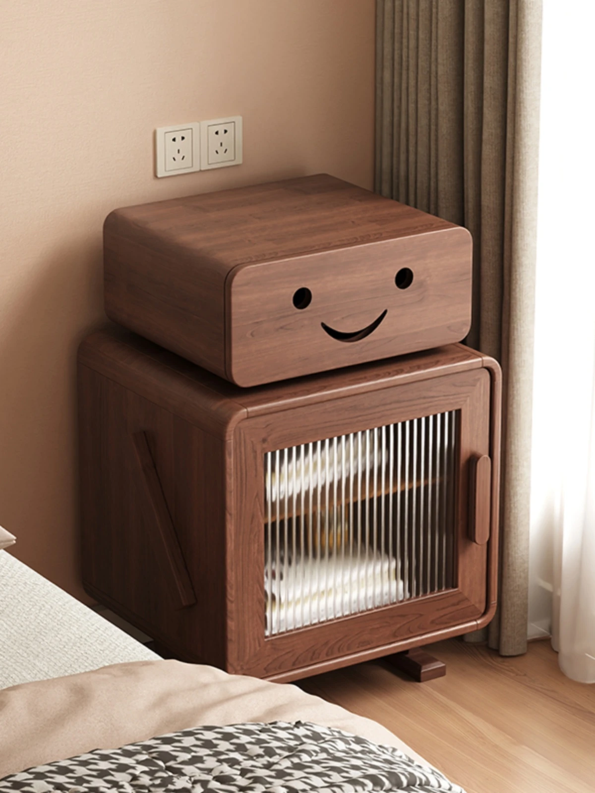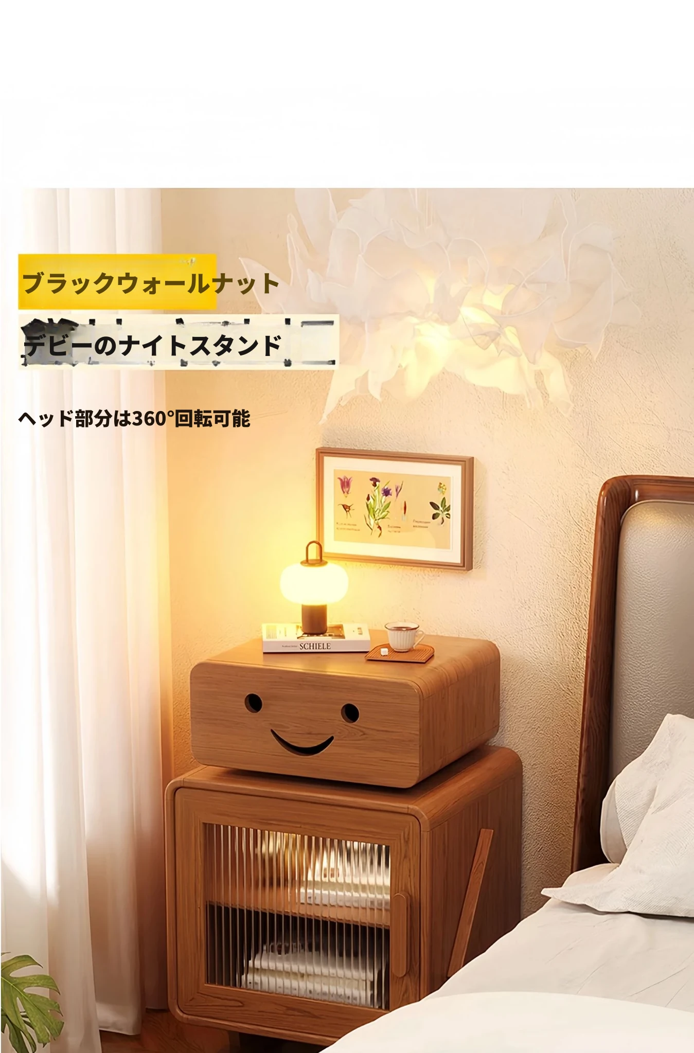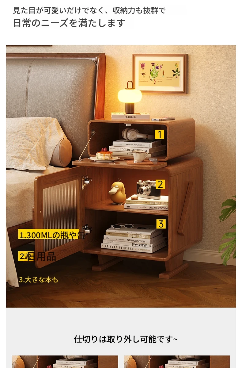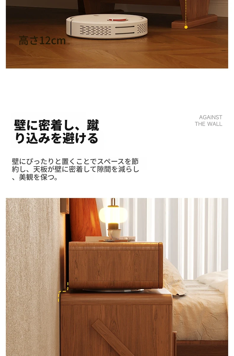 2024年新作!全実木製ロボットデザインの子供用ナイトテーブル - シンプルでモダンな寝室にぴったりの収納付きベッドサイドキャビネット!子供たちの夢を叶える可愛いインテリア。