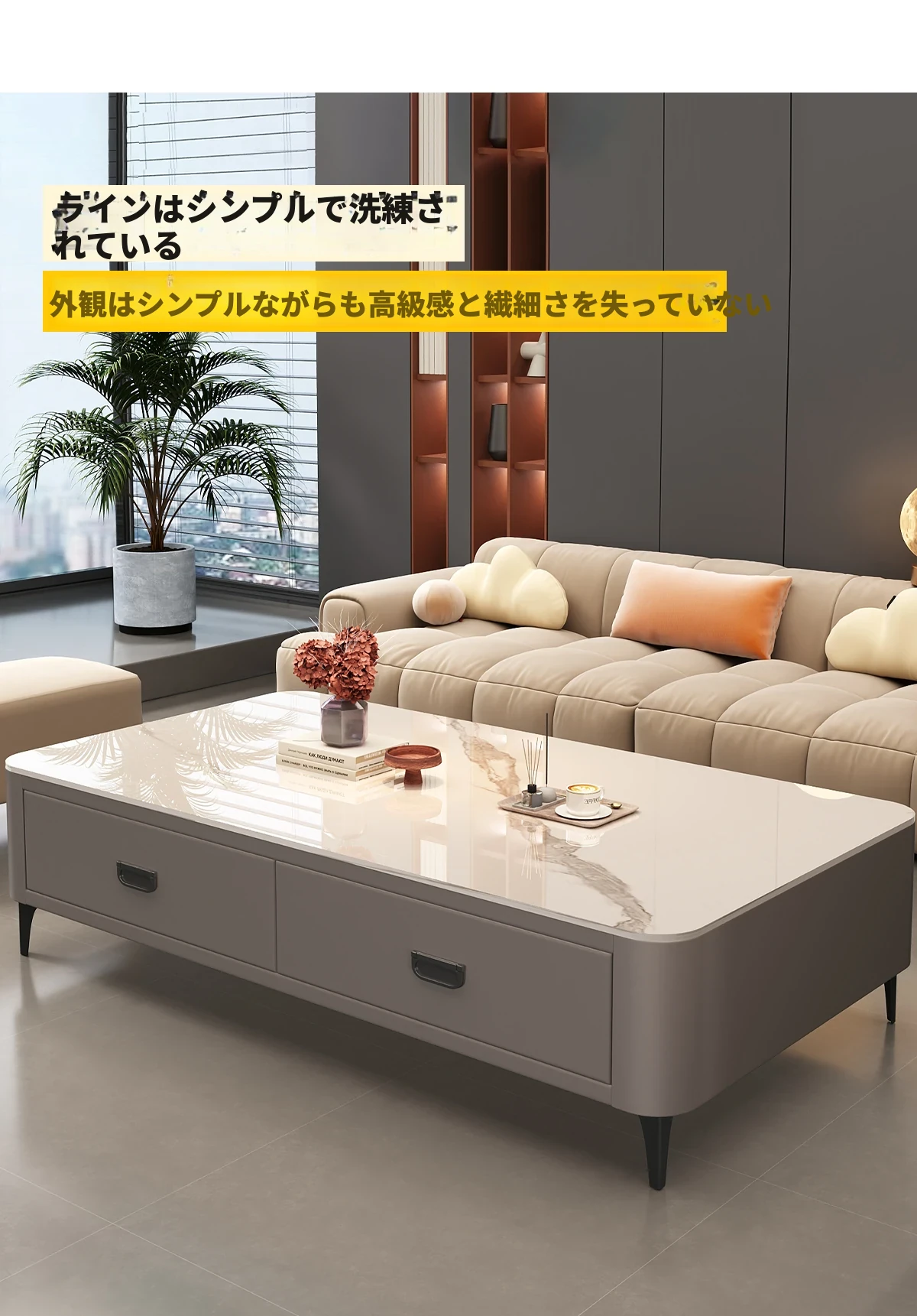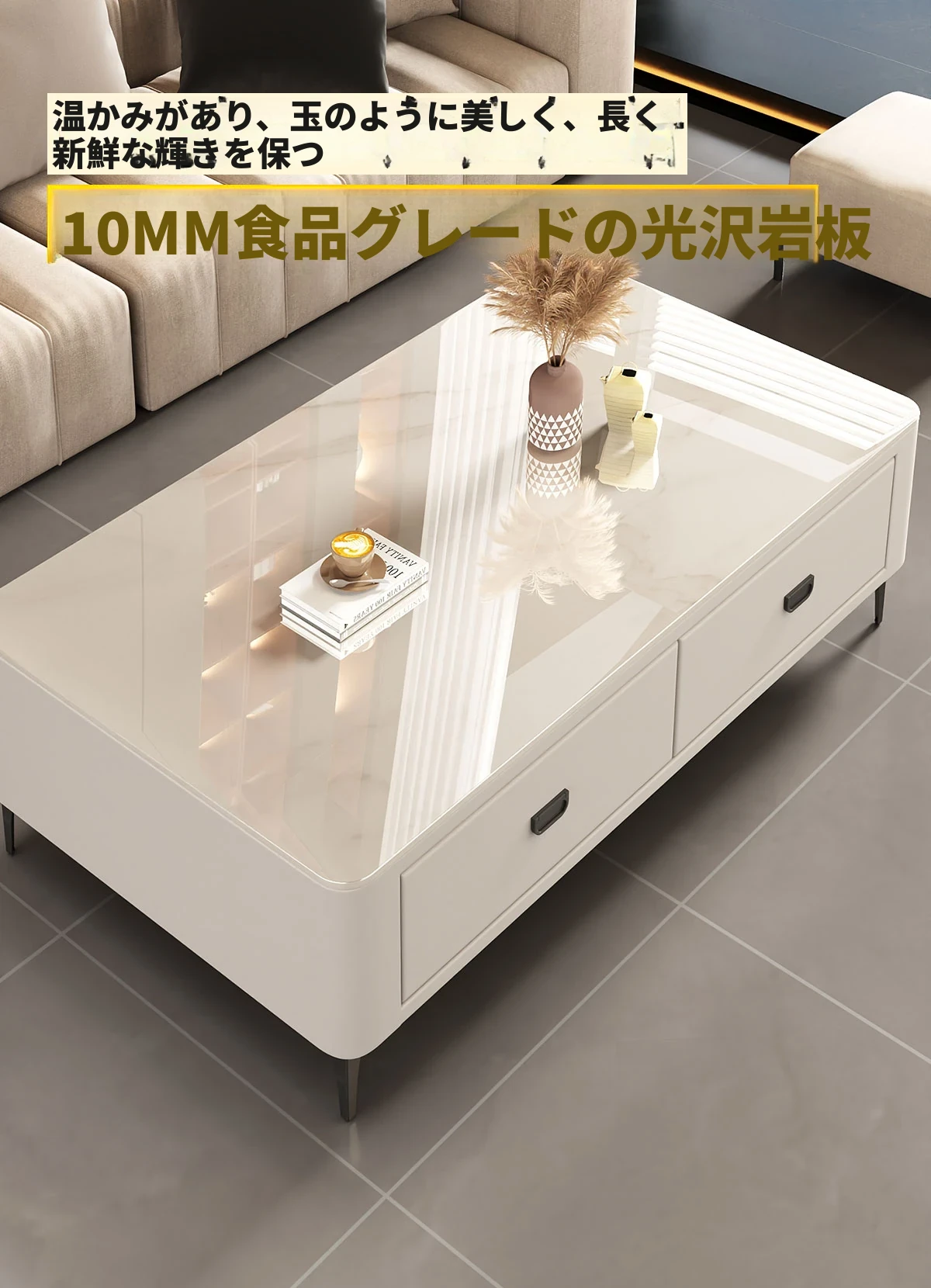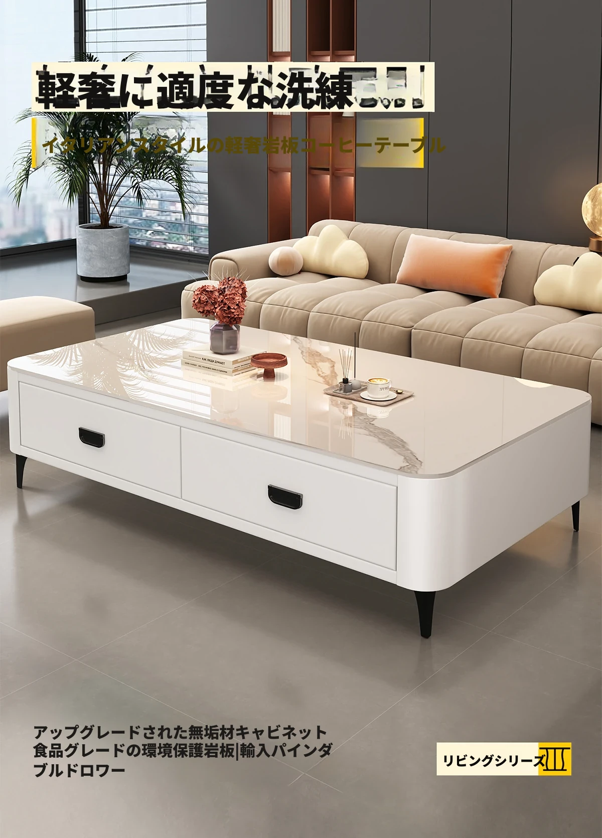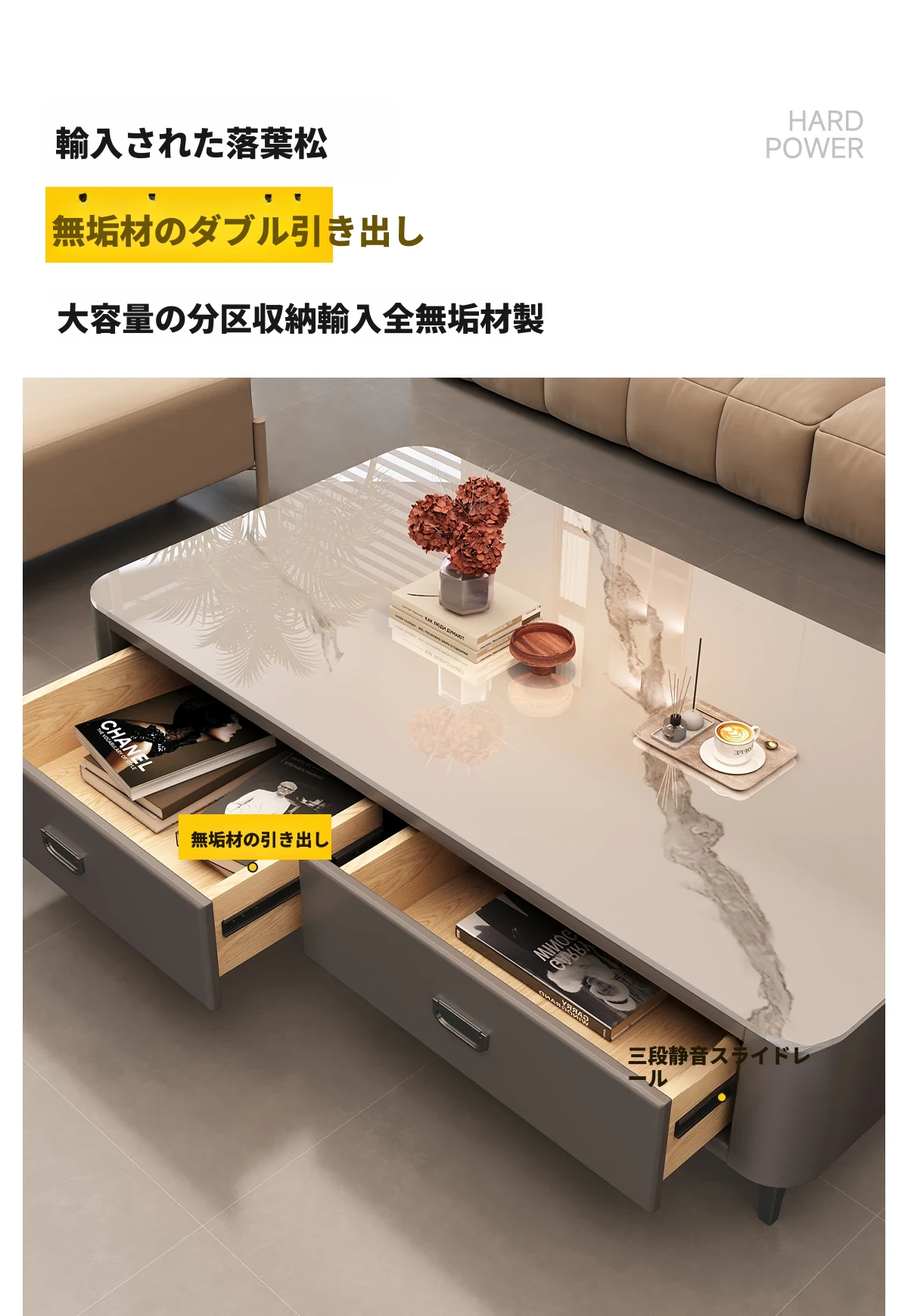 三夢の無垢材ロックボードコーヒーテーブル - 2025年新作!モダンな小型リビングにぴったりのラグジュアリー感あふれるデザイン、テレビ台としても使える多機能性!