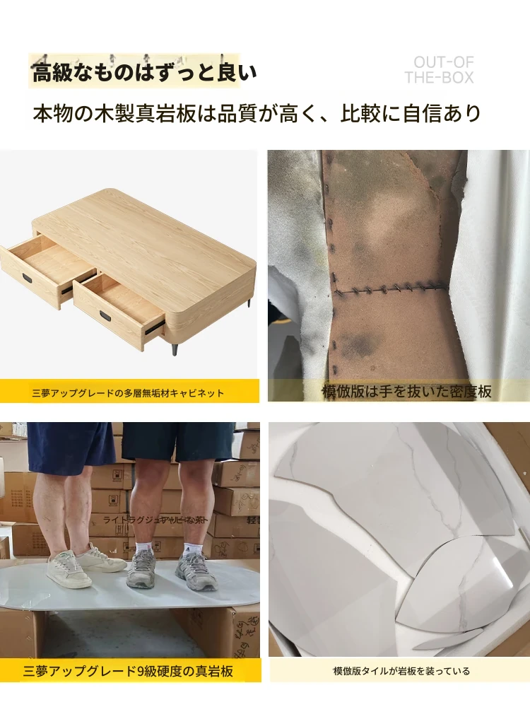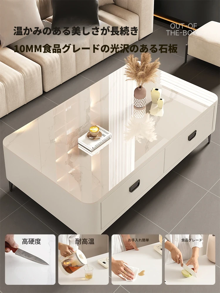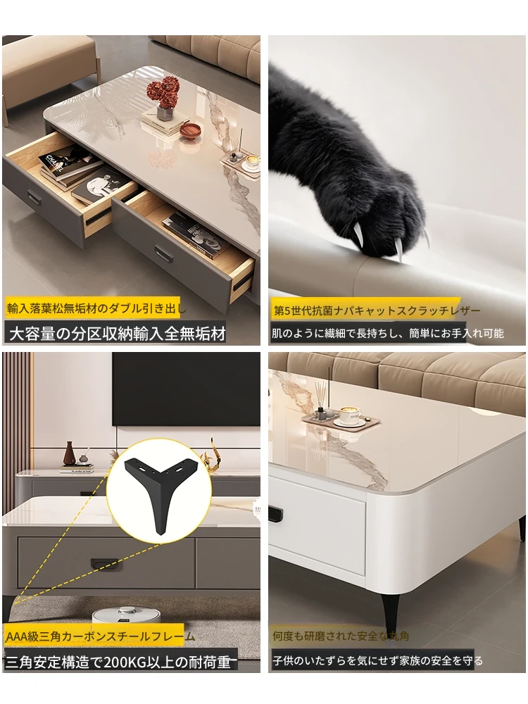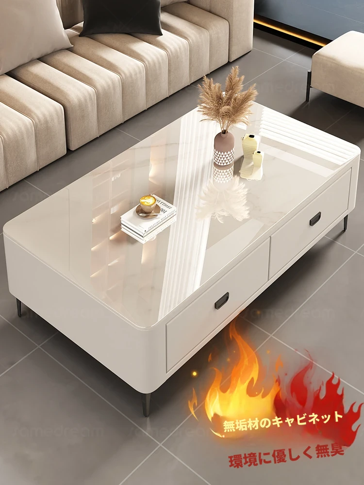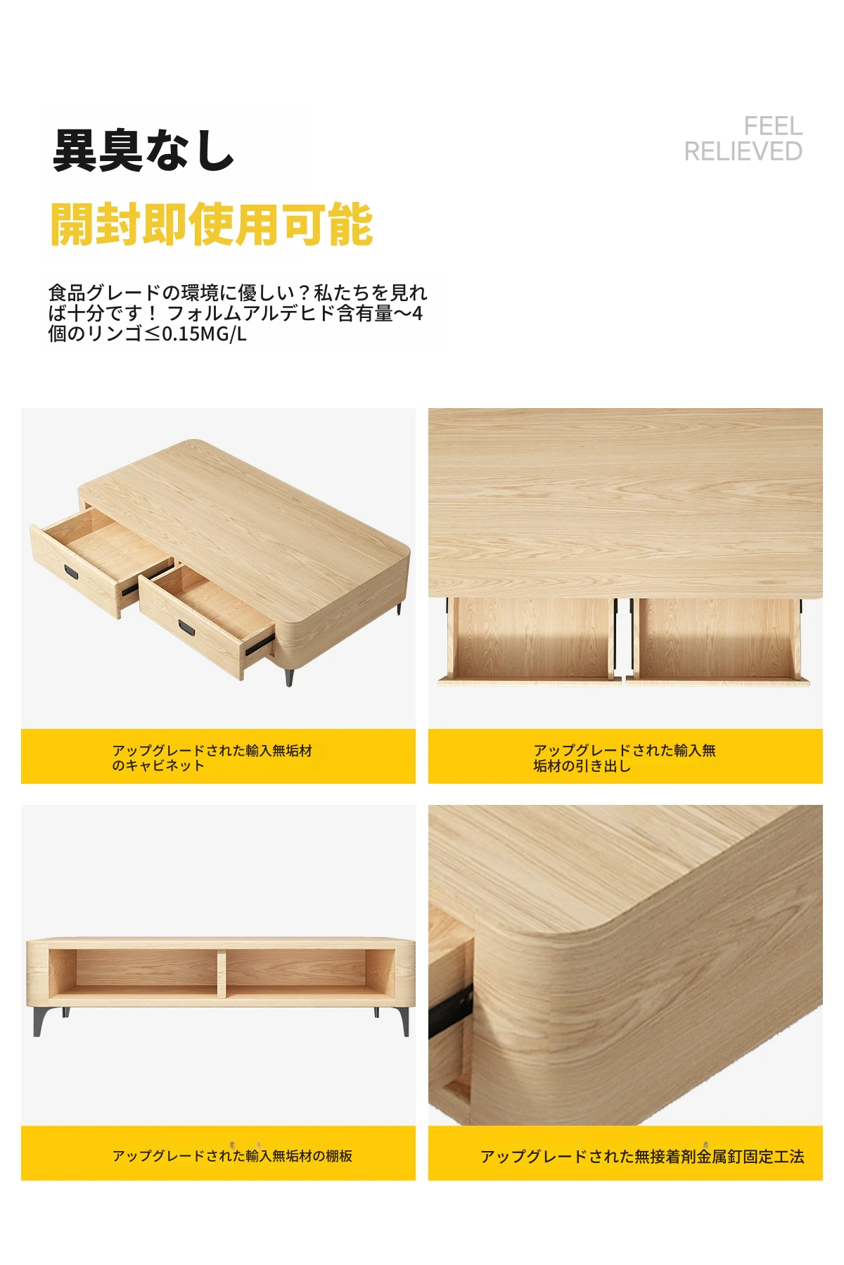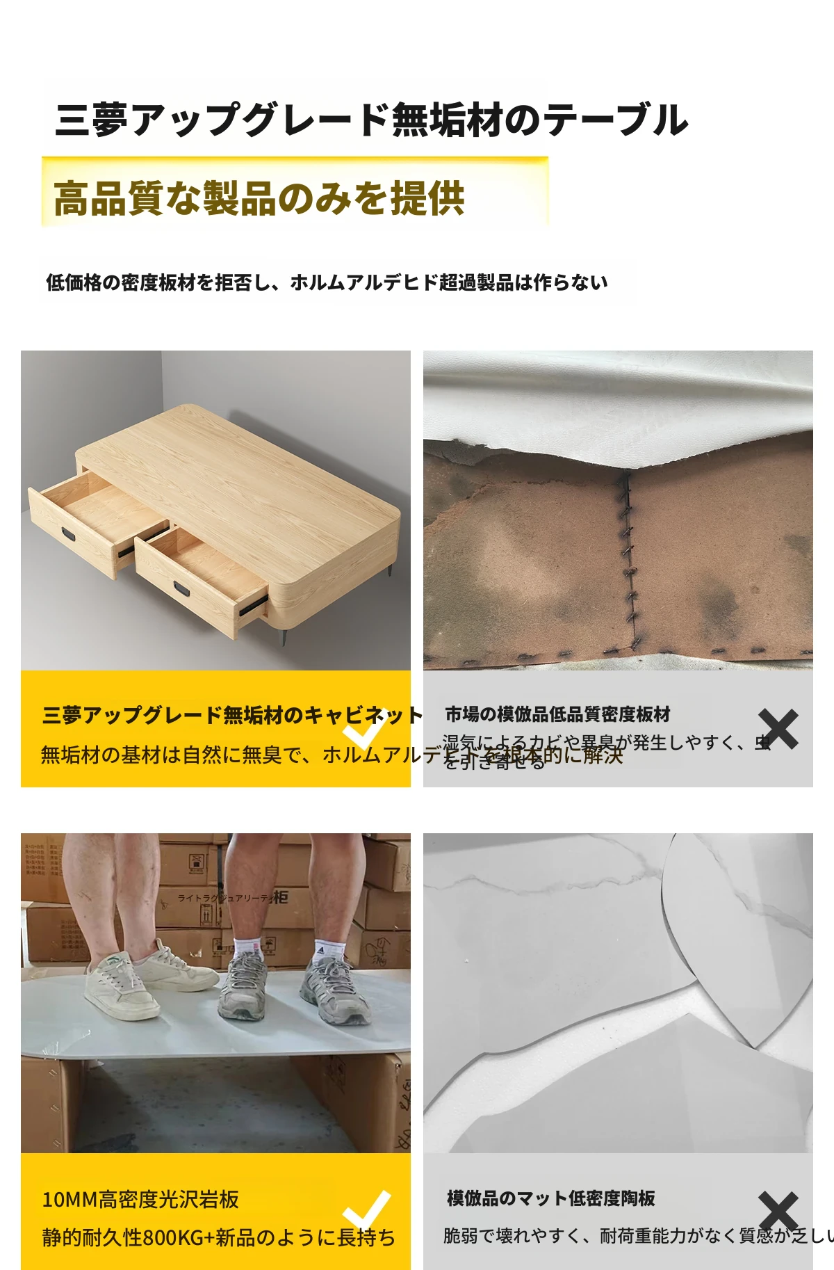 三夢の無垢材ロックボードコーヒーテーブル - 2025年新作!モダンな小型リビングにぴったりのラグジュアリー感あふれるデザイン、テレビ台としても使える多機能性!