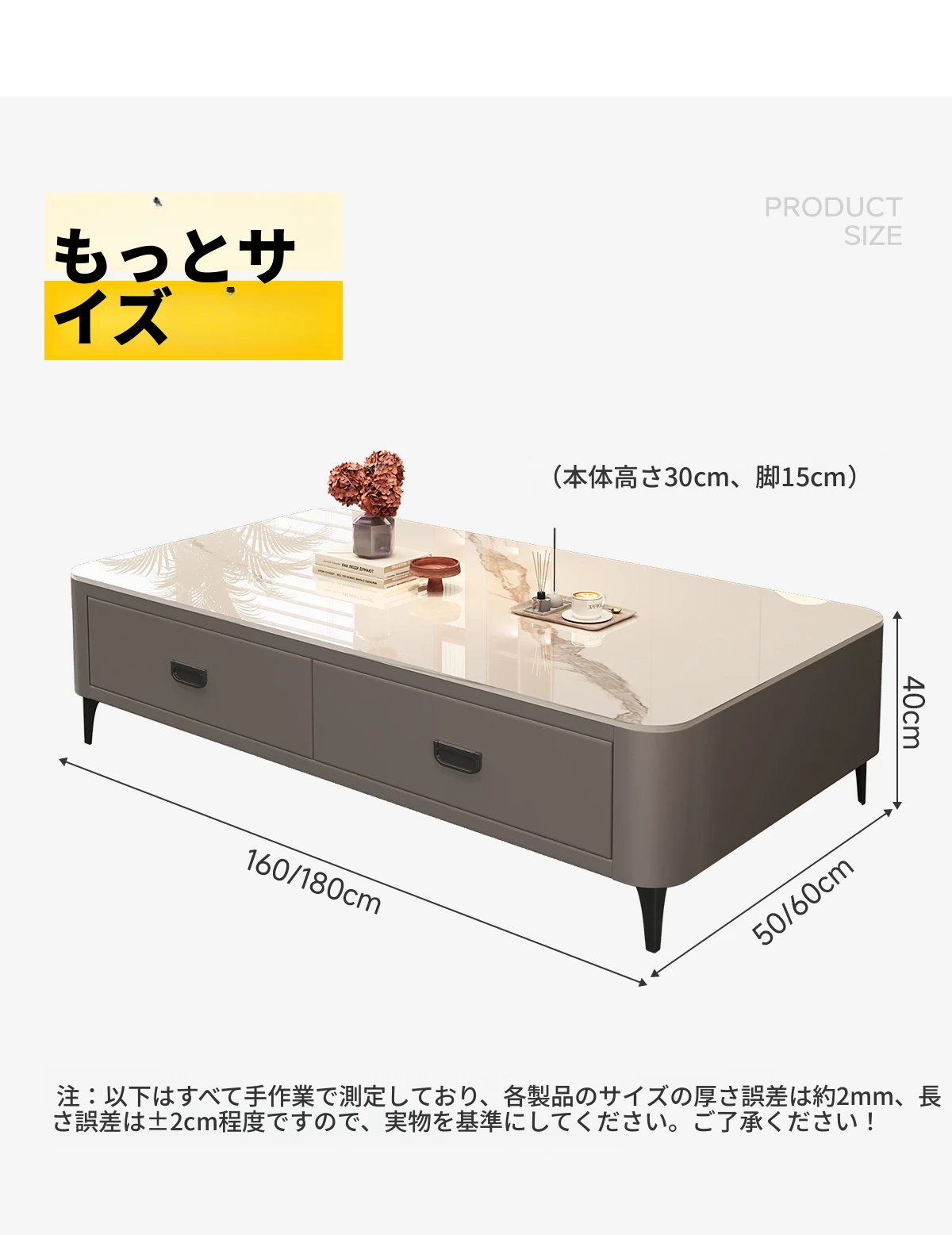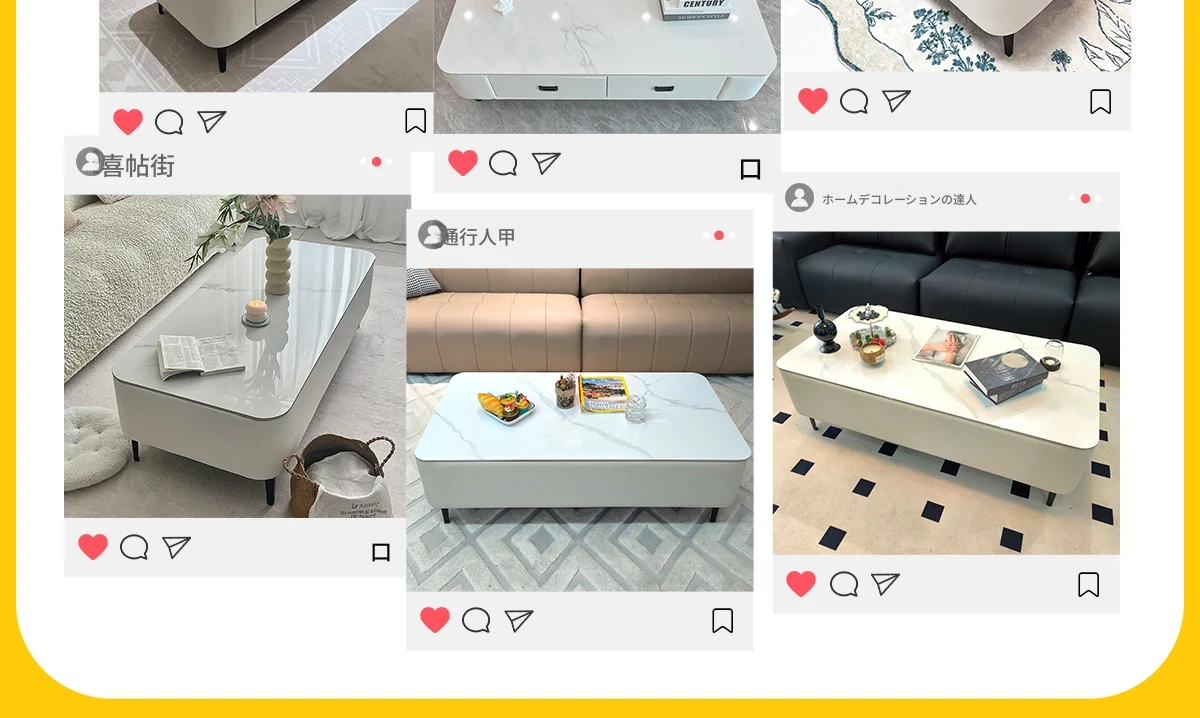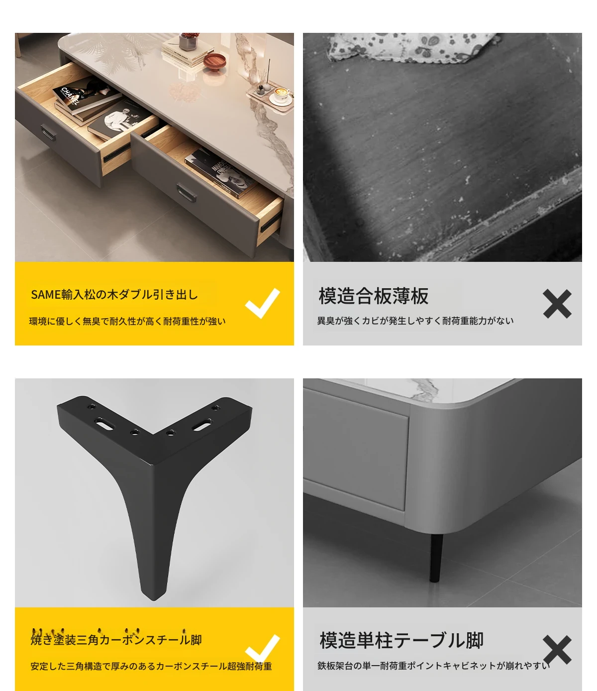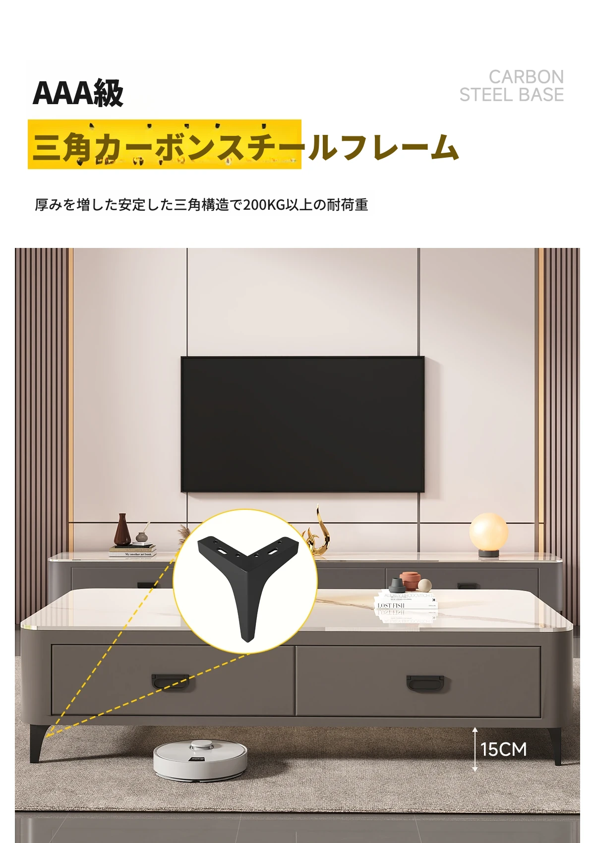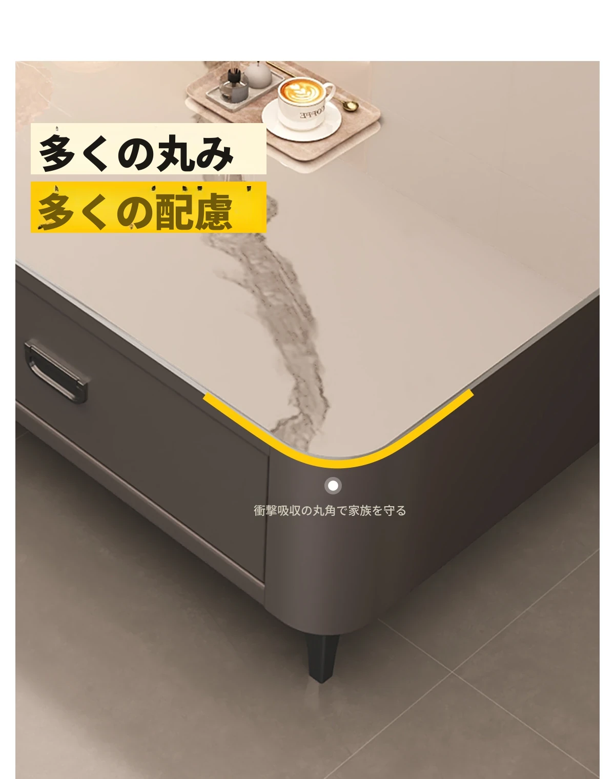 三夢の無垢材ロックボードコーヒーテーブル - 2025年新作!モダンな小型リビングにぴったりのラグジュアリー感あふれるデザイン、テレビ台としても使える多機能性!