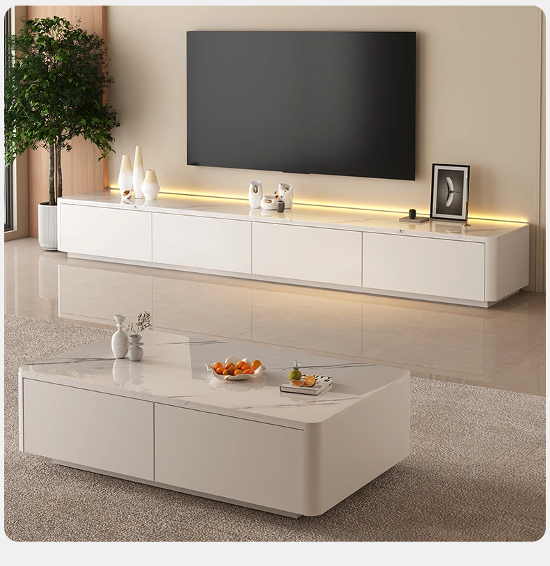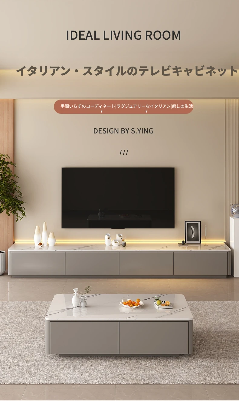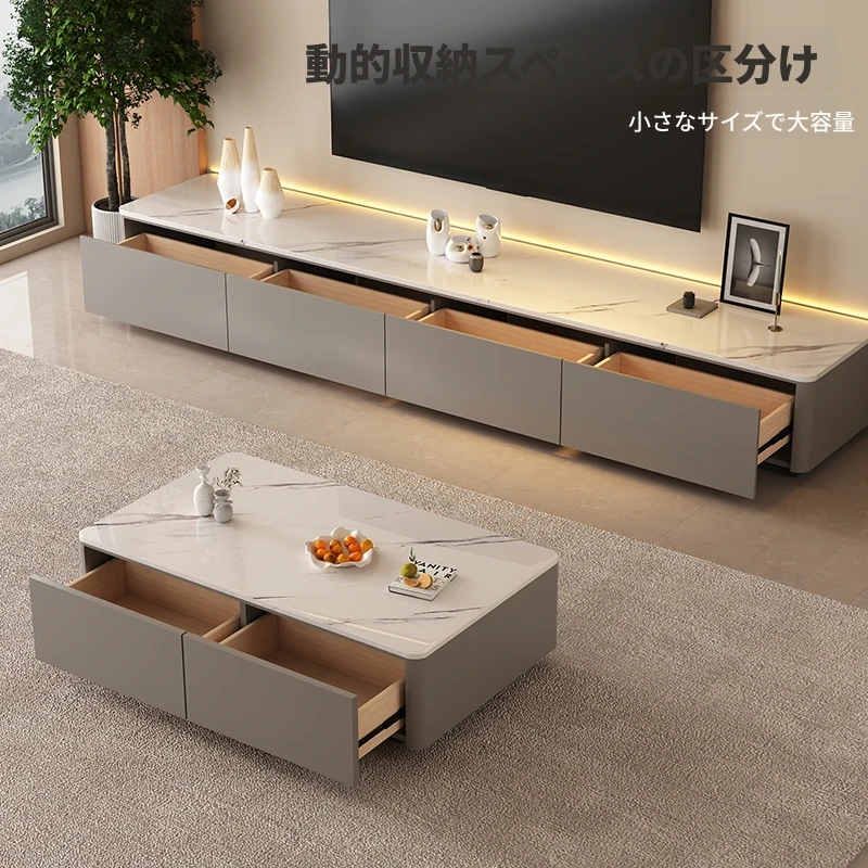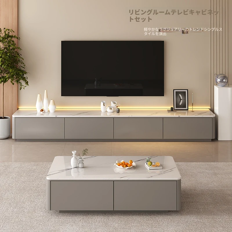2025年新作!三梦岩板テレビキャビネット - おしゃれなリビングにぴったりの省スペース設計!小型住宅にも最適なフロアテレビ台、コーヒーテーブルとしても活躍する多機能テレビボード!
