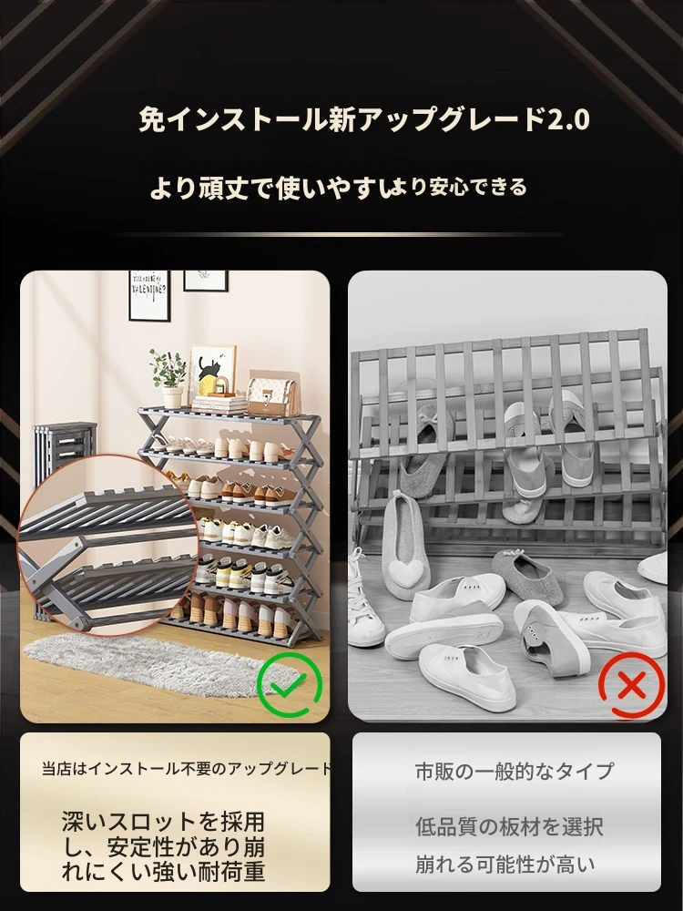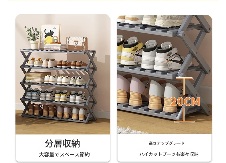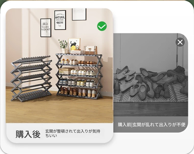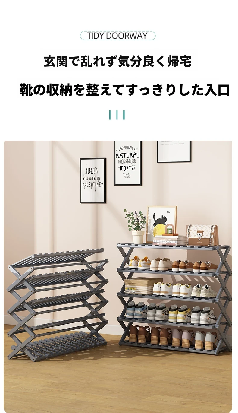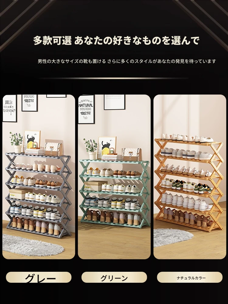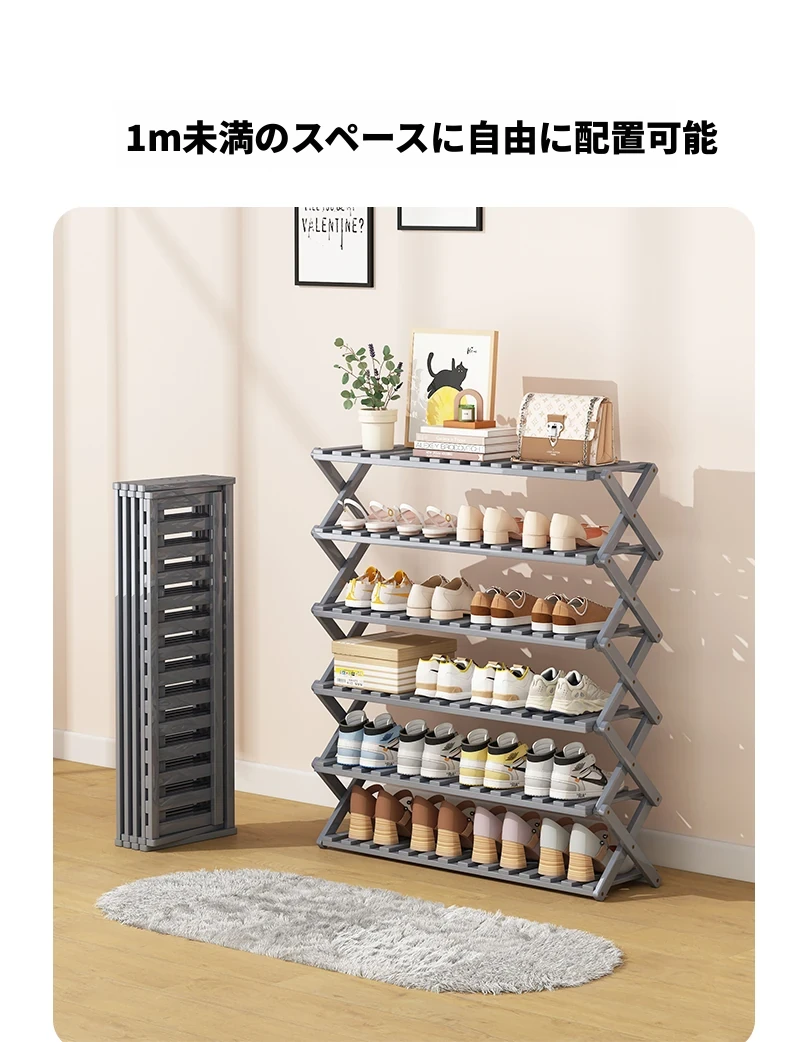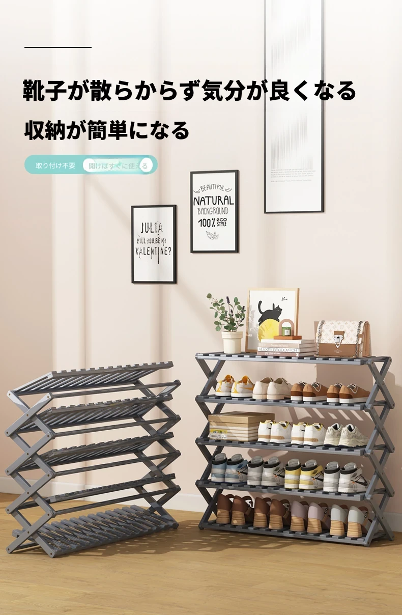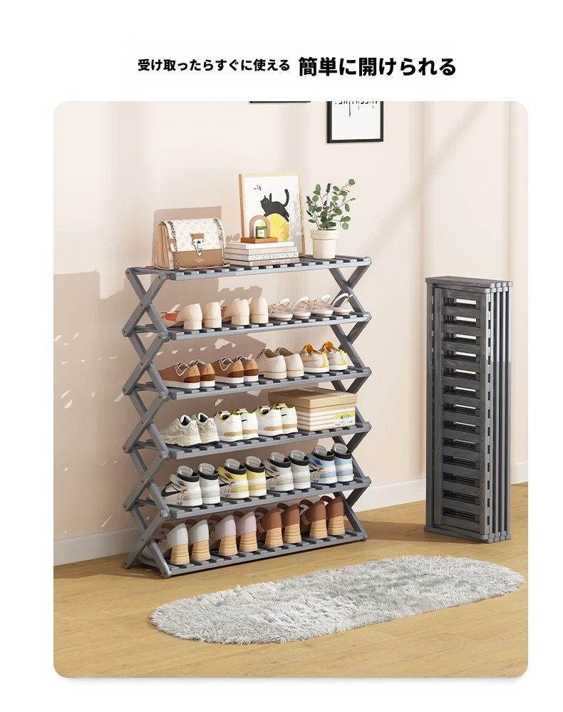 スリムな組み立て不要のシューラック!家庭用・玄関用で多層設計、寮にも最適な新型折りたたみ収納!2025年の注目アイテムです!
