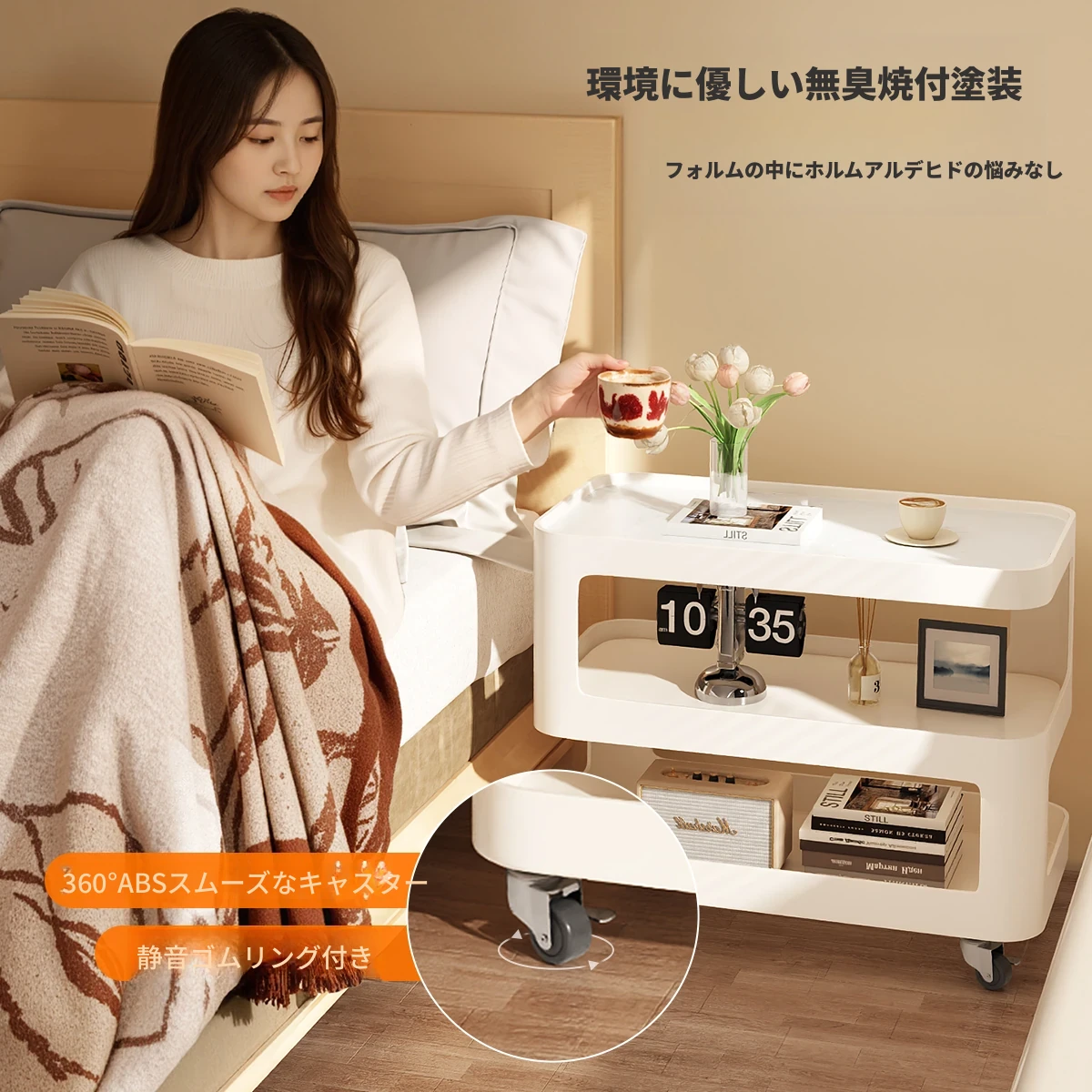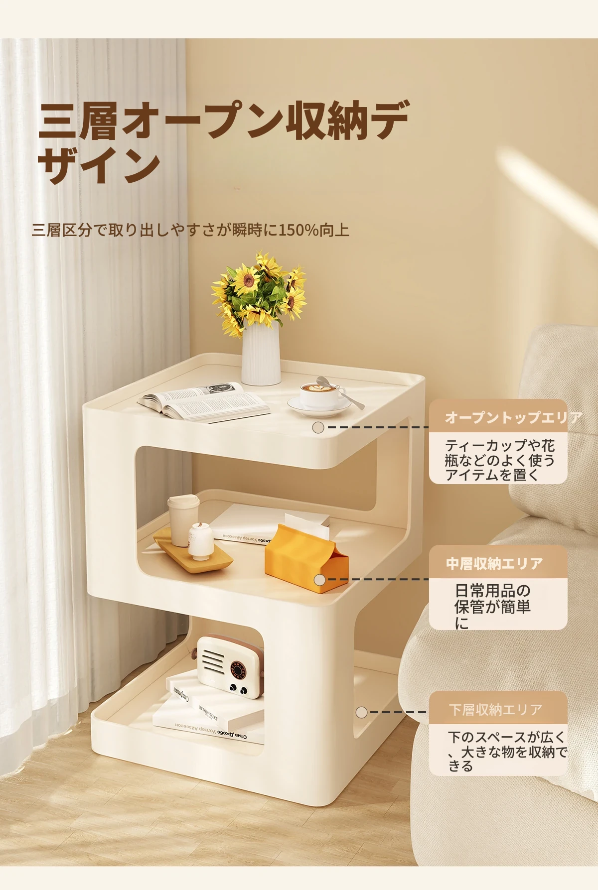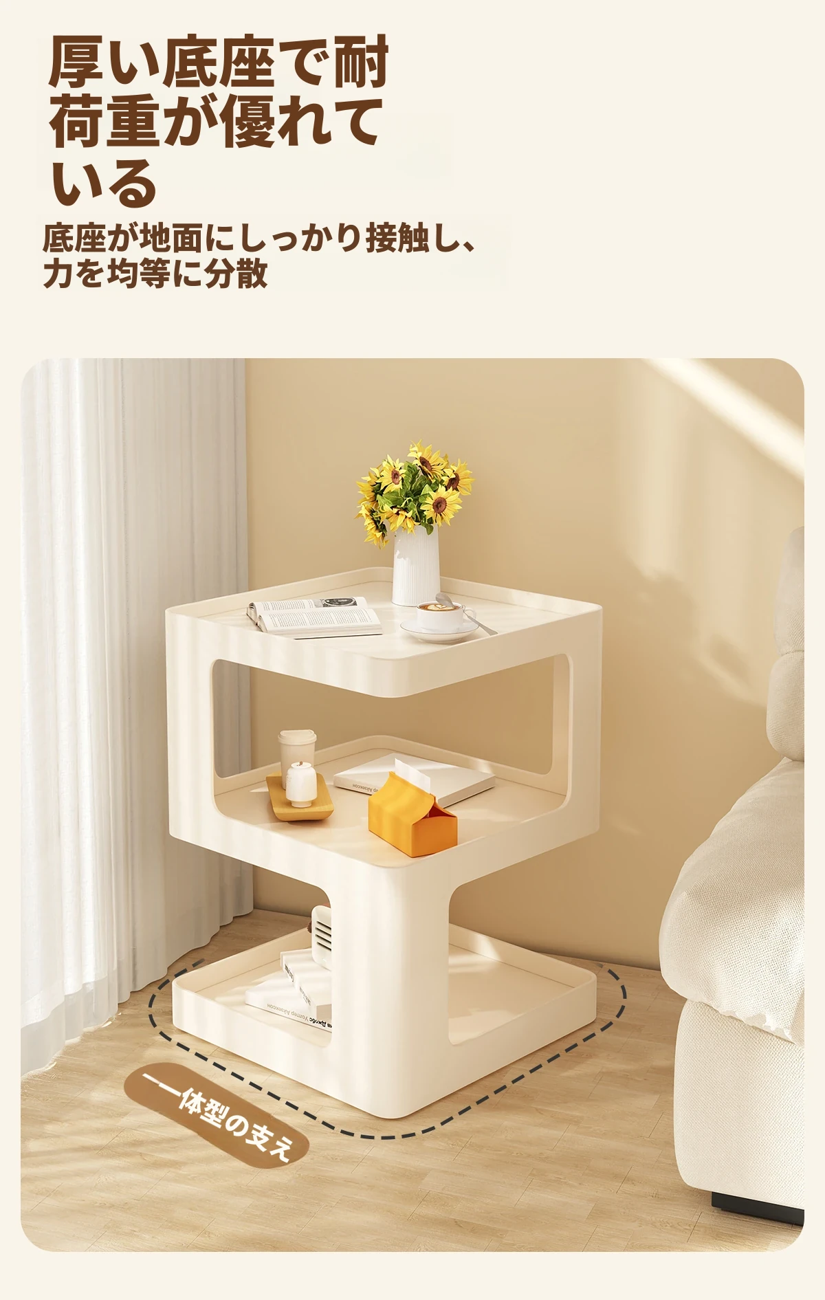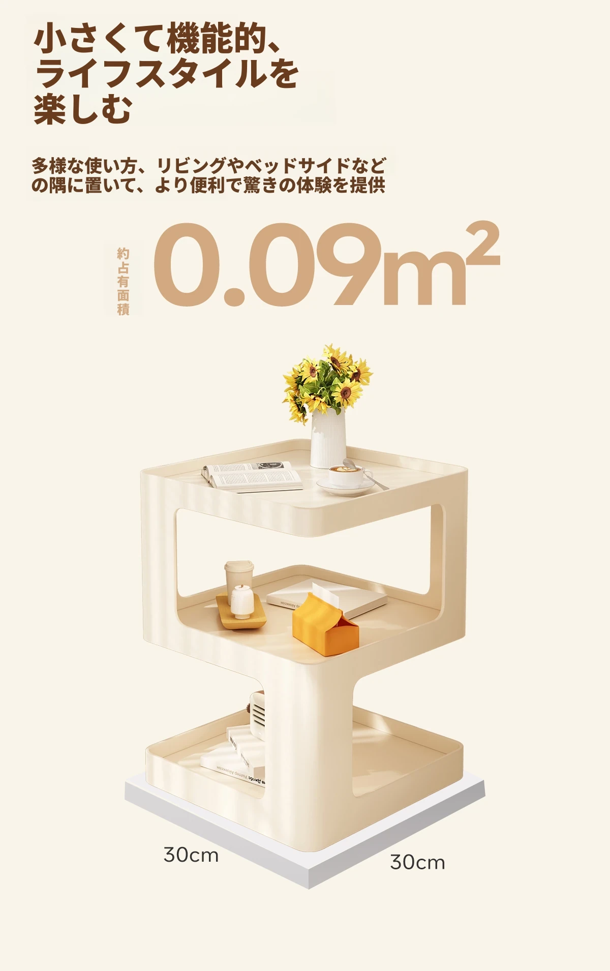 おしゃれなサイドテーブル!移動可能なミニテーブルで、リビングや寝室のインテリアに最適。シンプルなデザインでバルコニーやベッドサイドにもぴったり!収納スペースも充実しています。