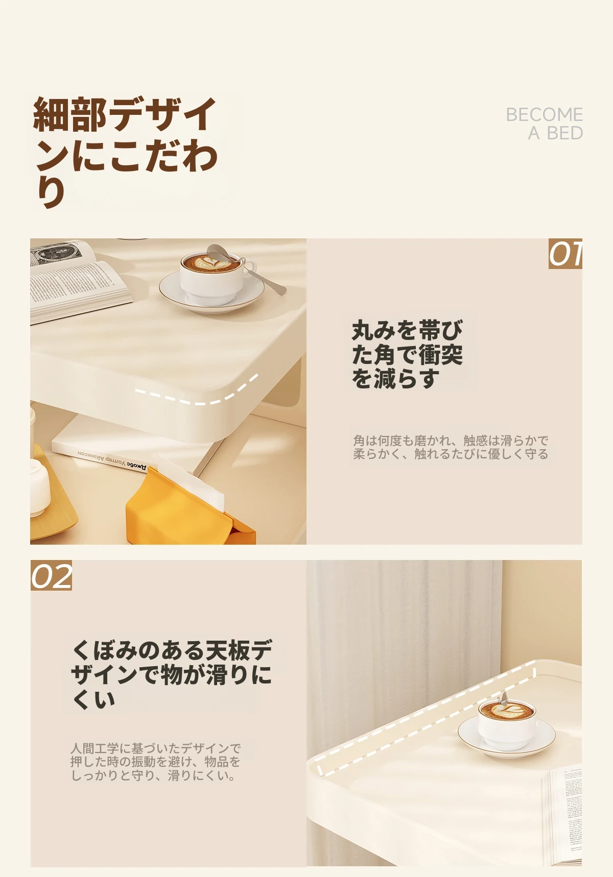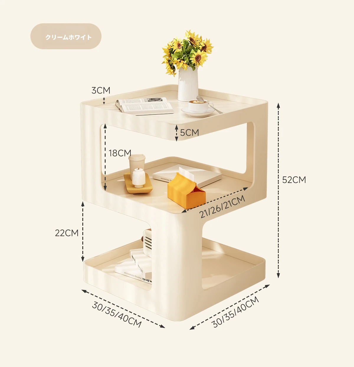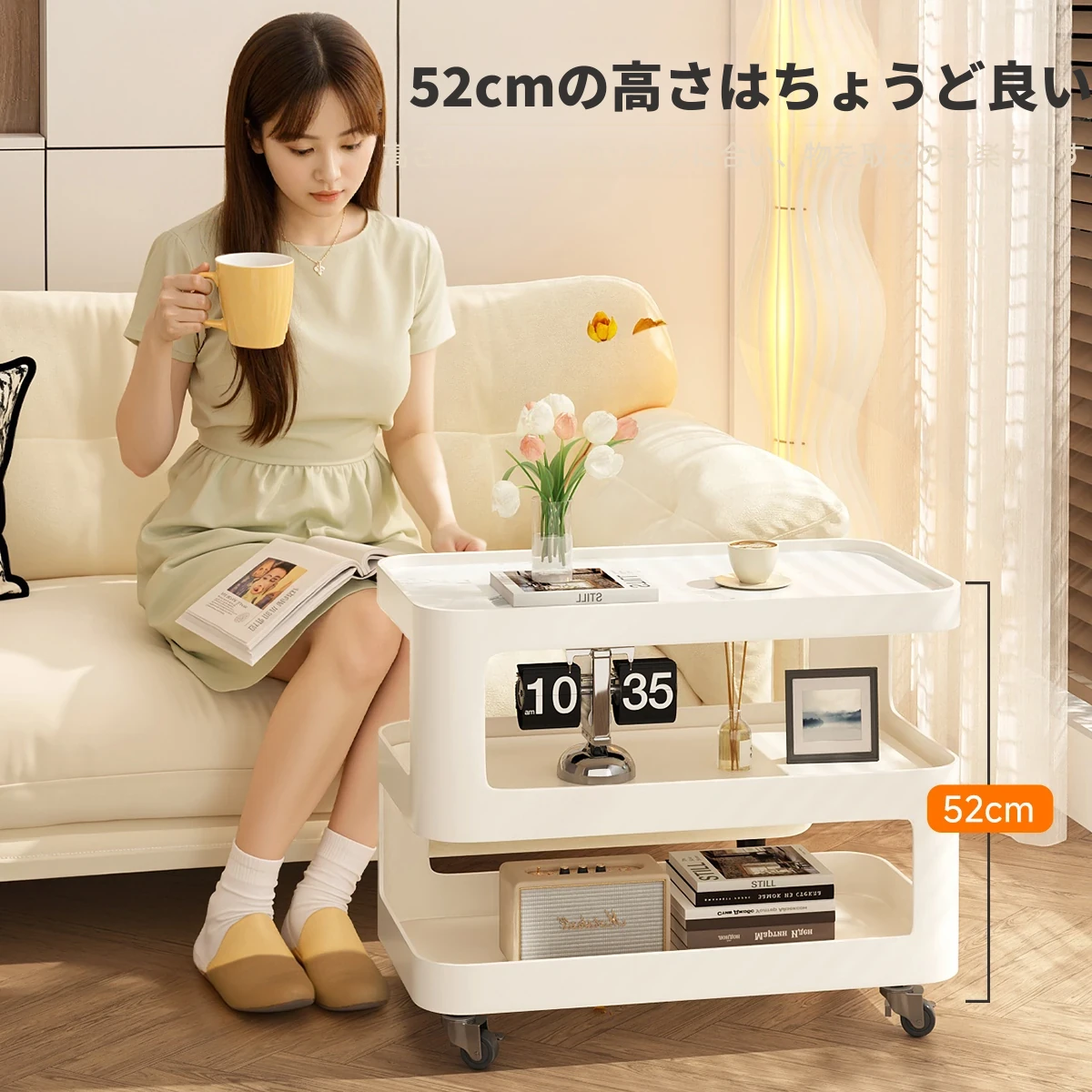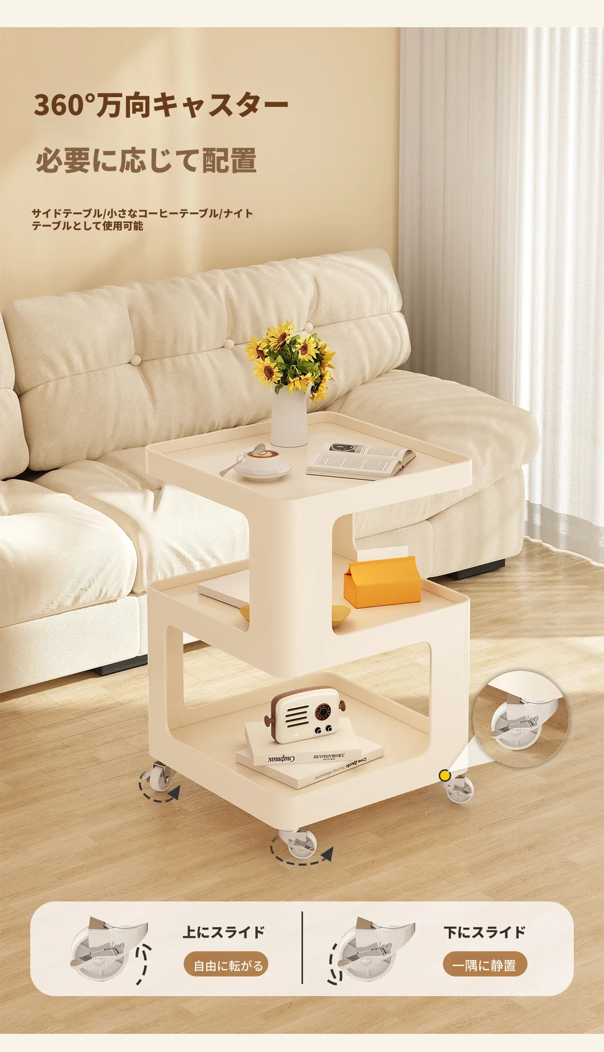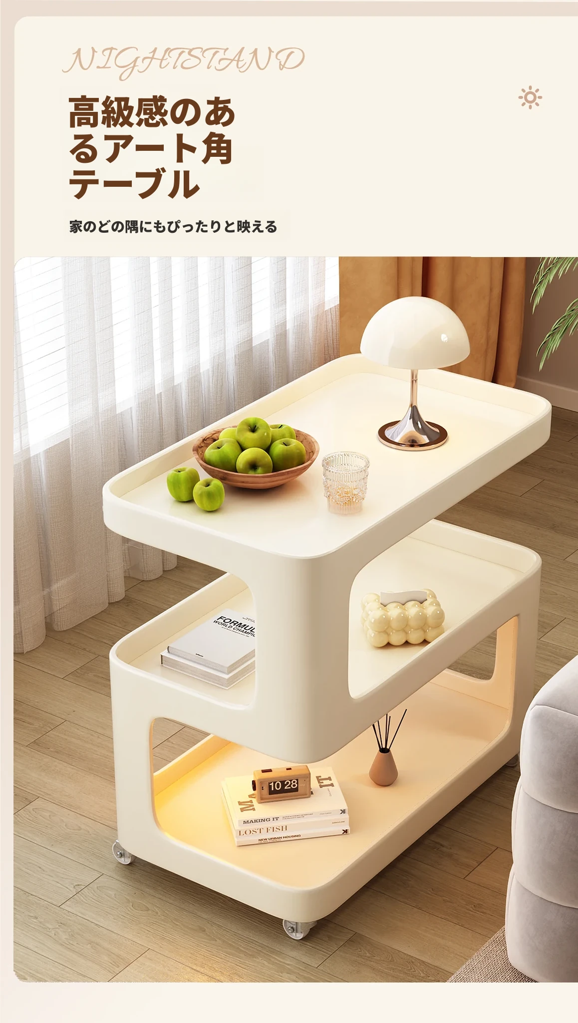 おしゃれなサイドテーブル!移動可能なミニテーブルで、リビングや寝室のインテリアに最適。シンプルなデザインでバルコニーやベッドサイドにもぴったり!収納スペースも充実しています。