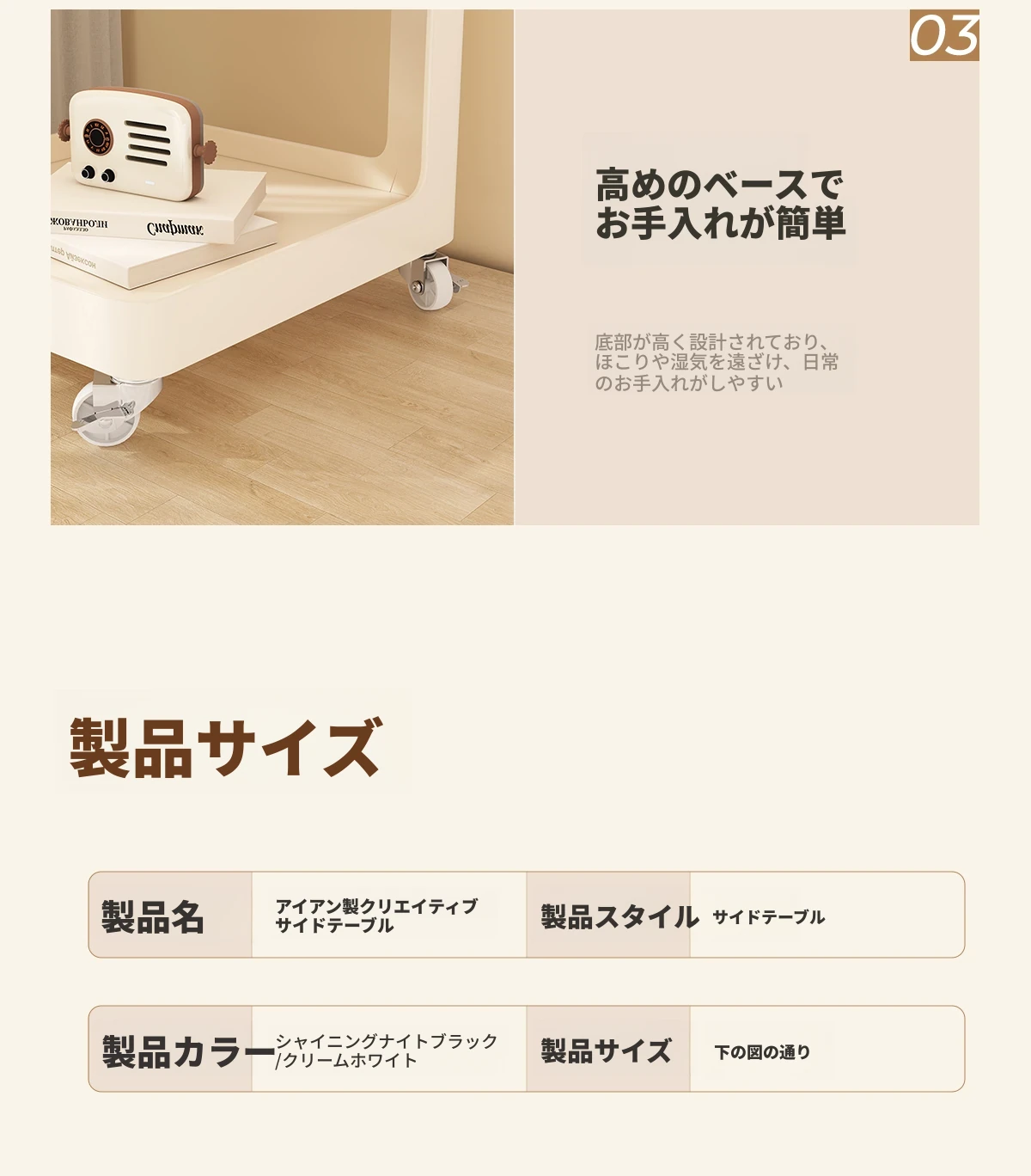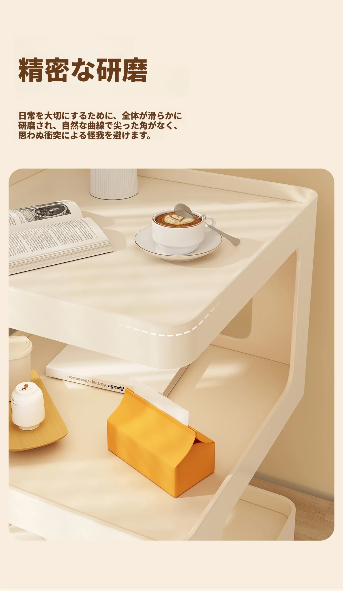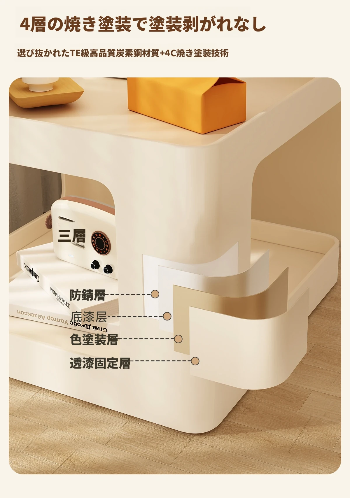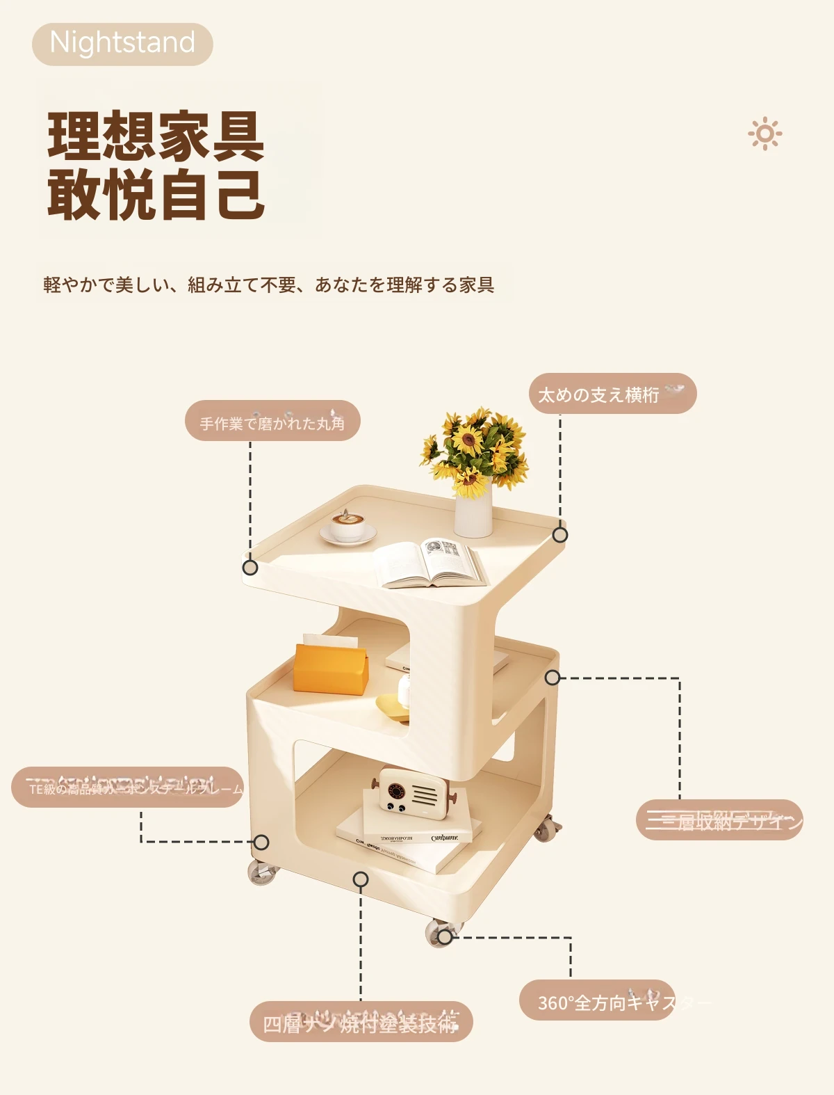 おしゃれなサイドテーブル!移動可能なミニテーブルで、リビングや寝室のインテリアに最適。シンプルなデザインでバルコニーやベッドサイドにもぴったり!収納スペースも充実しています。