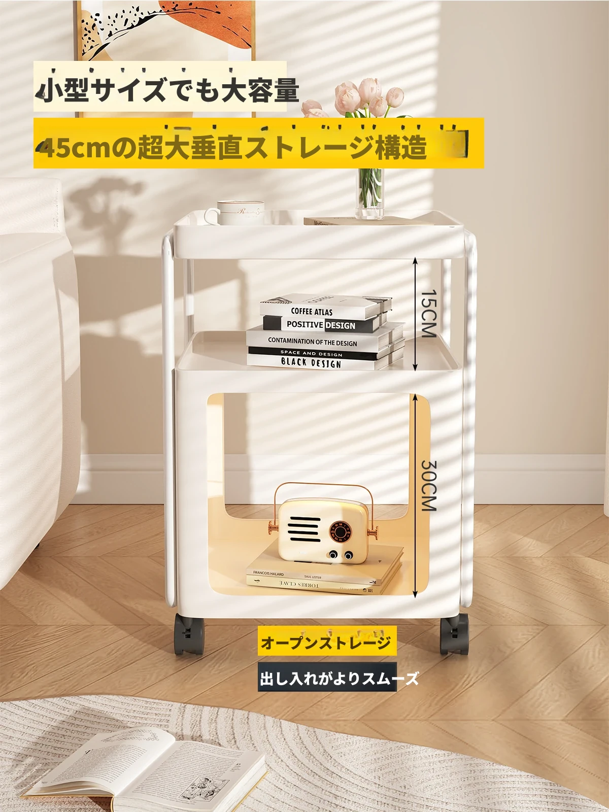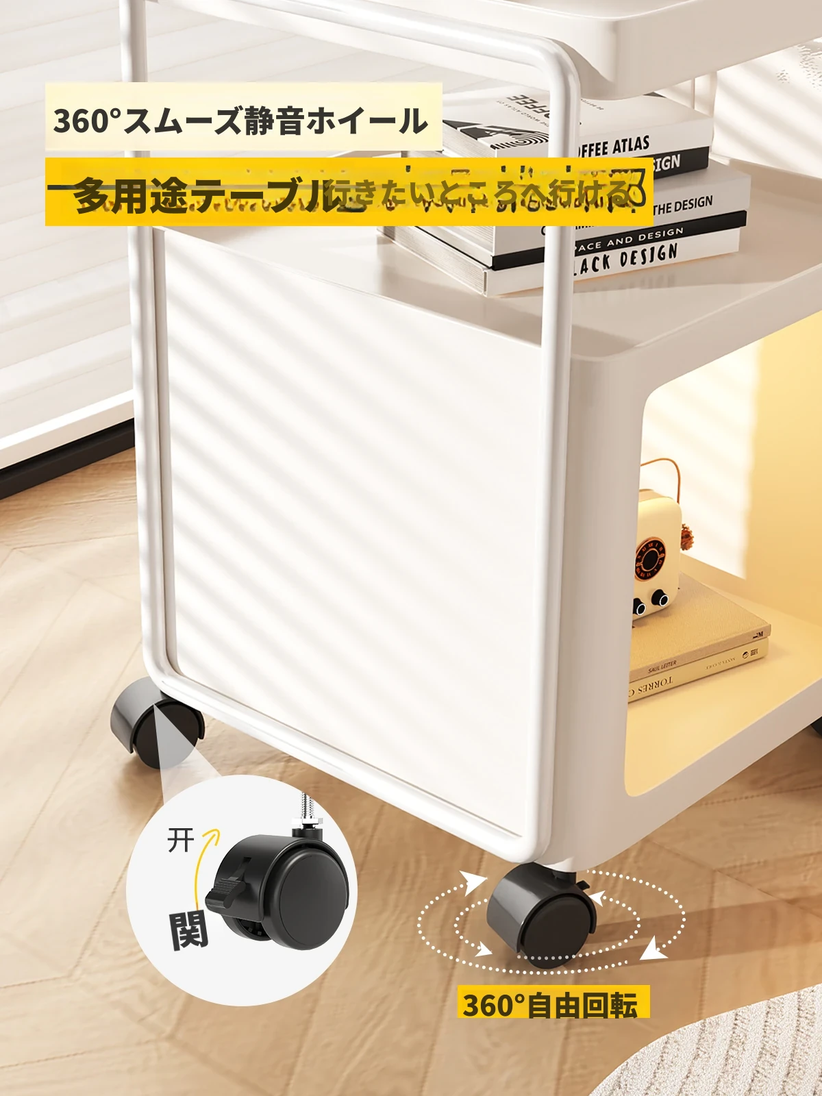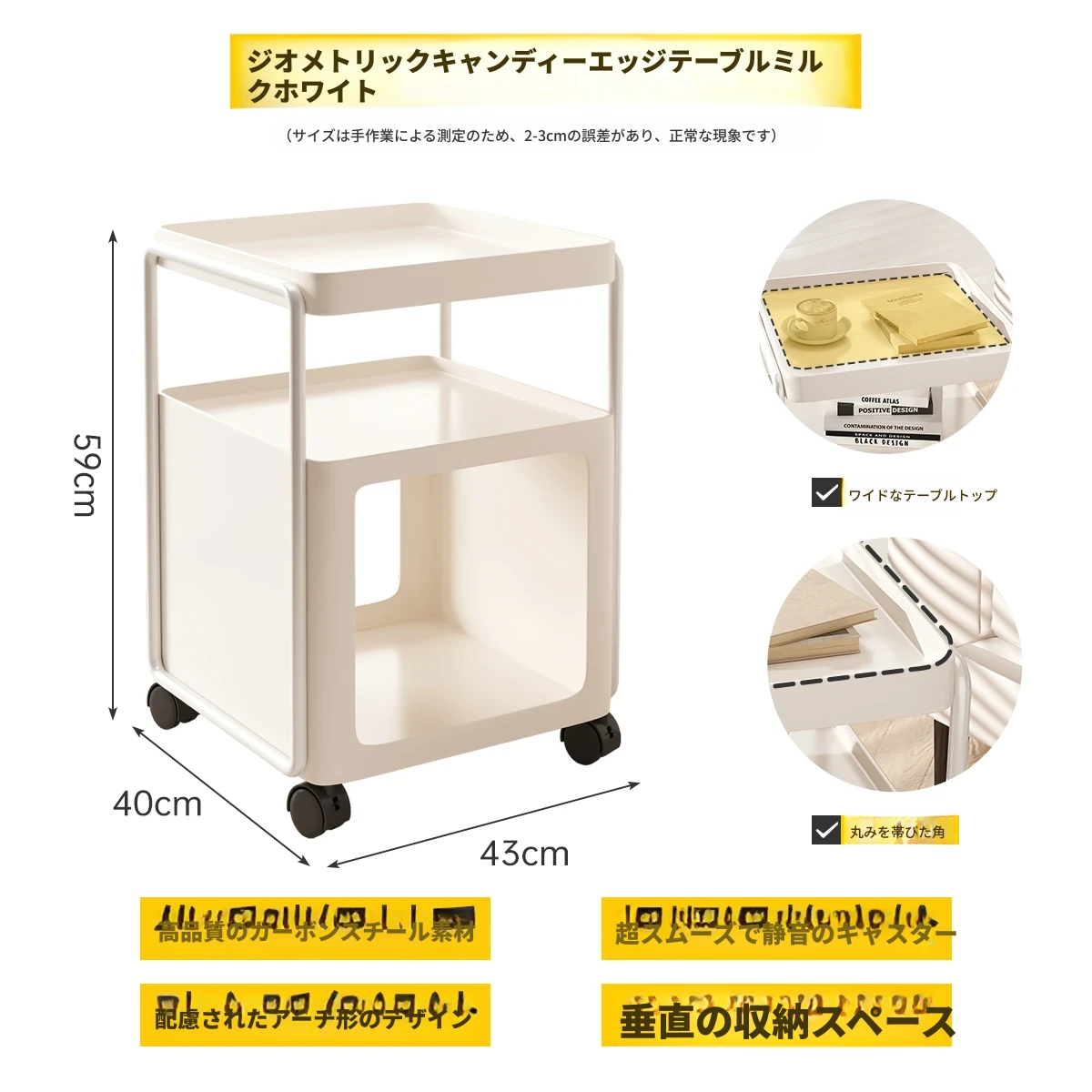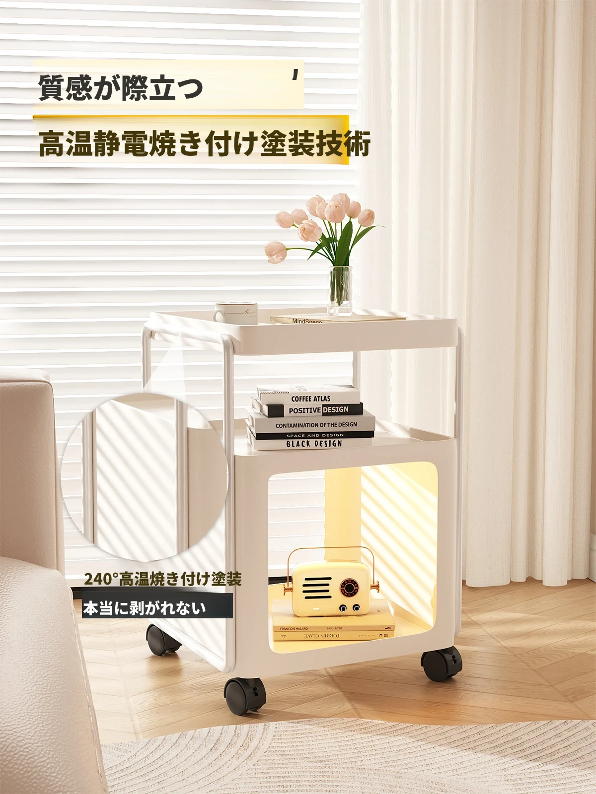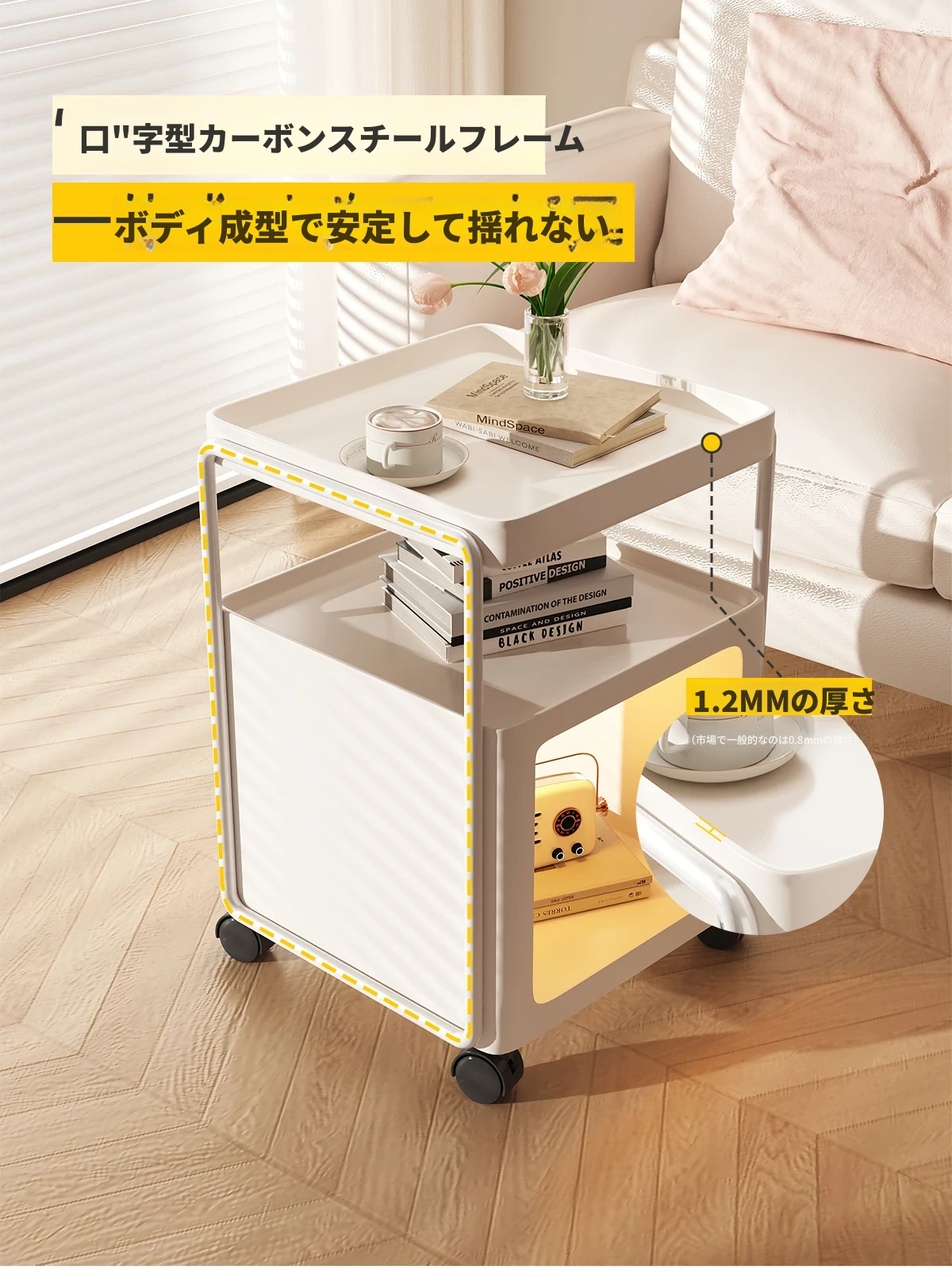 三夢移動式クリーム風サイドテーブル 鉄製ミニキャリーカート リビングサイドキャビネット ベッドサイド収納ラック シンプルでスタイリッシュなデザイン!お部屋をおしゃれに演出します。