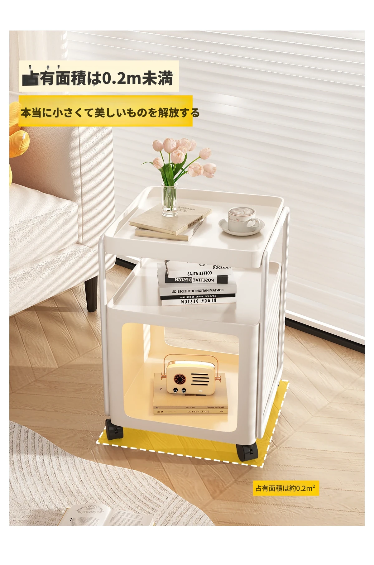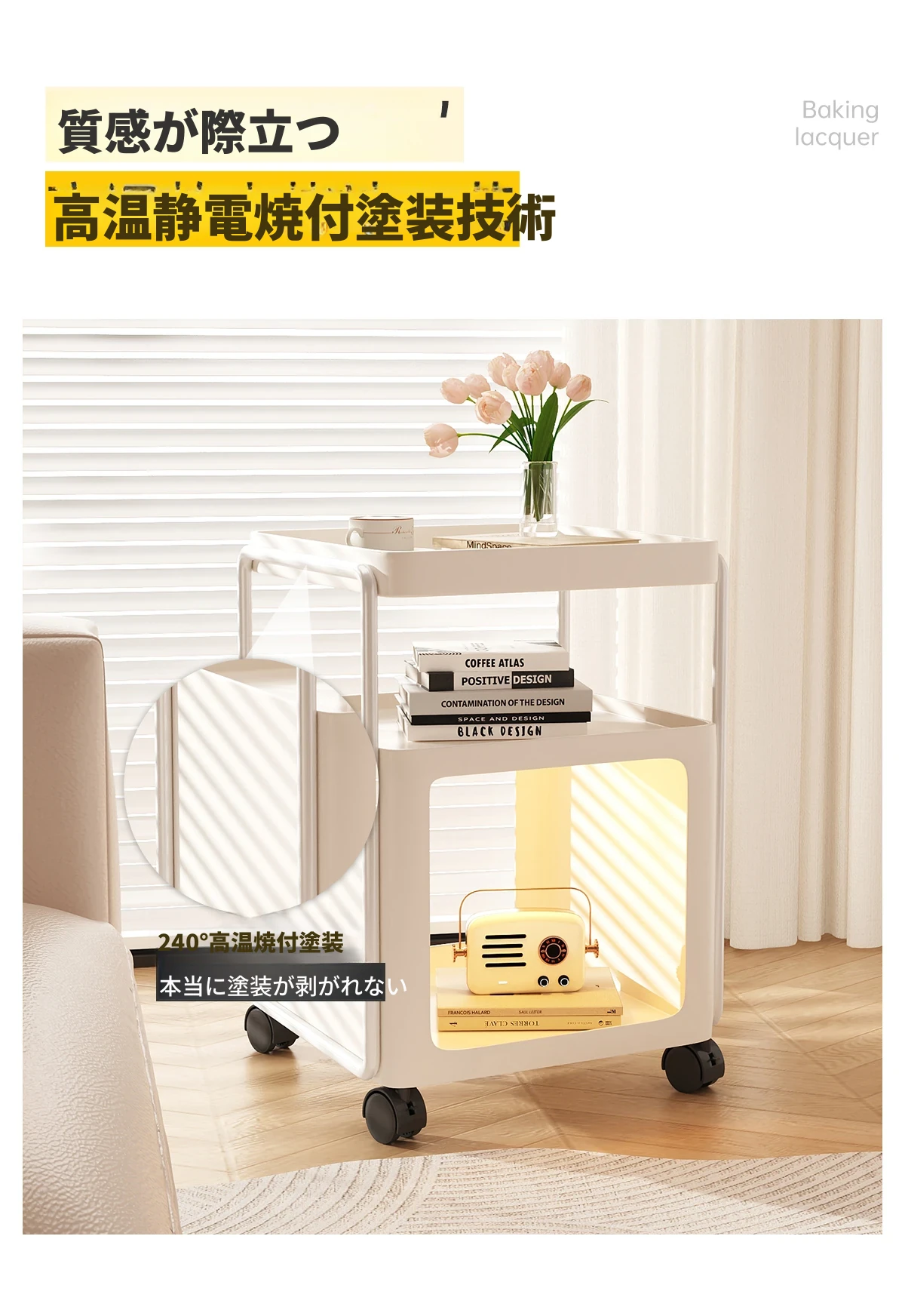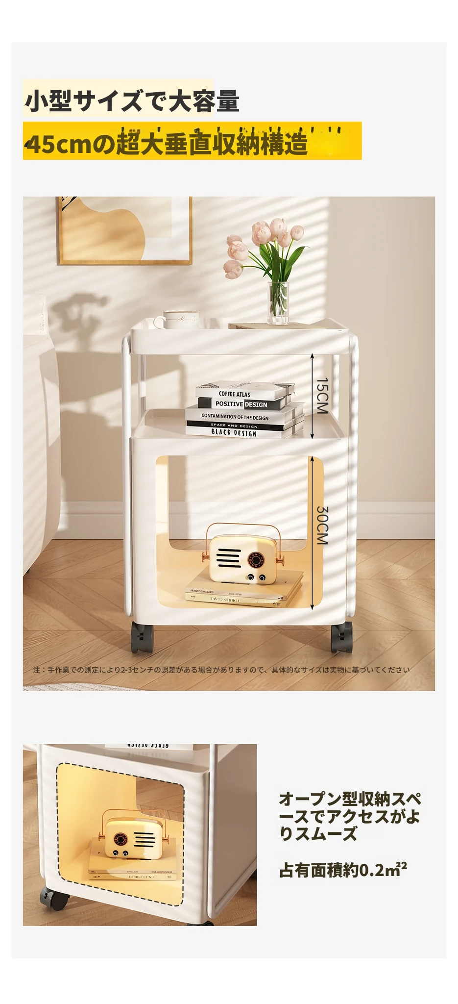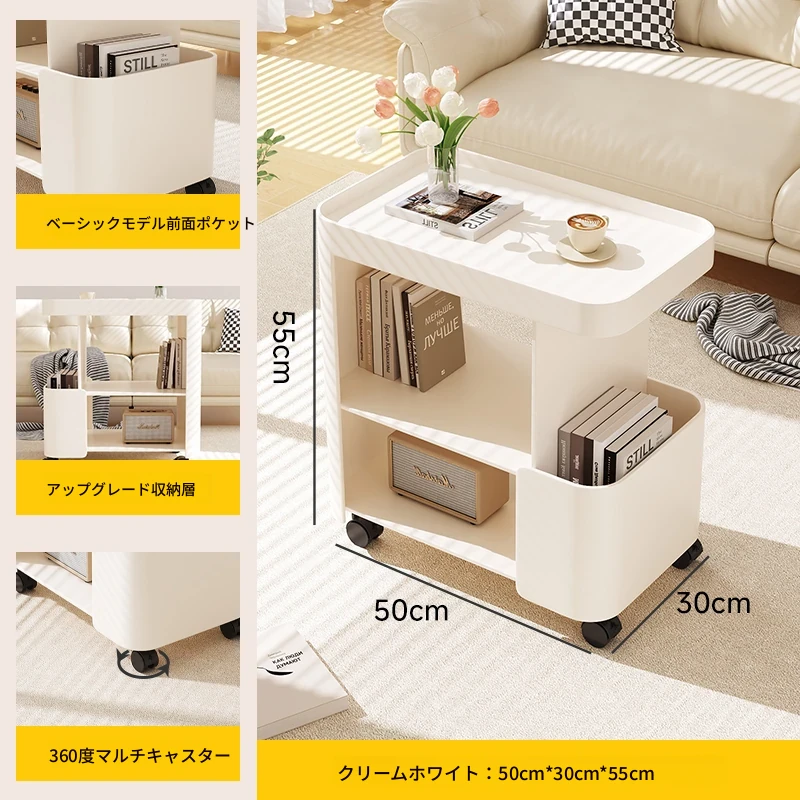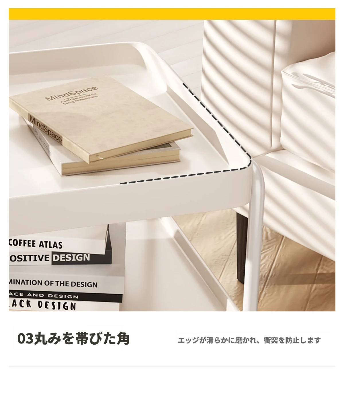 三夢移動式クリーム風サイドテーブル 鉄製ミニキャリーカート リビングサイドキャビネット ベッドサイド収納ラック シンプルでスタイリッシュなデザイン!お部屋をおしゃれに演出します。