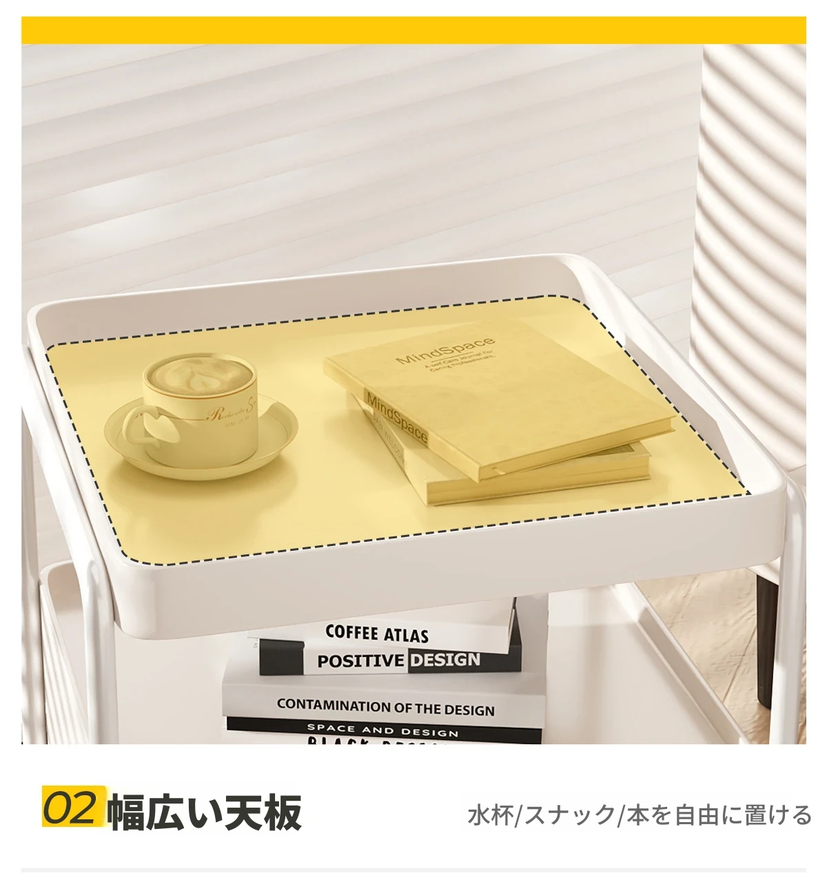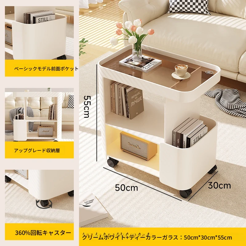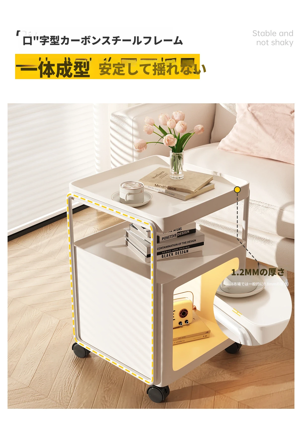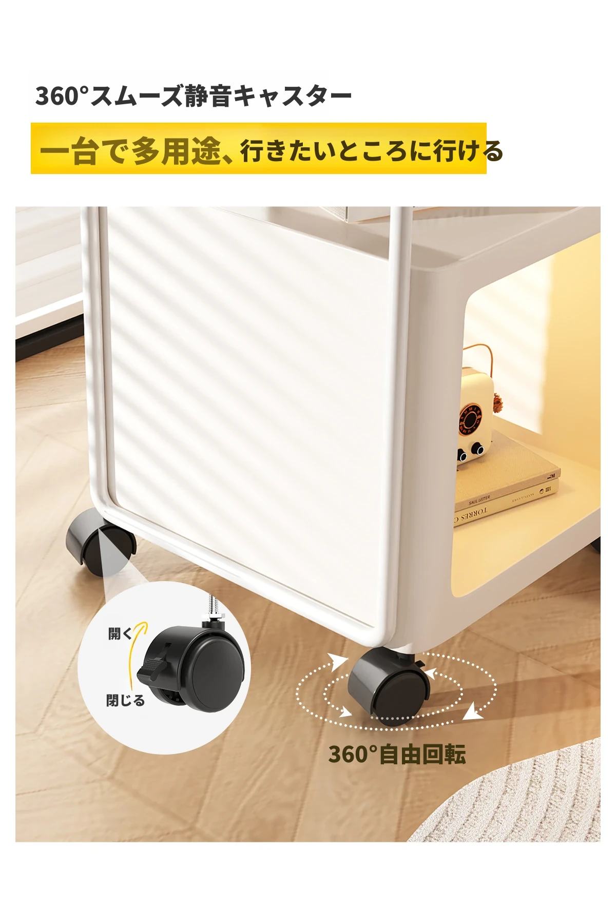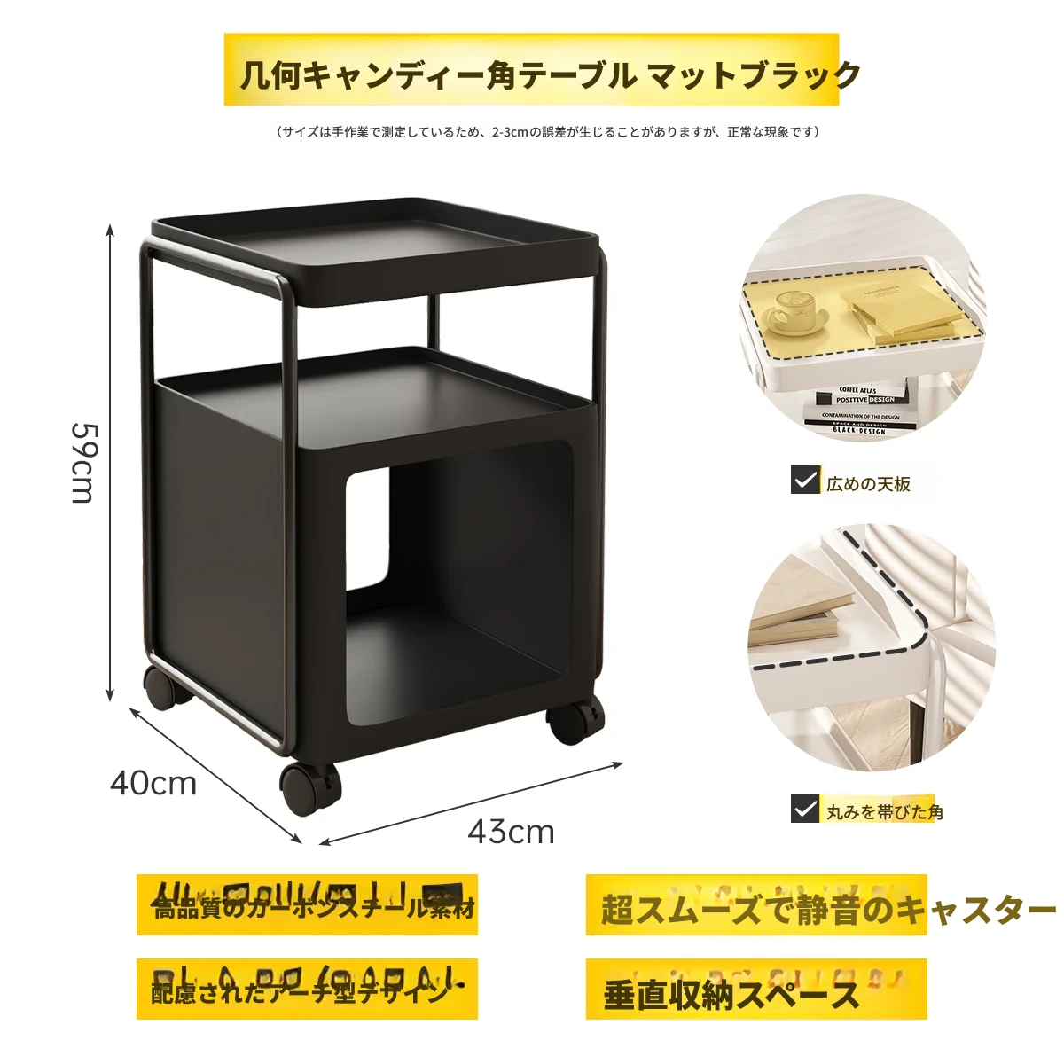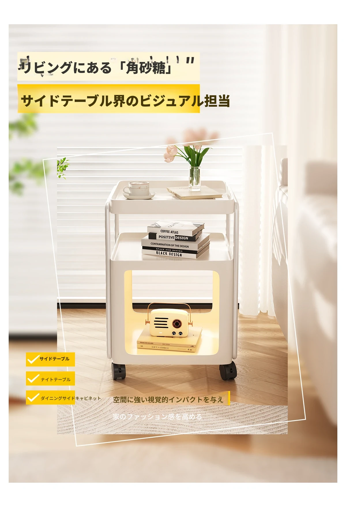 三夢移動式クリーム風サイドテーブル 鉄製ミニキャリーカート リビングサイドキャビネット ベッドサイド収納ラック シンプルでスタイリッシュなデザイン!お部屋をおしゃれに演出します。