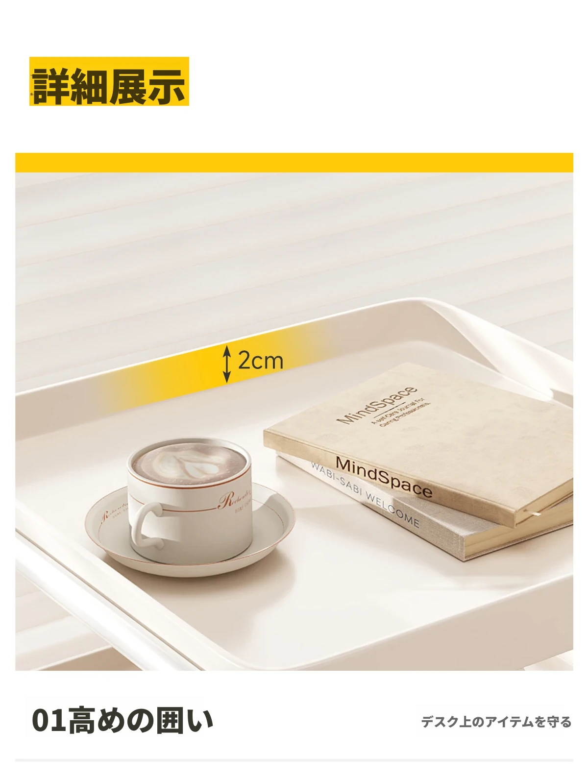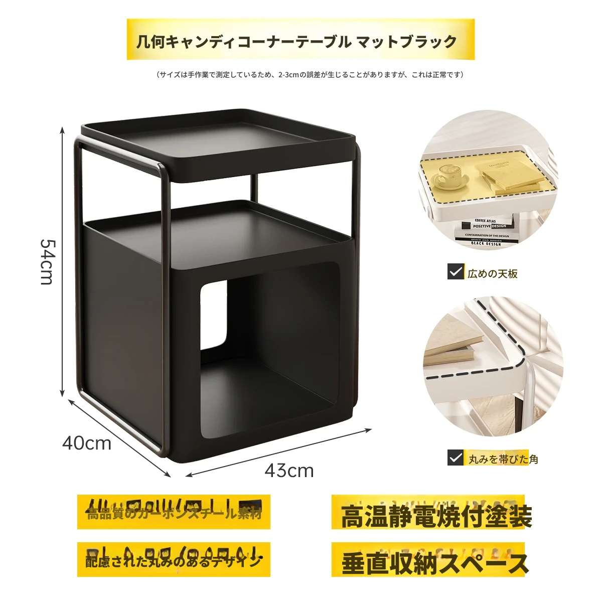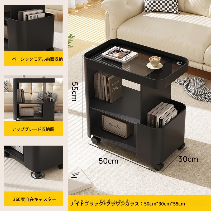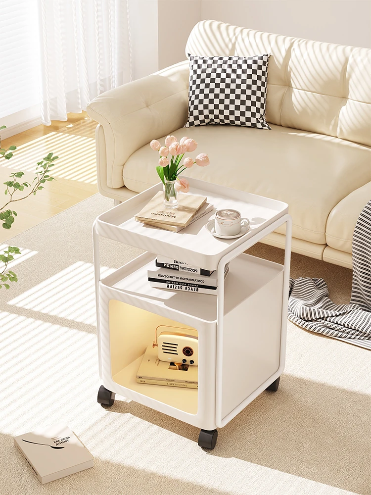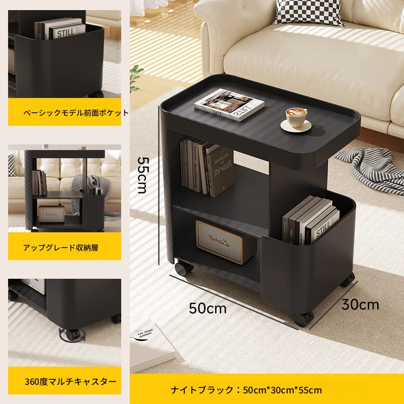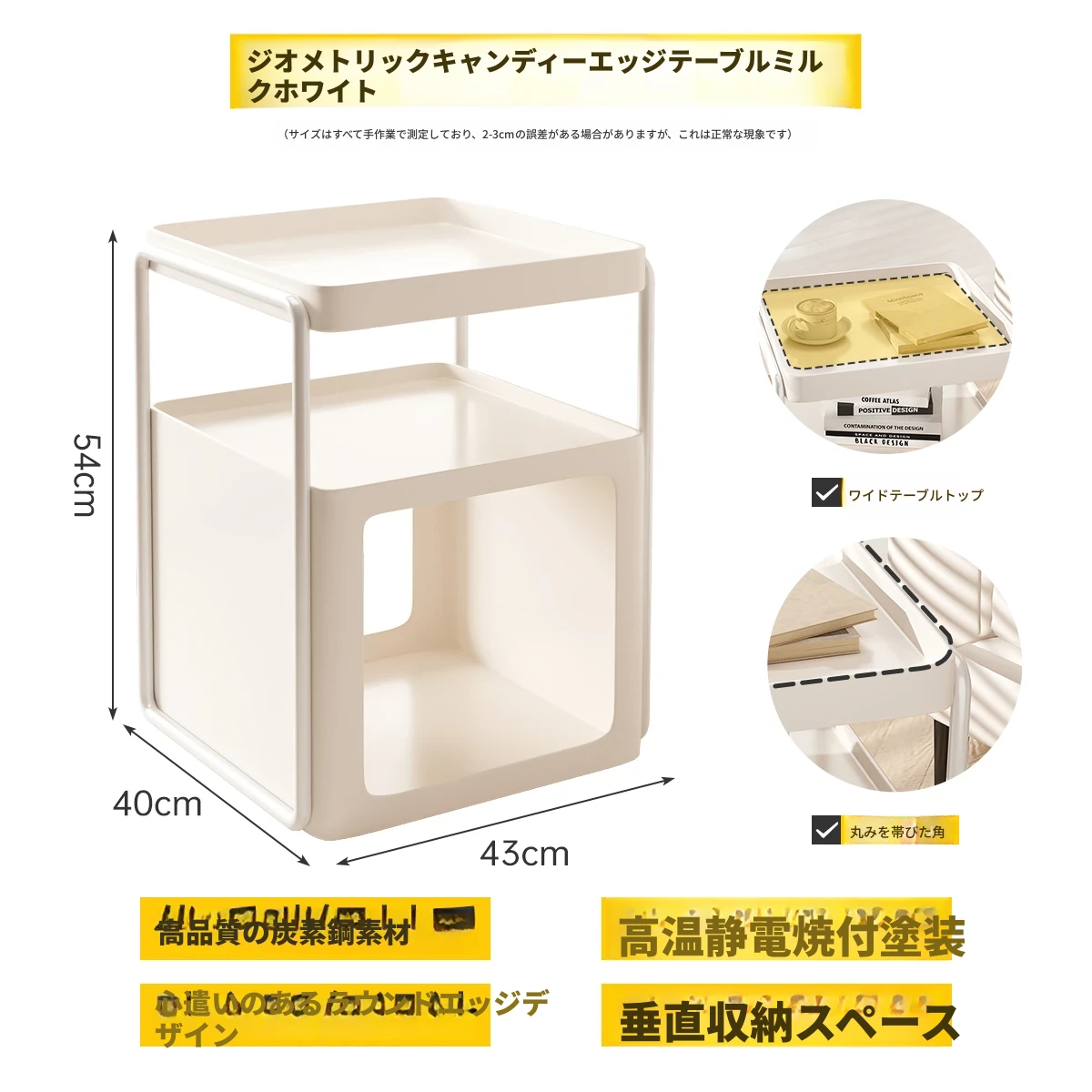 三夢移動式クリーム風サイドテーブル 鉄製ミニキャリーカート リビングサイドキャビネット ベッドサイド収納ラック シンプルでスタイリッシュなデザイン!お部屋をおしゃれに演出します。
