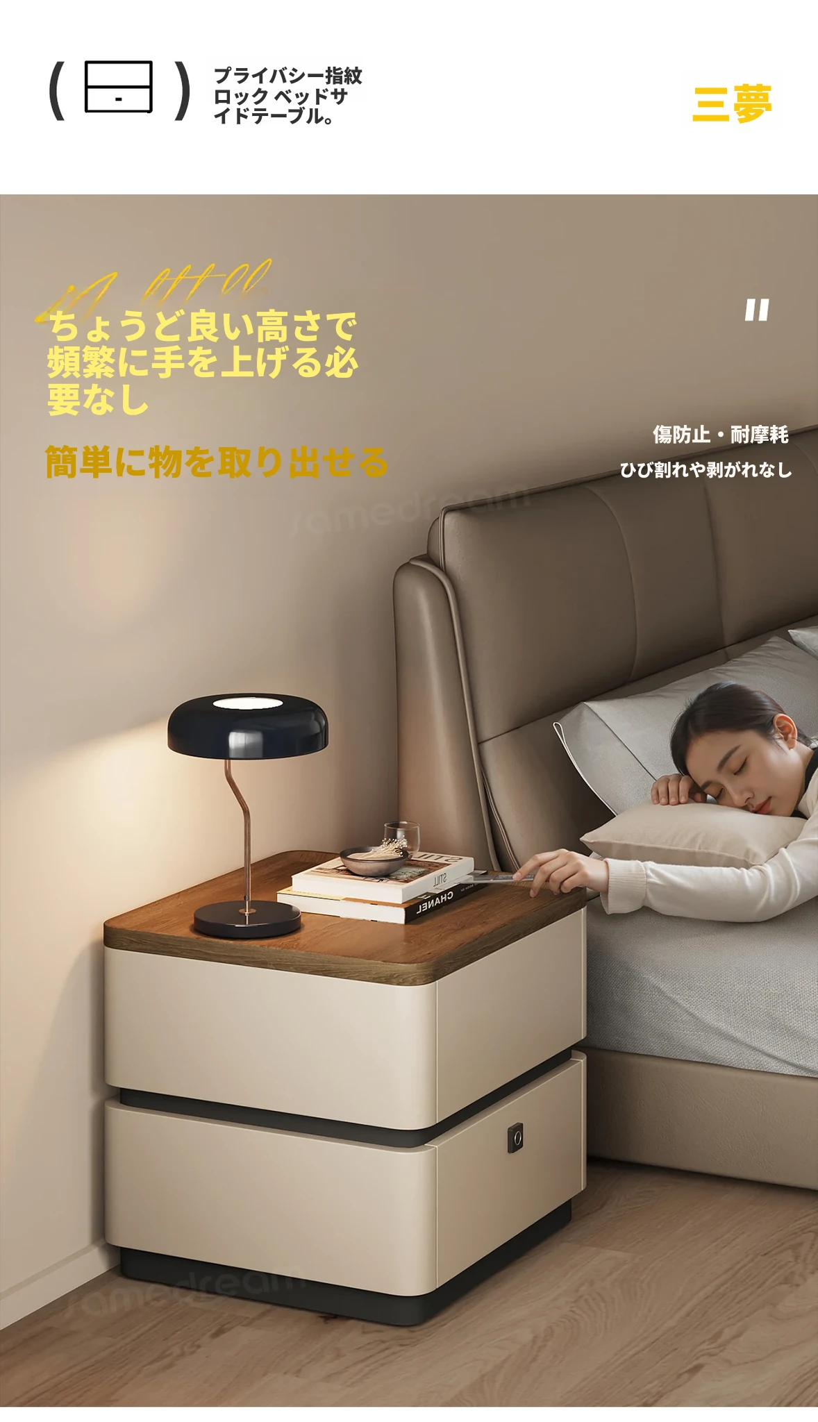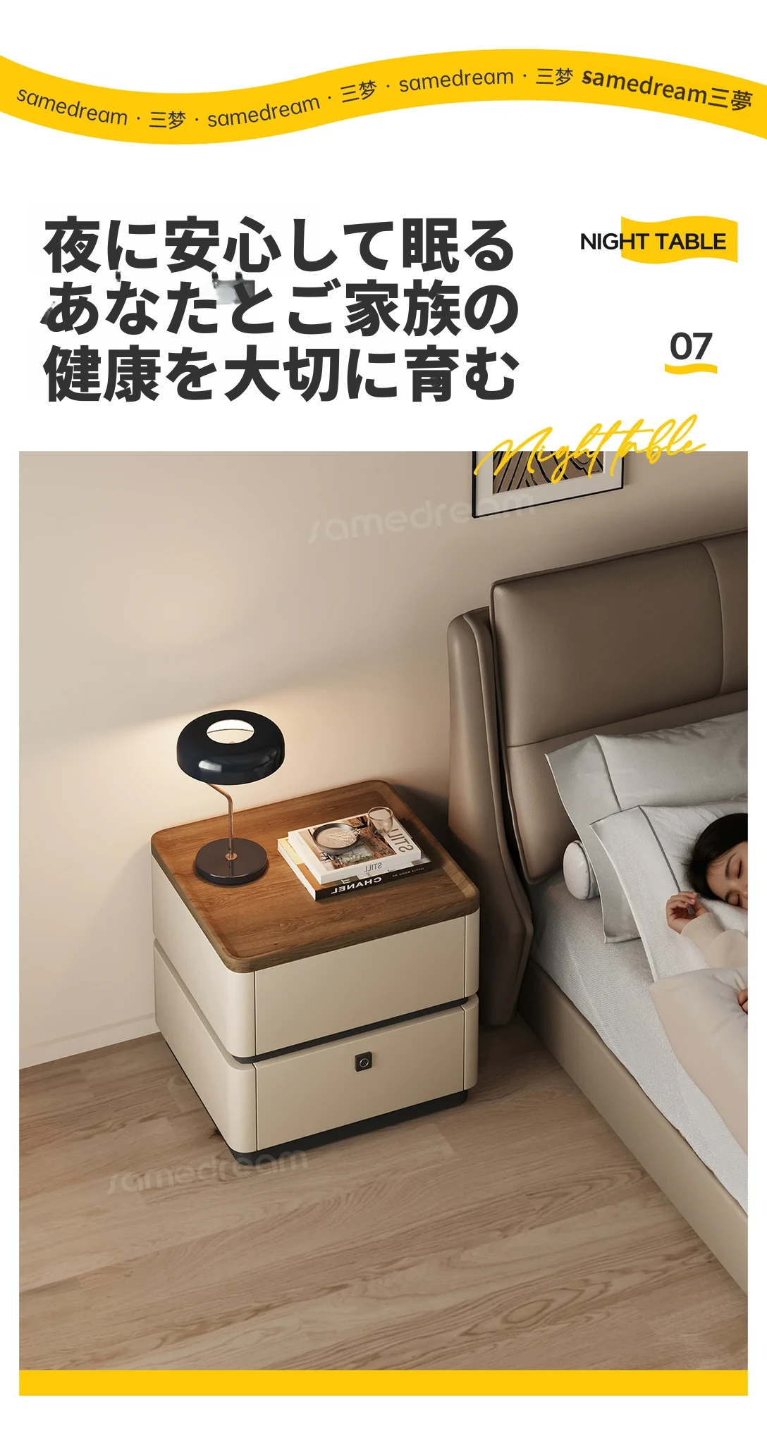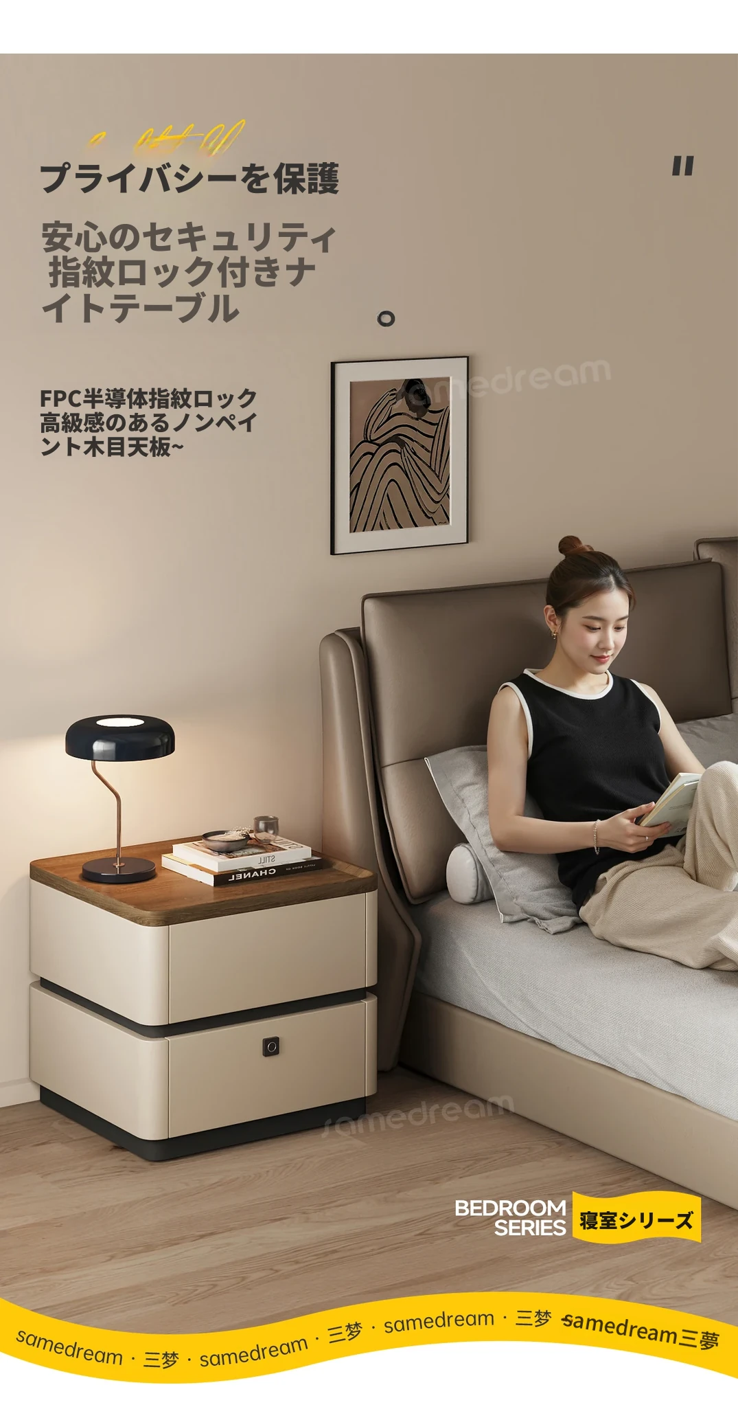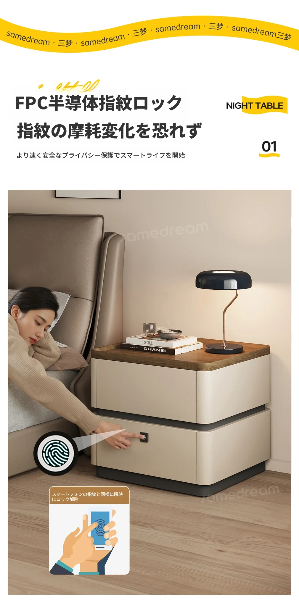 2025年新款!三夢スマート無垢材ロック付きベッドサイドテーブル - 高級感溢れる軽奢スタイルで、居心地の良い寝室を演出する小型サイドキャビネット。あなたの夢の空間を実現します!