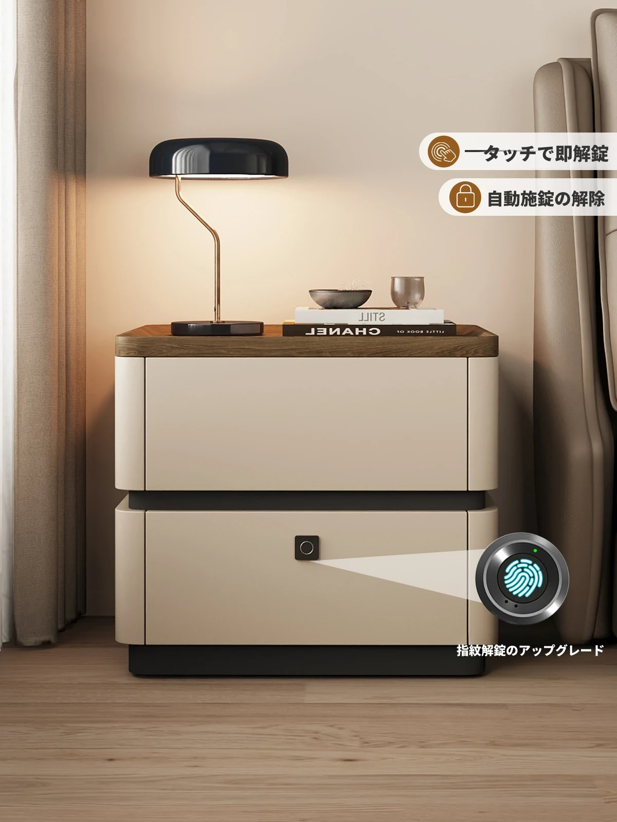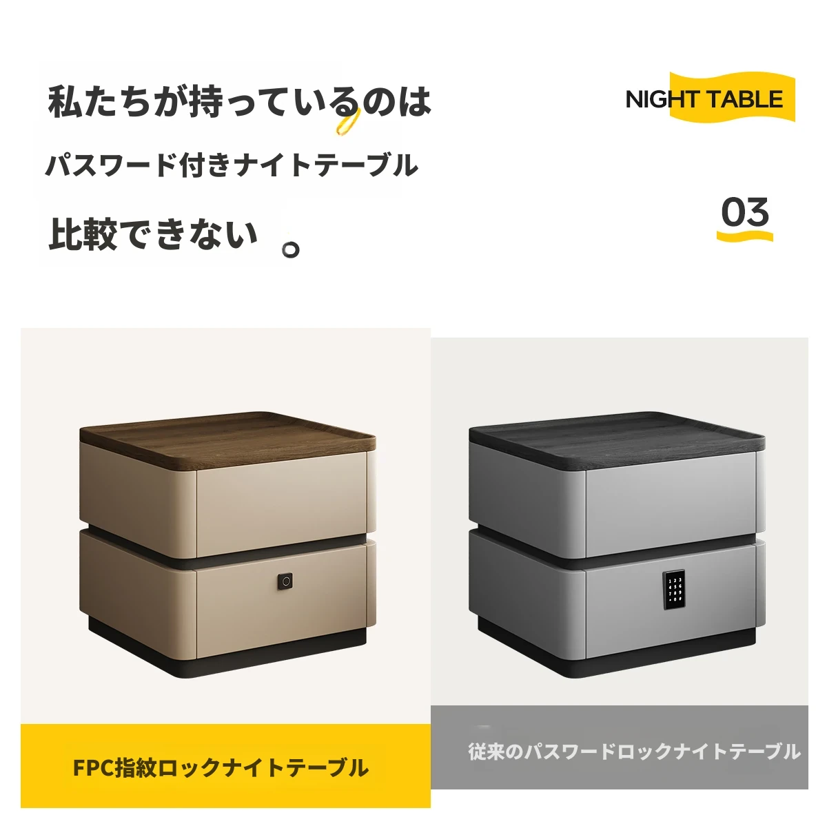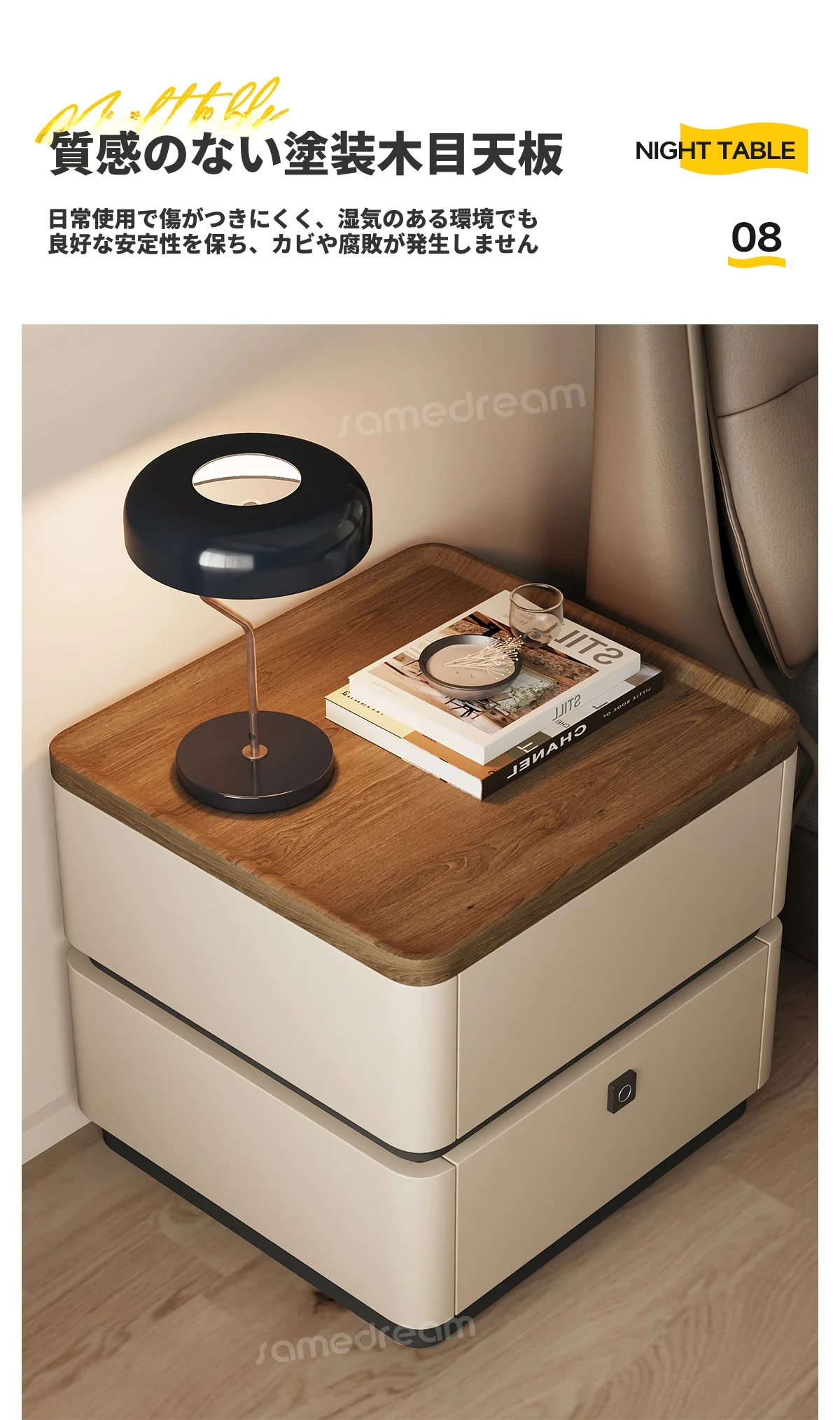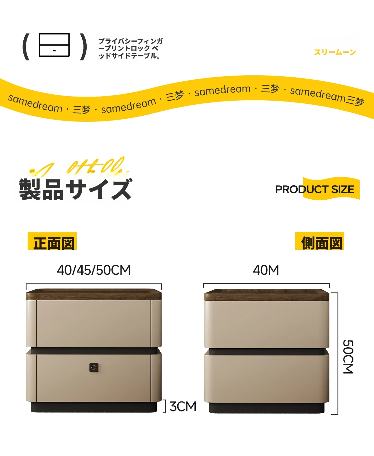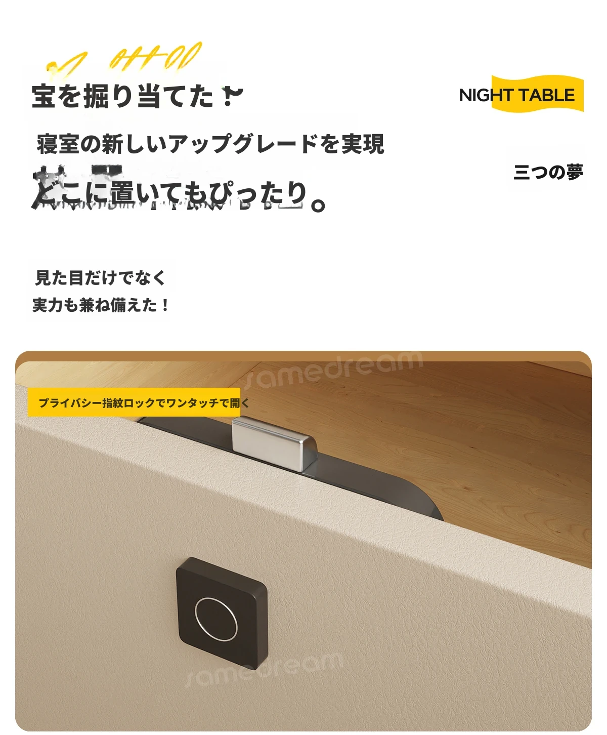 2025年新款!三夢スマート無垢材ロック付きベッドサイドテーブル - 高級感溢れる軽奢スタイルで、居心地の良い寝室を演出する小型サイドキャビネット。あなたの夢の空間を実現します!