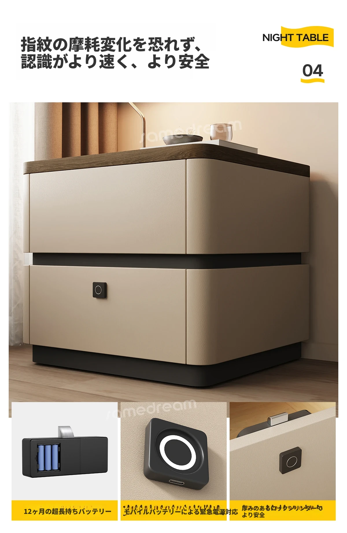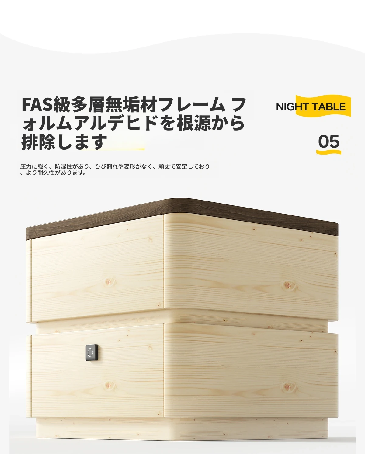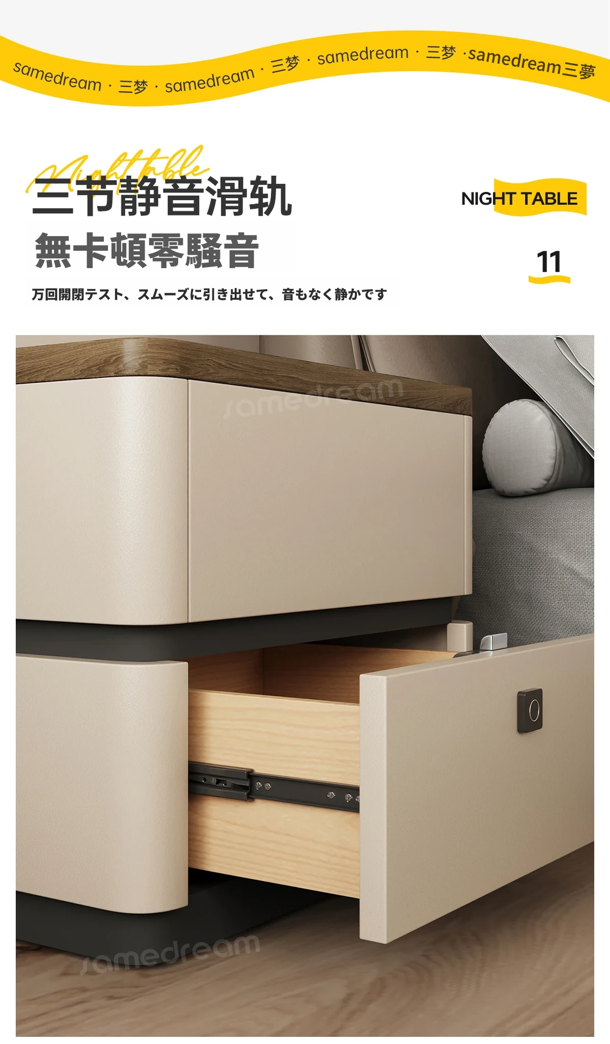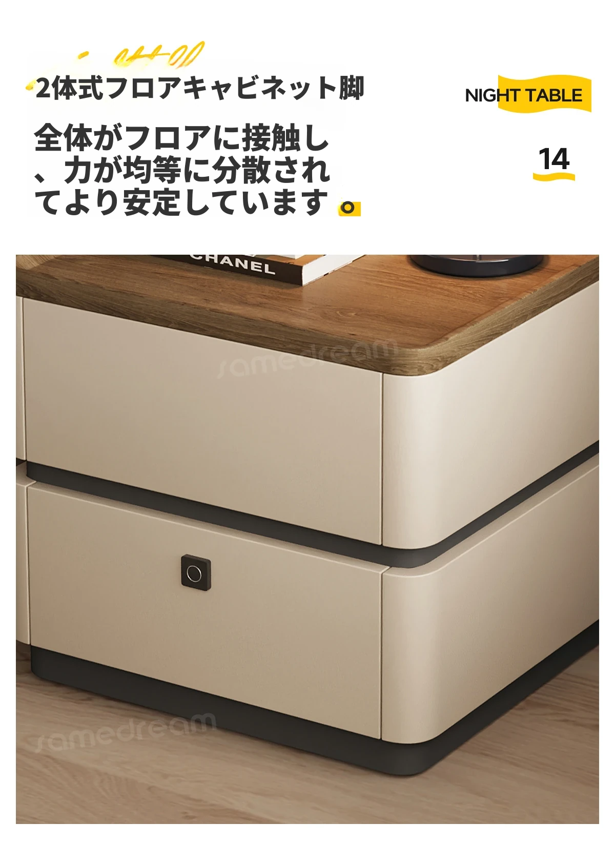 2025年新款!三夢スマート無垢材ロック付きベッドサイドテーブル - 高級感溢れる軽奢スタイルで、居心地の良い寝室を演出する小型サイドキャビネット。あなたの夢の空間を実現します!