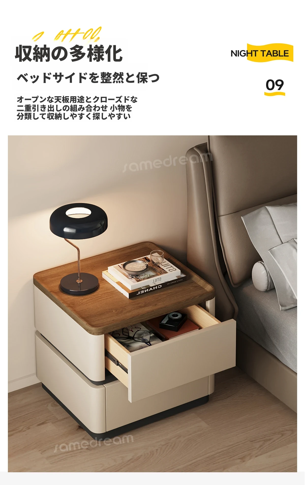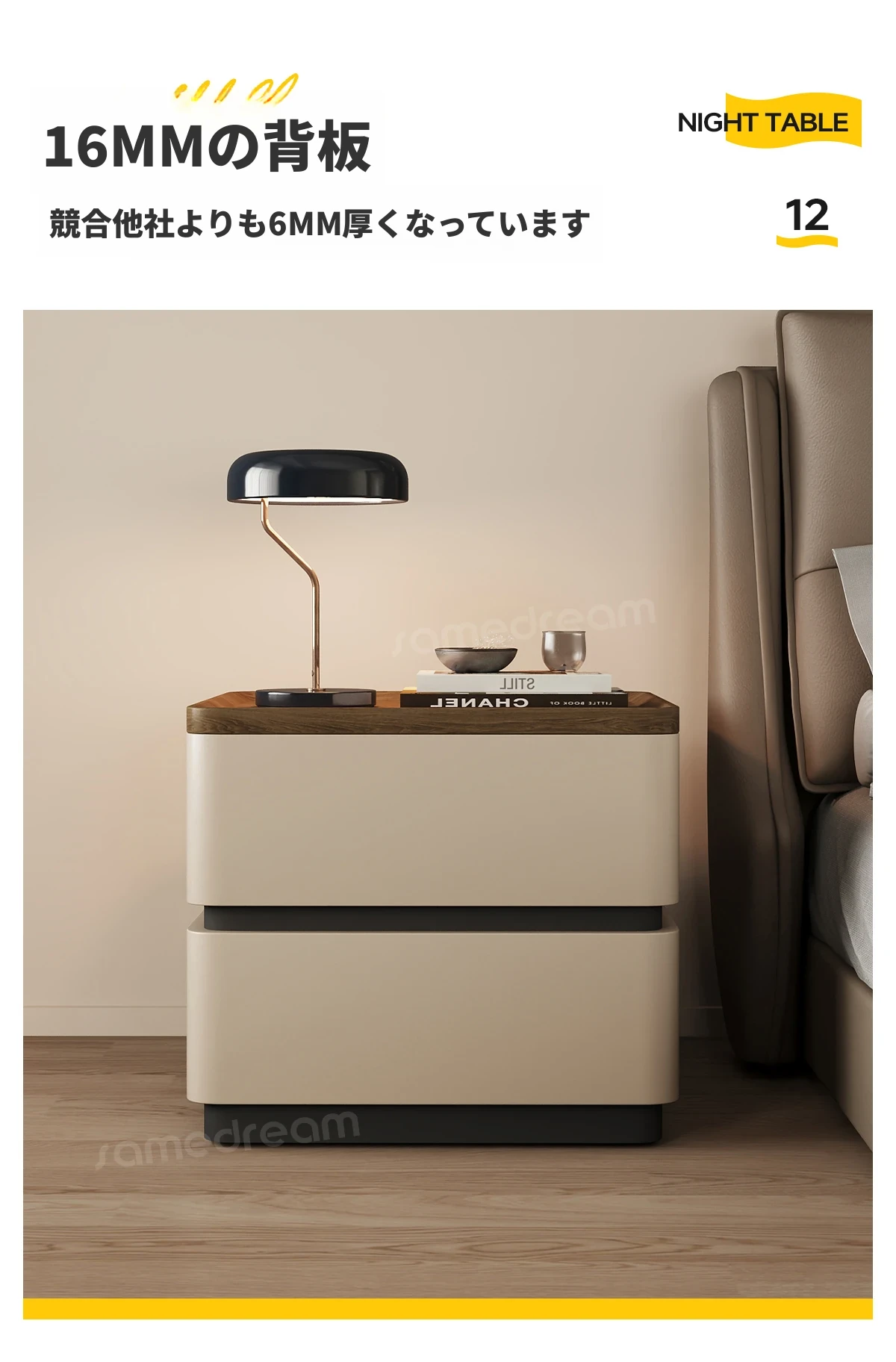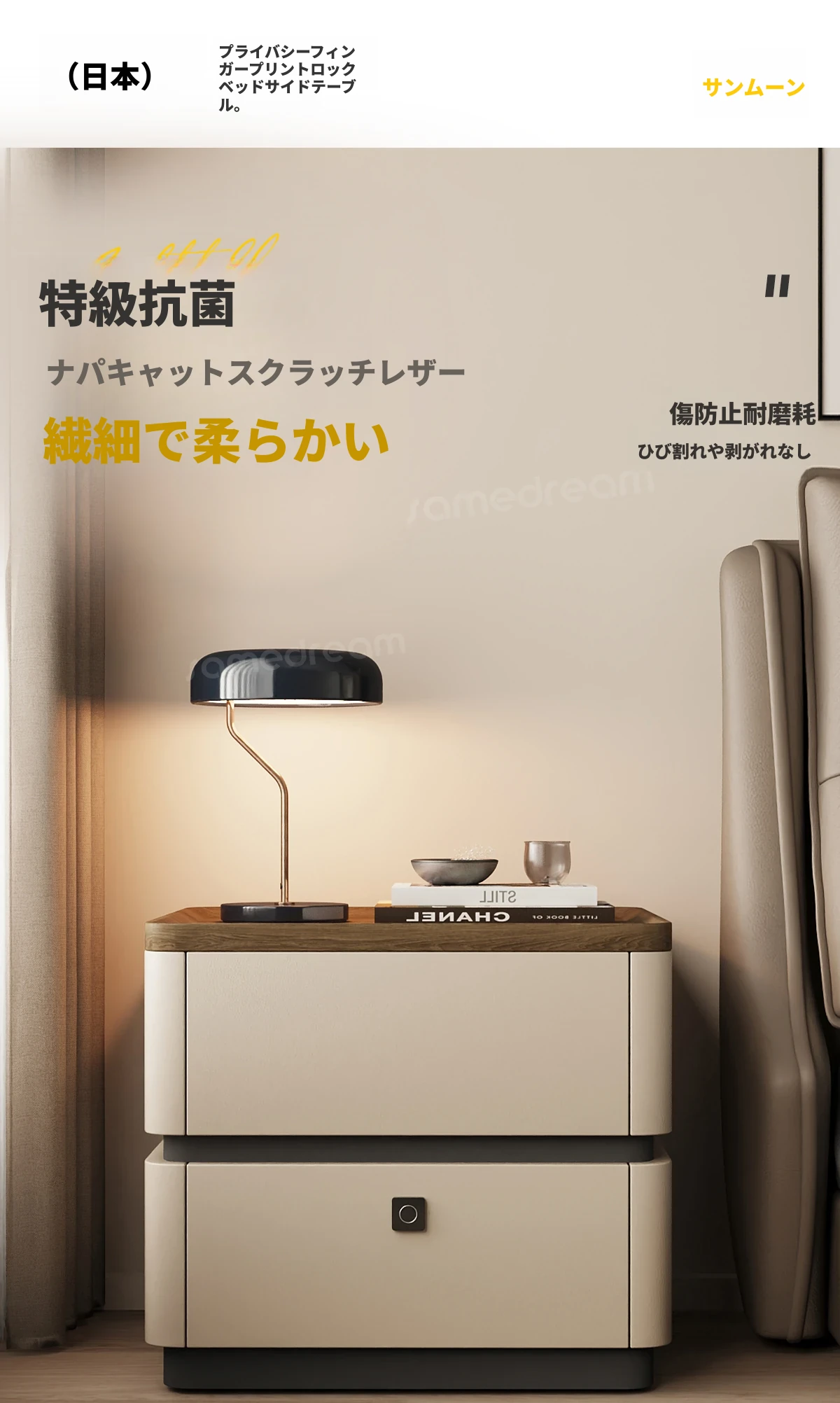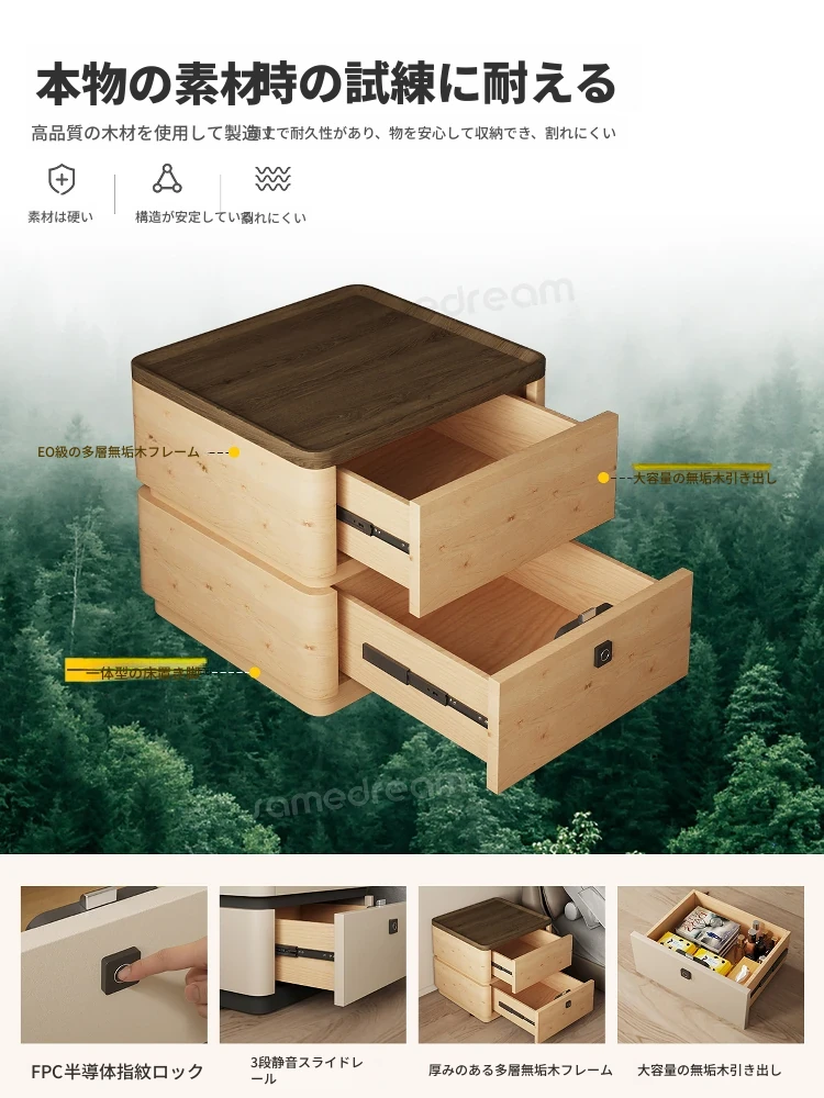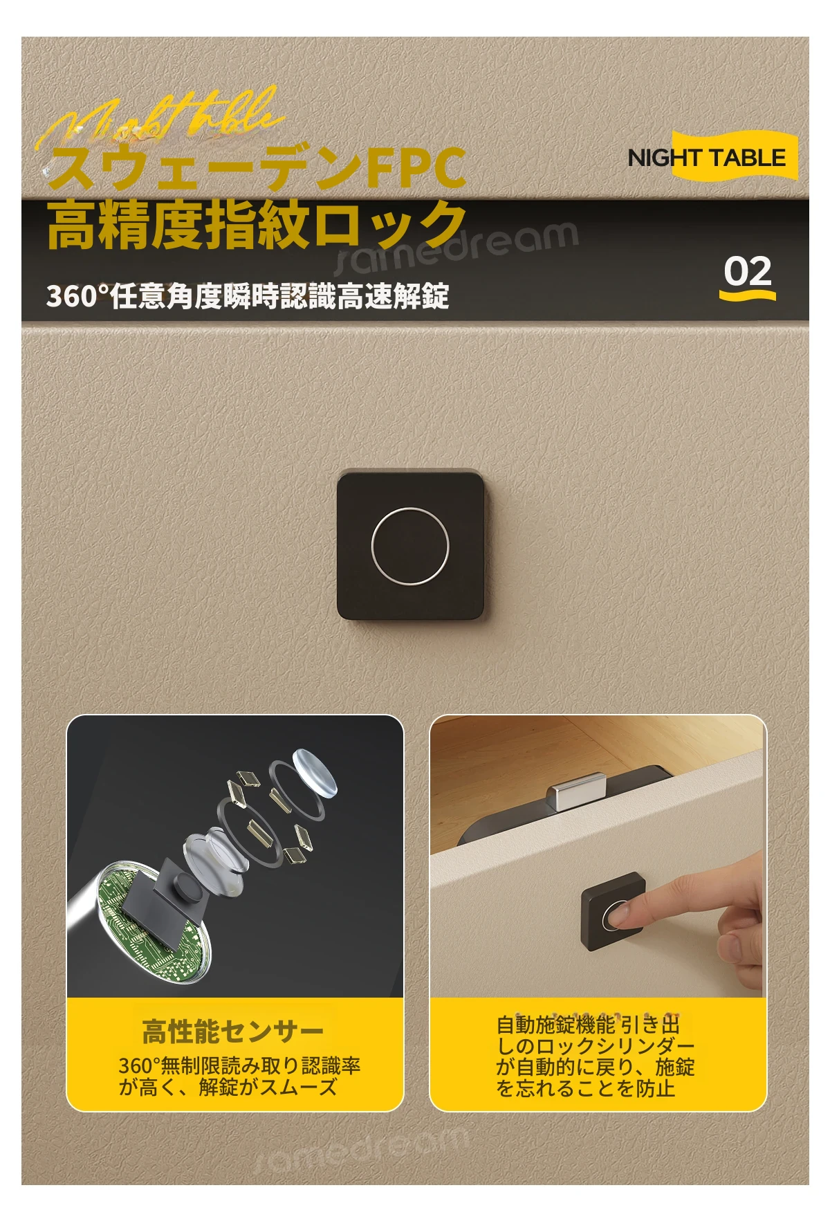 2025年新款!三夢スマート無垢材ロック付きベッドサイドテーブル - 高級感溢れる軽奢スタイルで、居心地の良い寝室を演出する小型サイドキャビネット。あなたの夢の空間を実現します!